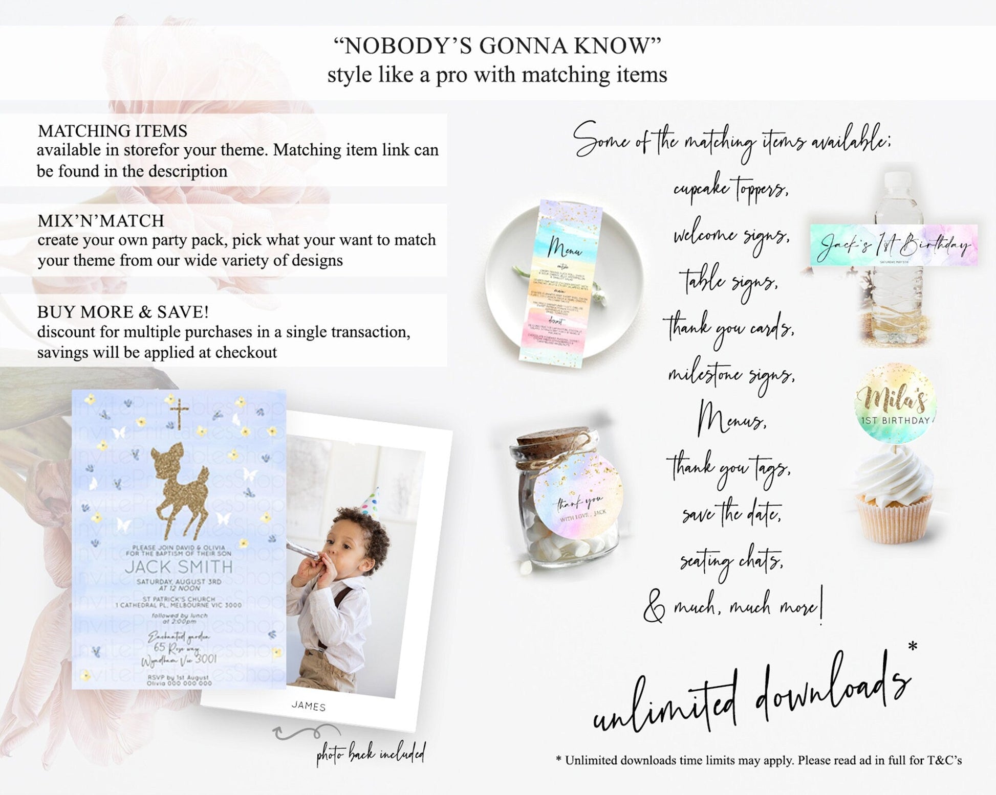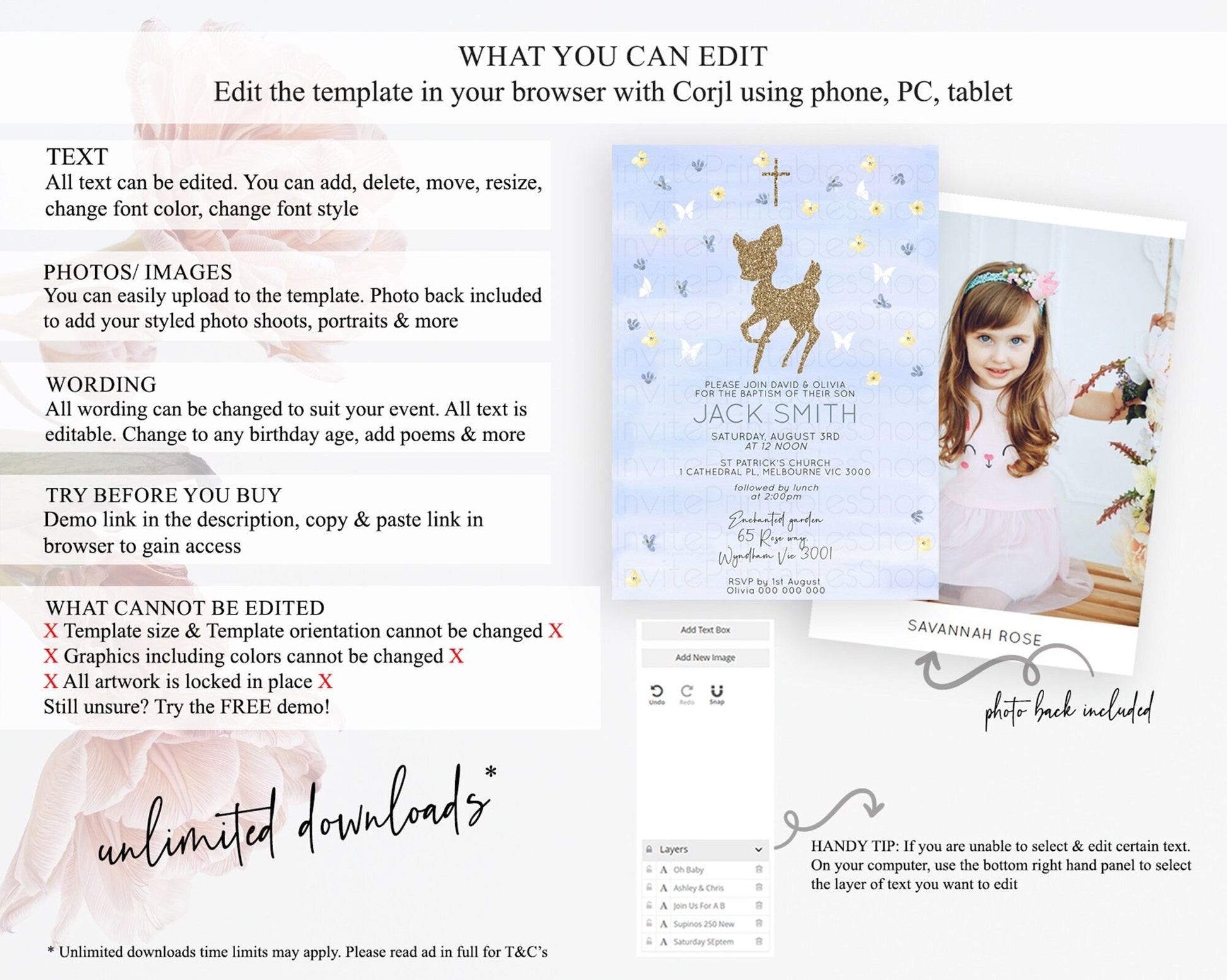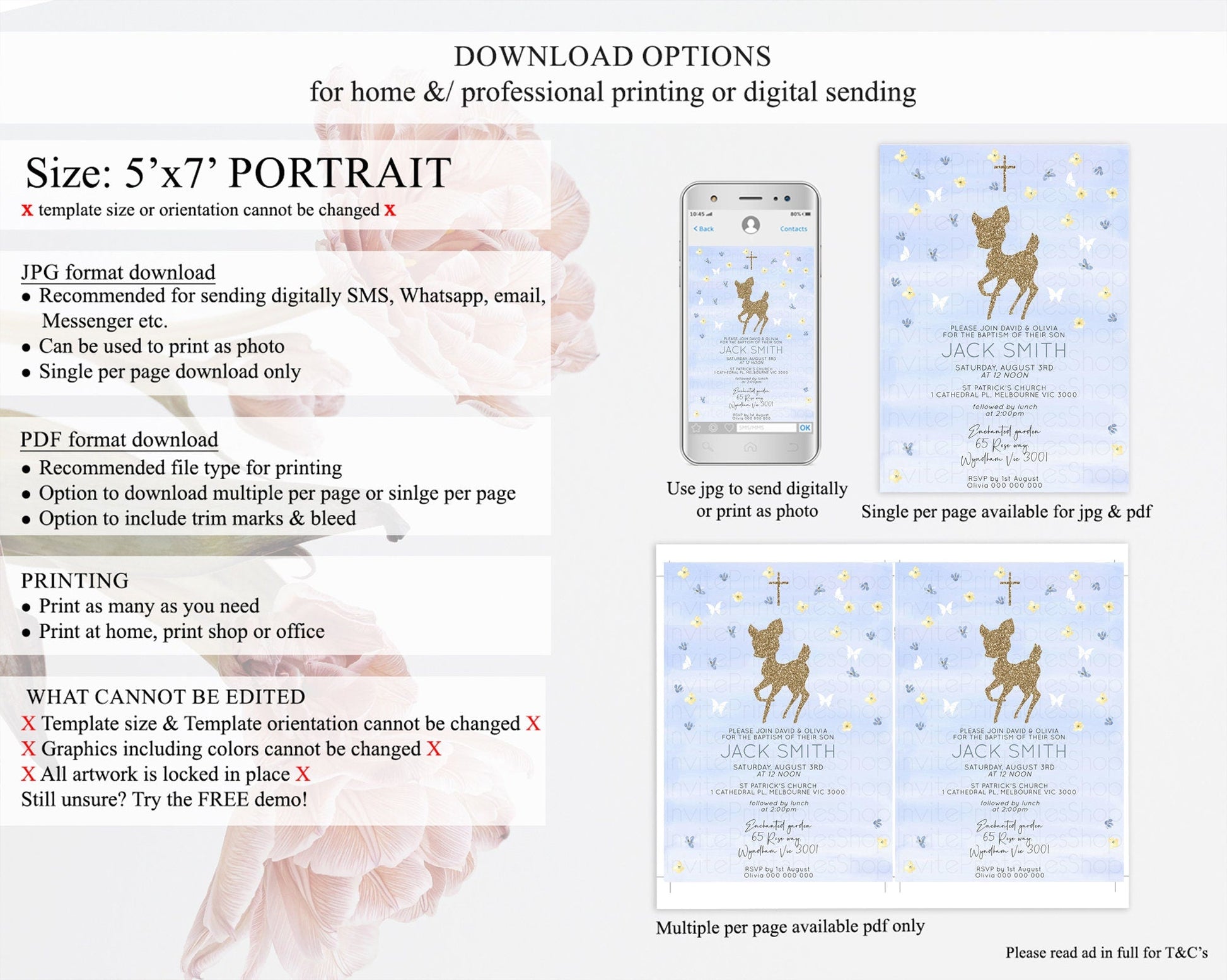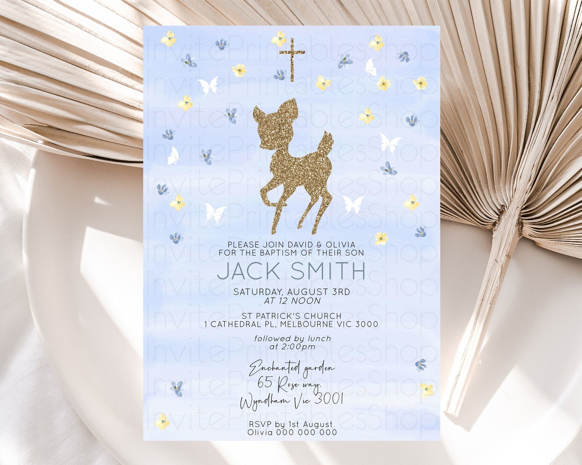 Fawn Baptism Invitation Deer Baptism 1st Birthday Invitation Enchanted Forest Christening Invitation Pastel Garden Butterfly Floral D10863