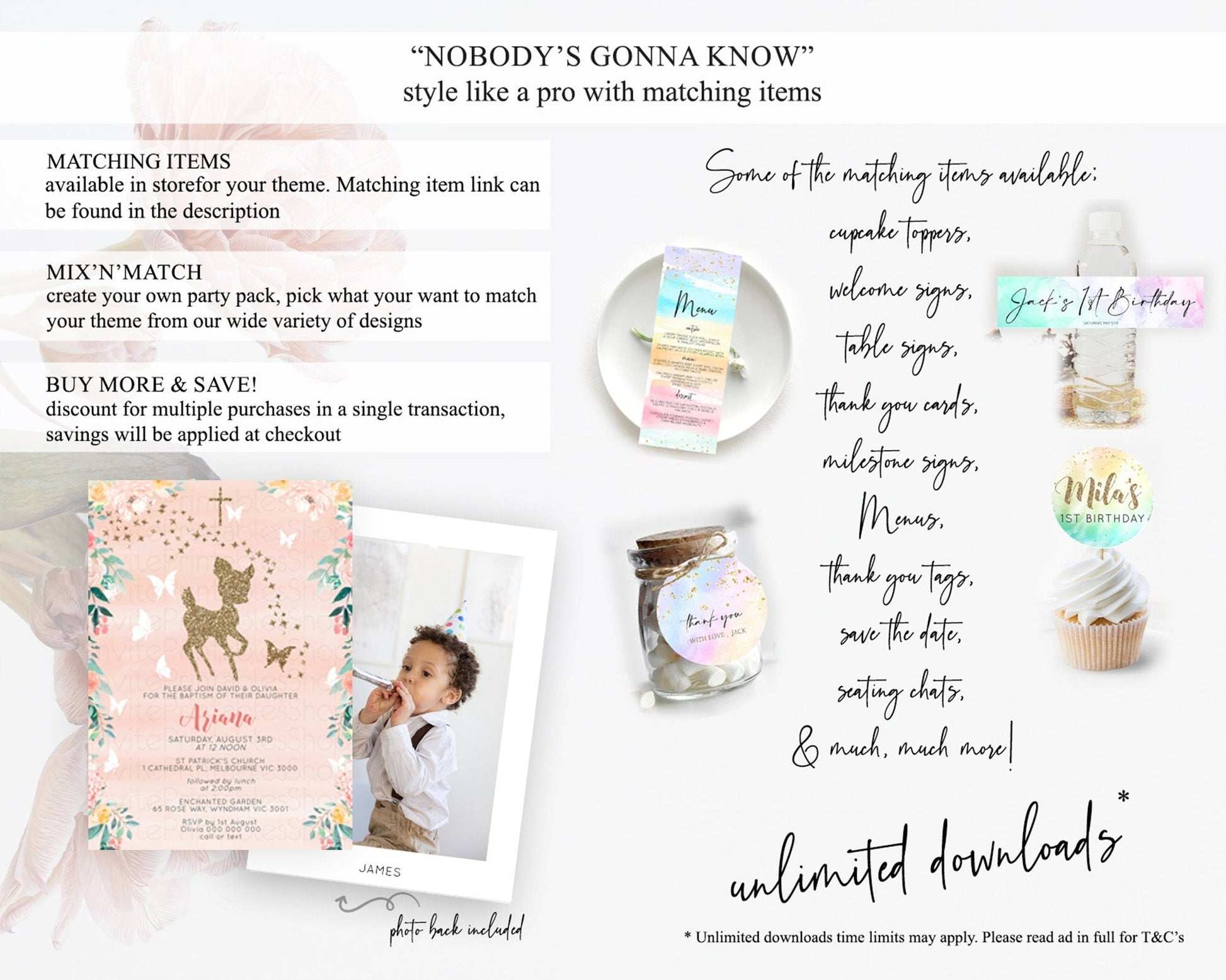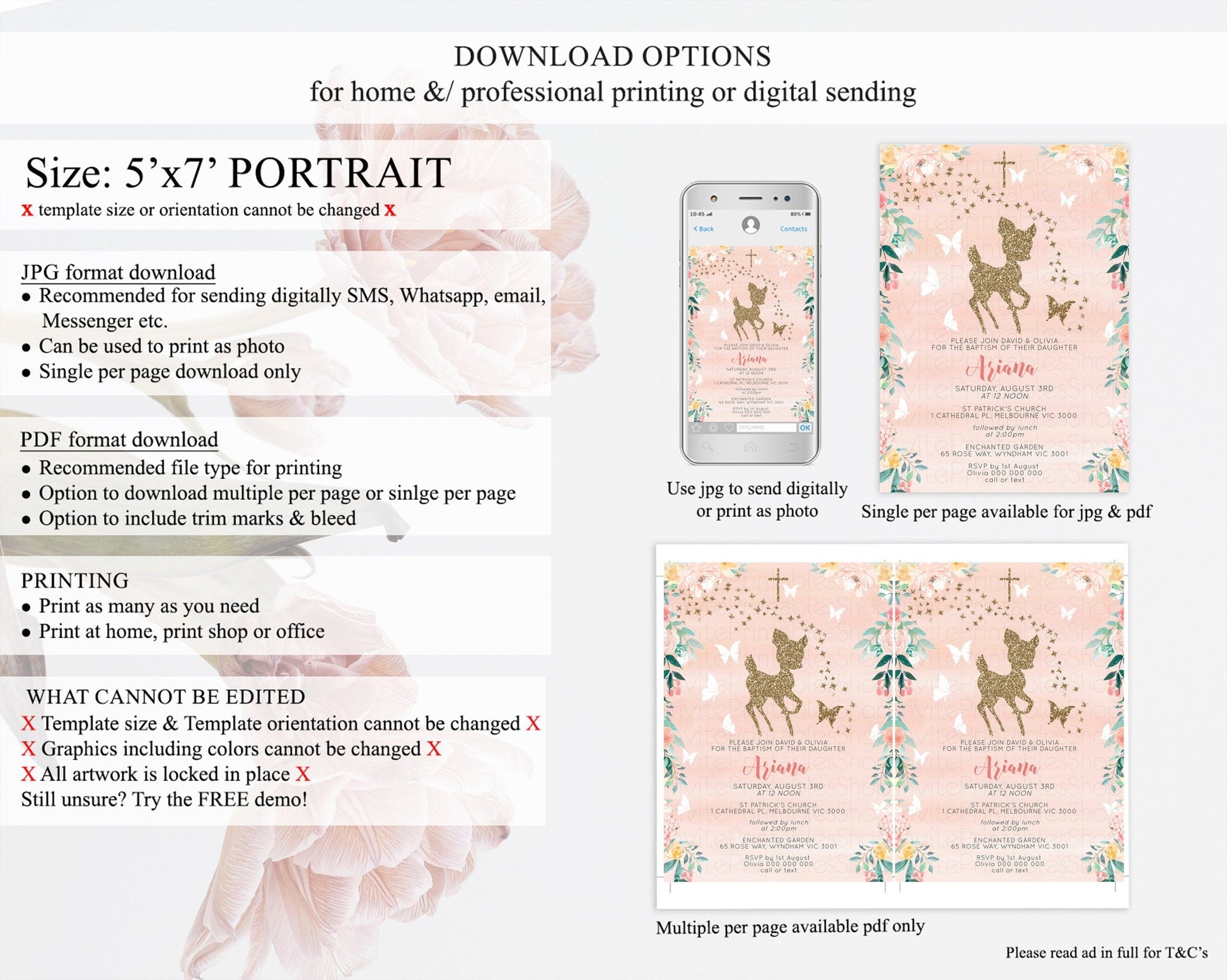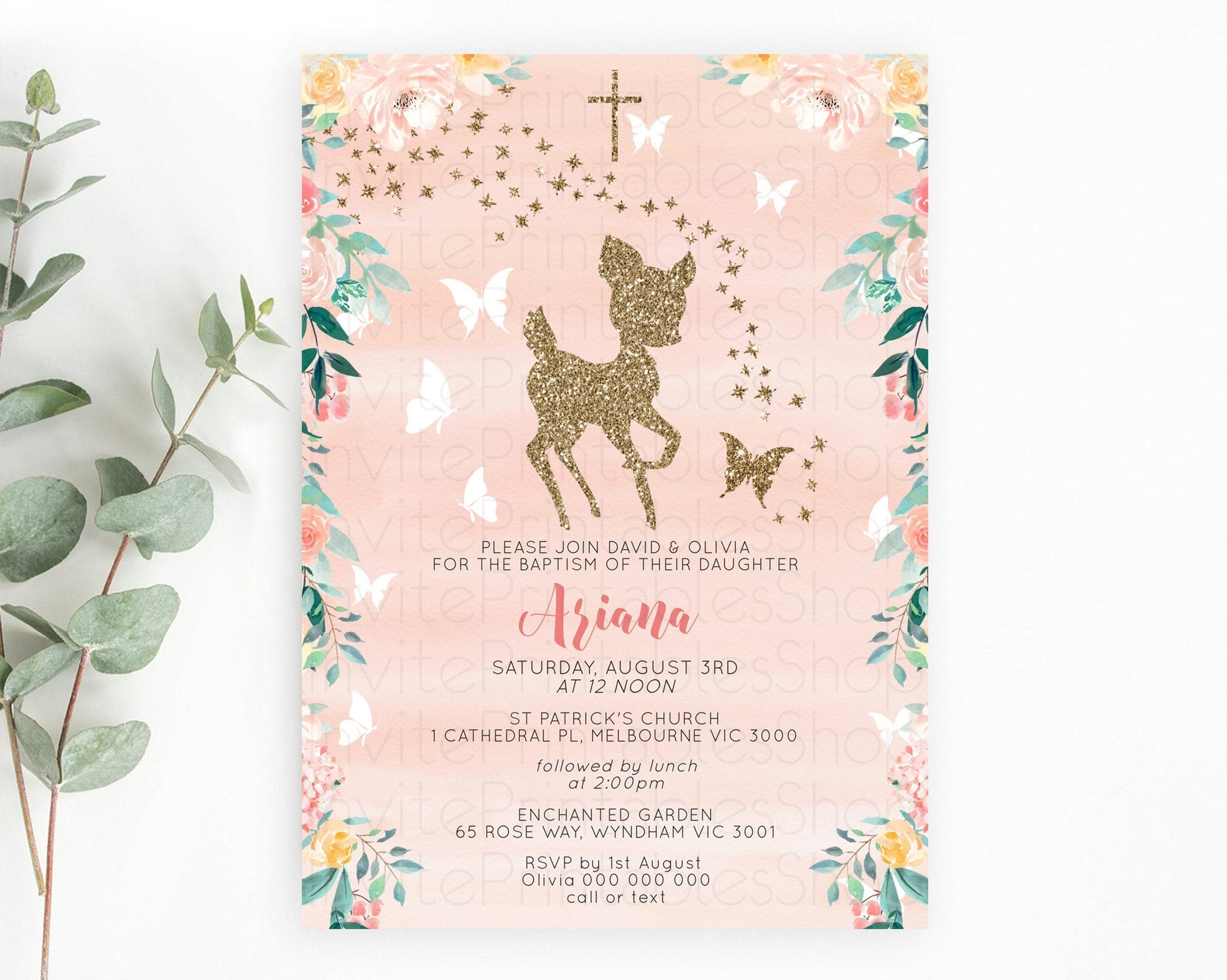 Fawn Baptism Invitation Deer Baptism 1st Birthday Invitation Enchanted Forest Christening Invitation Pastel Garden Butterfly Floral D10873