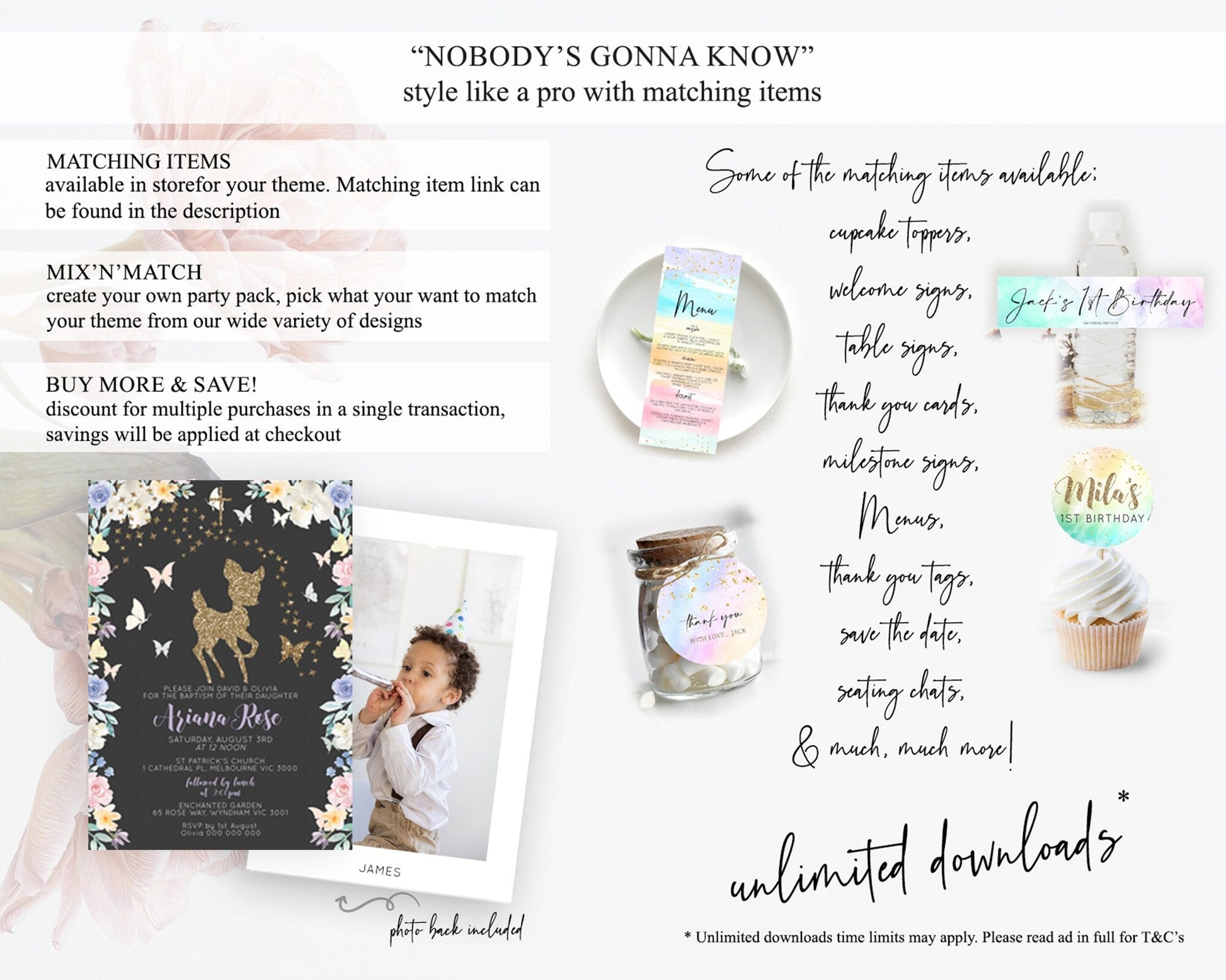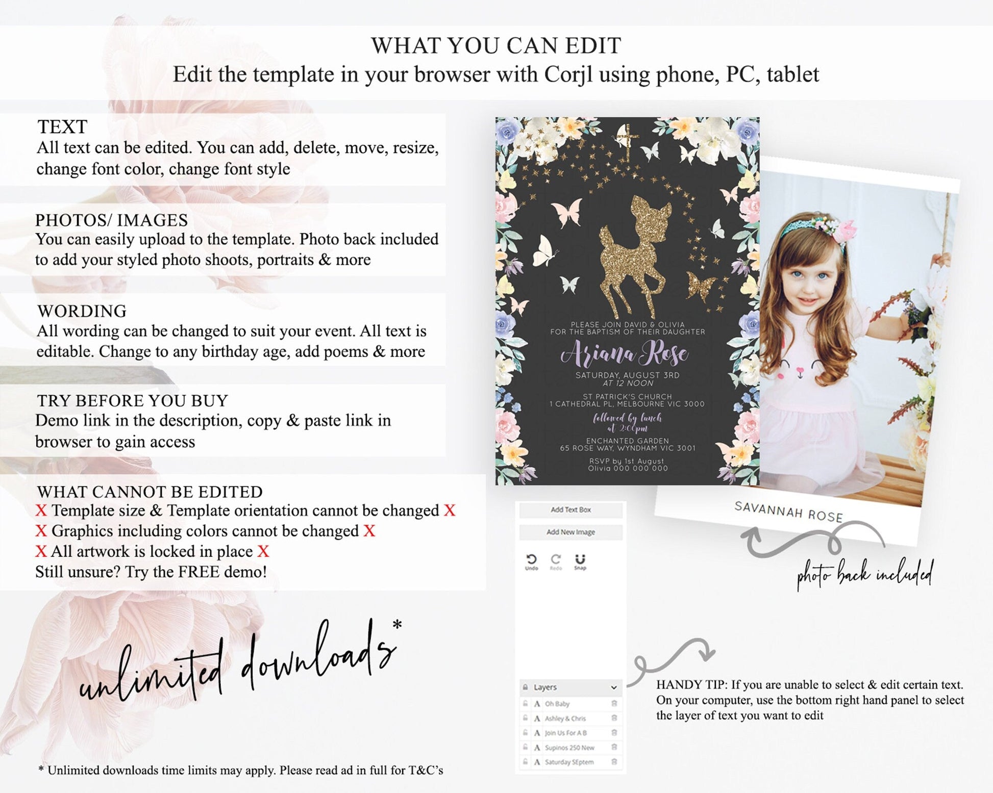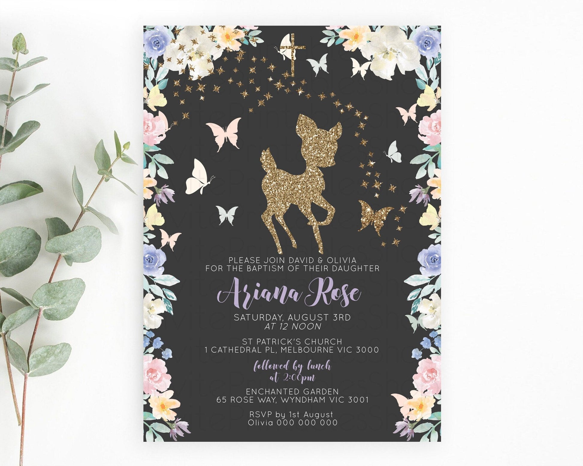 Fawn Baptism Invitation Deer Baptism 1st Birthday Invitation Enchanted Forest Christening Invitation Pastel Garden Butterfly Floral D10880