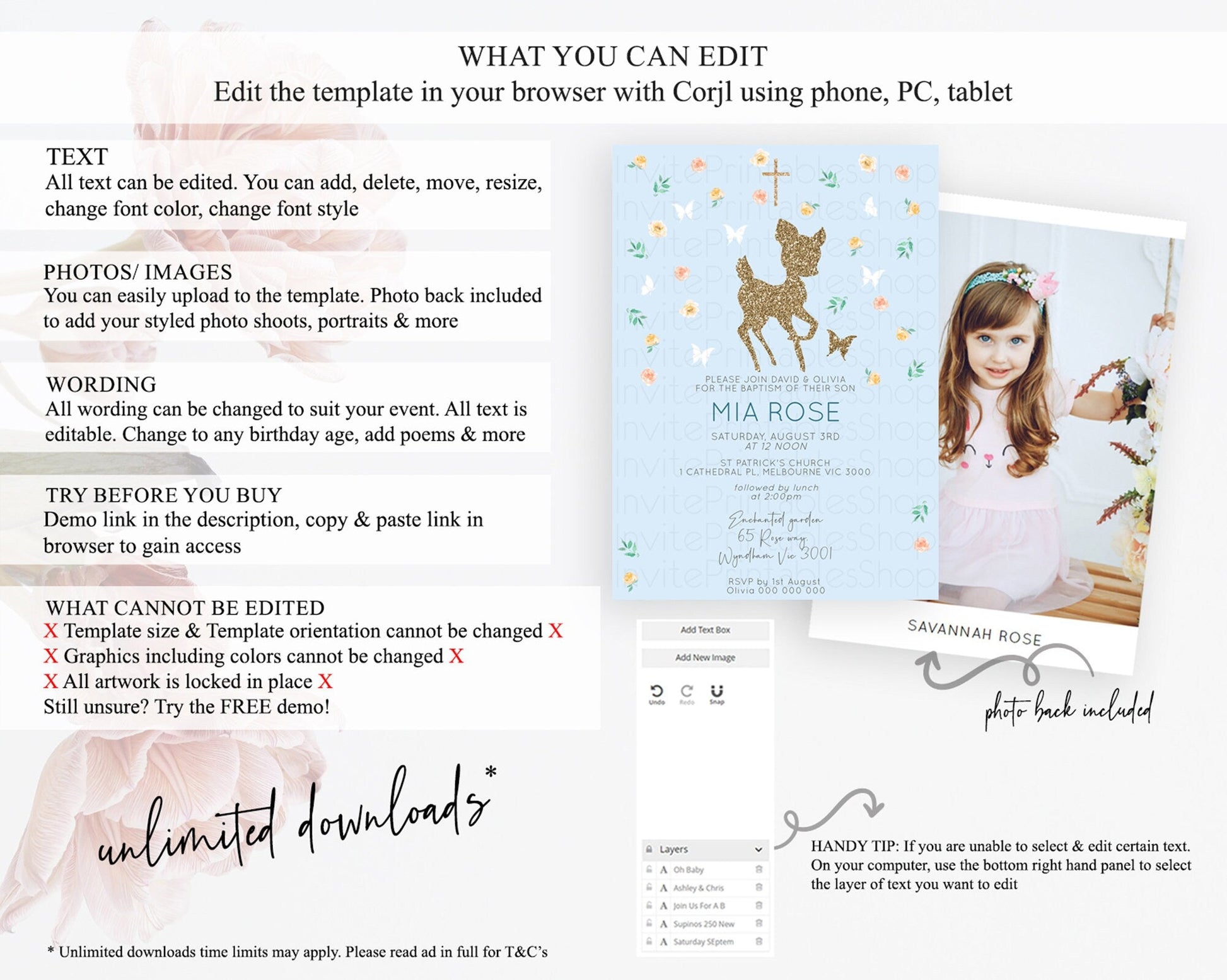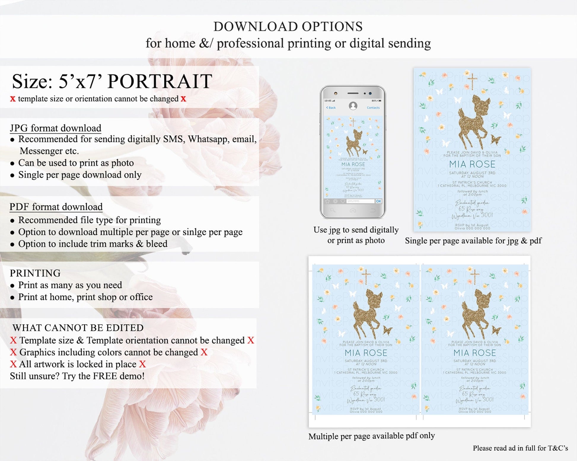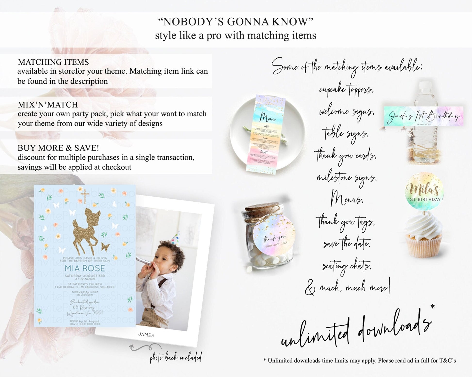 Fawn Baptism Invitation Deer Baptism 1st Birthday Invitation Enchanted Forest Christening Invitation Pastel Garden Butterfly Floral D10902