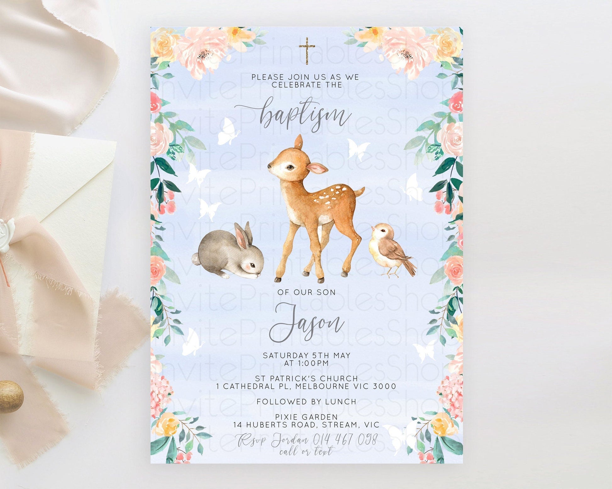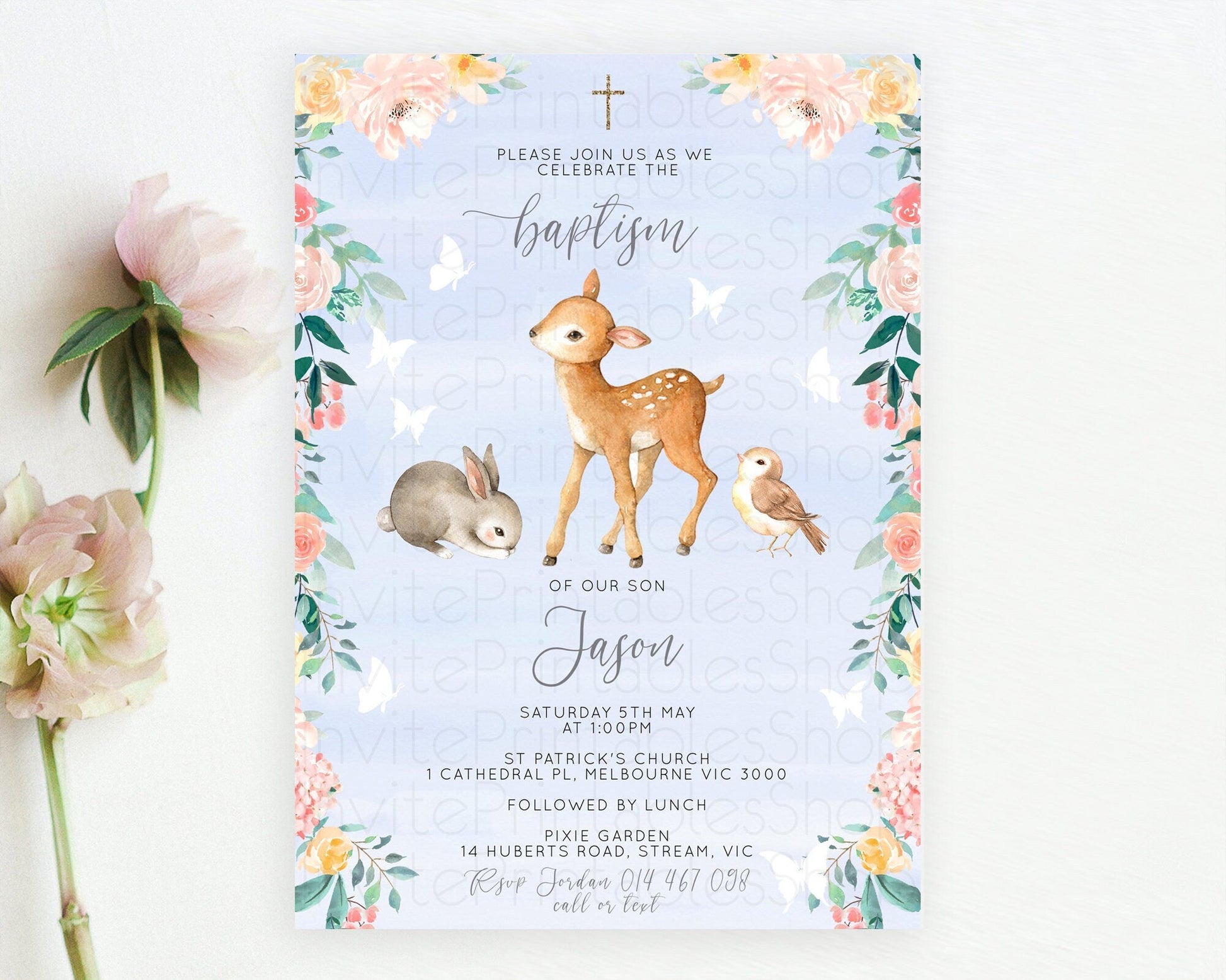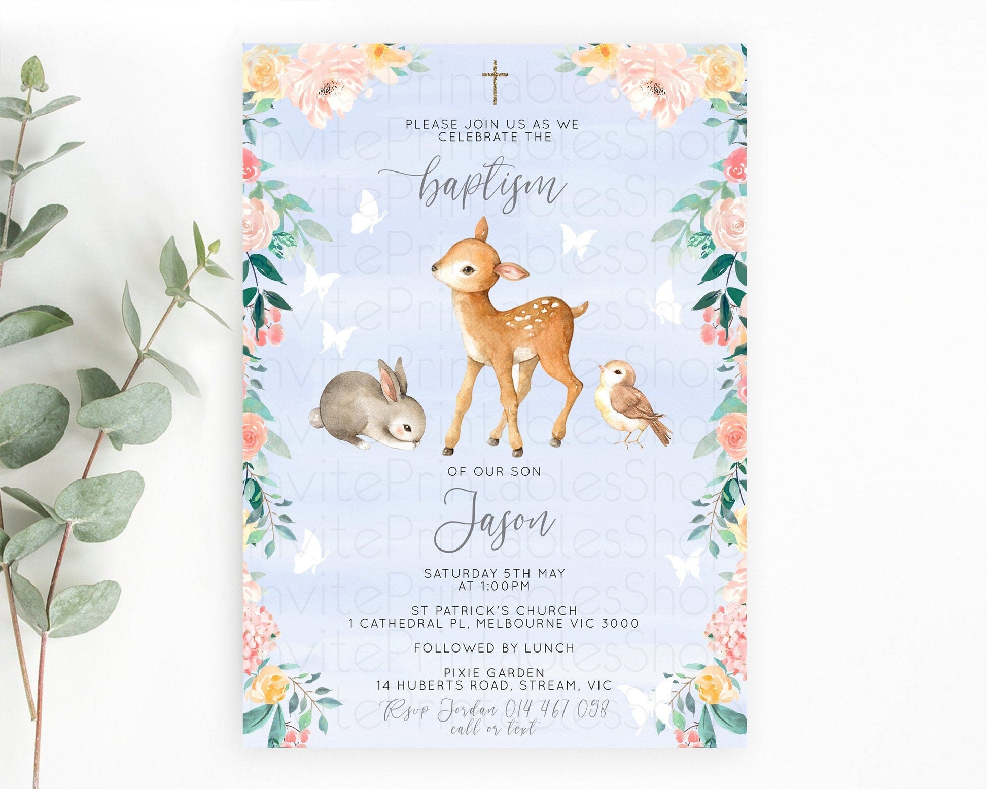Fawn Baptism Invitation Deer Baptism 1st Birthday Invitation Enchanted Forest Christening Invitation Pastel Garden Butterfly Floral D10920