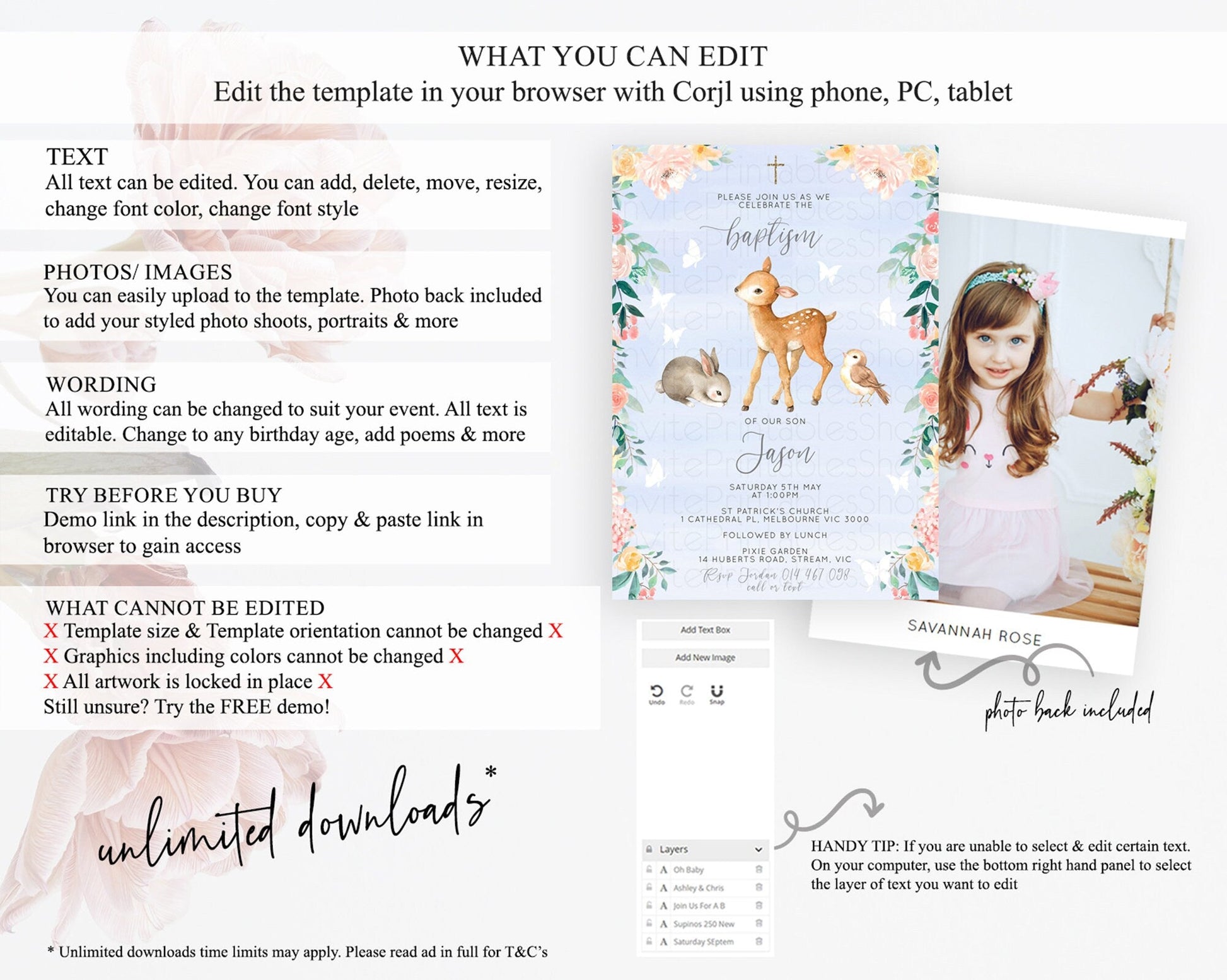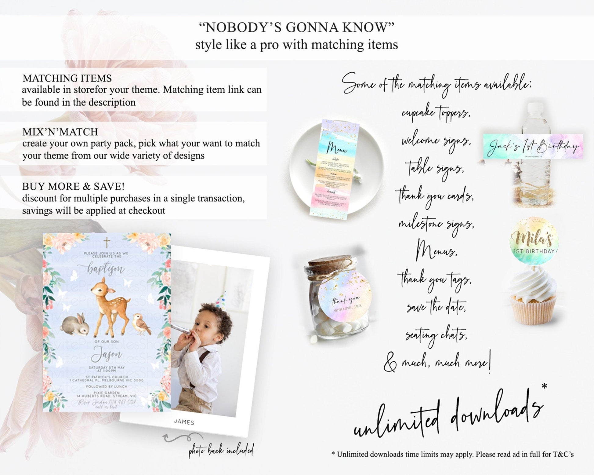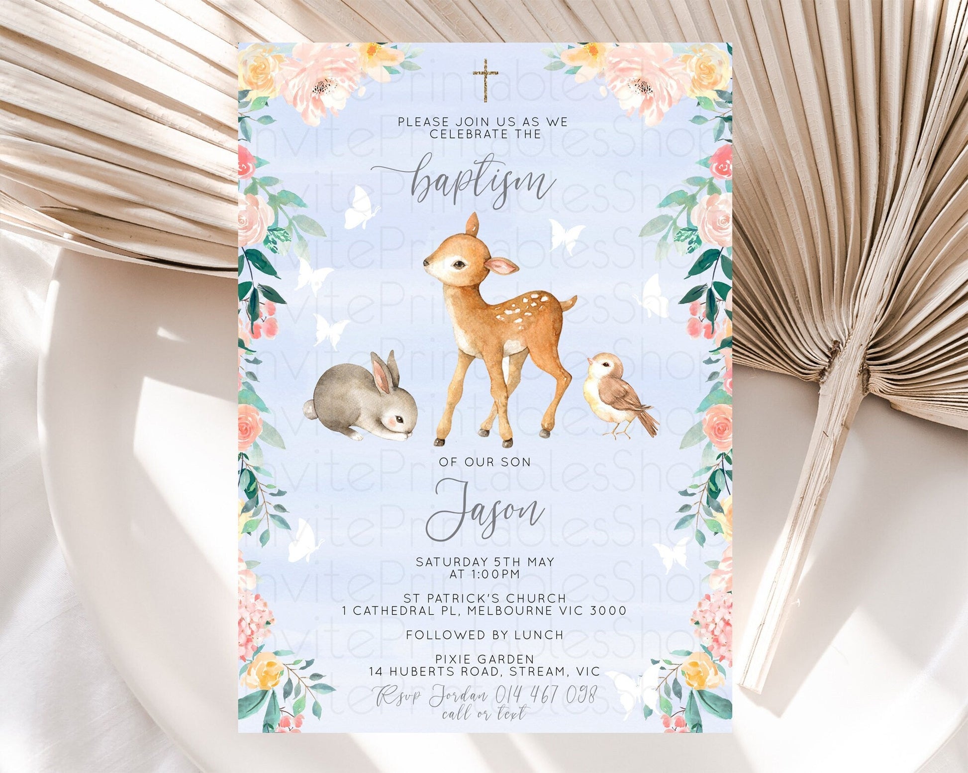 Fawn Baptism Invitation Deer Baptism 1st Birthday Invitation Enchanted Forest Christening Invitation Pastel Garden Butterfly Floral D10920