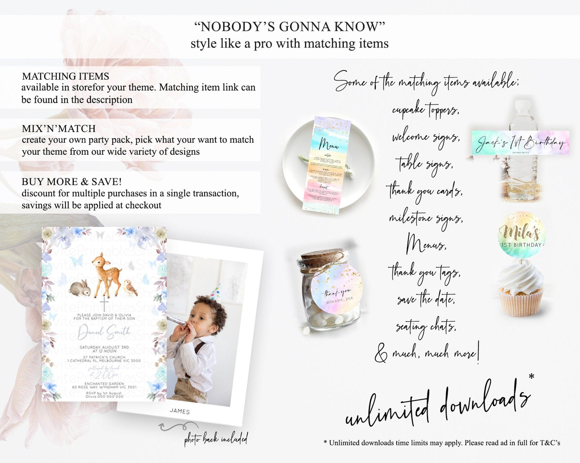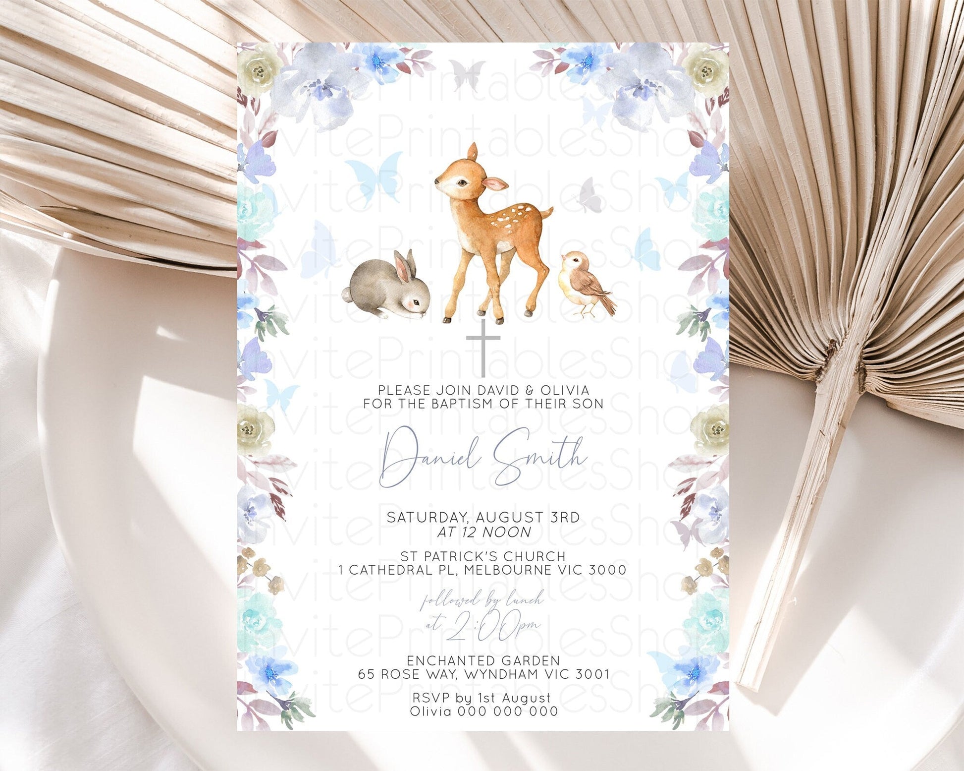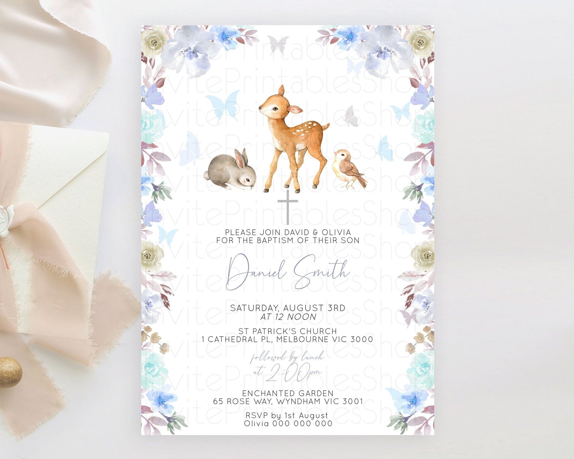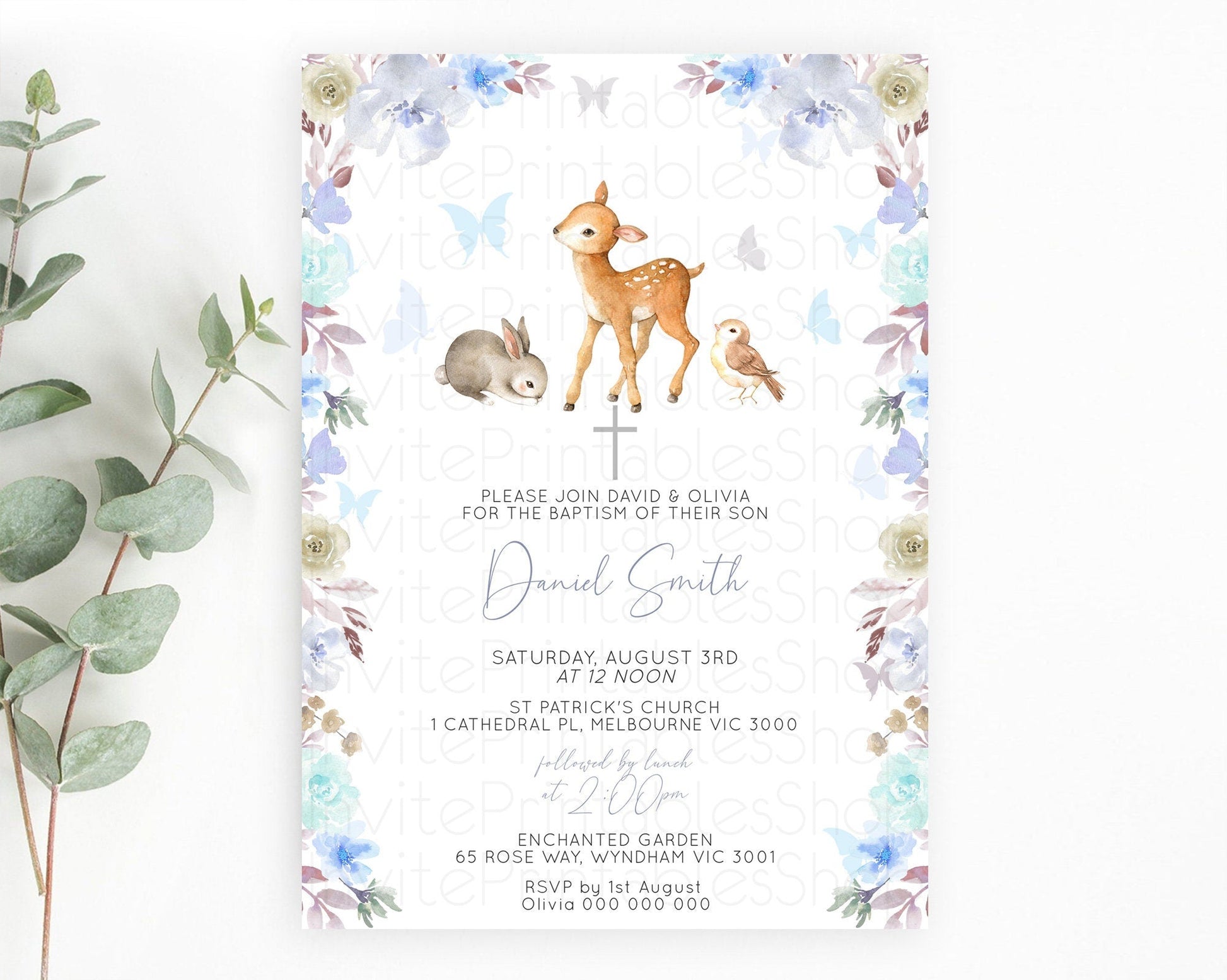 Fawn Baptism Invitation Deer Baptism 1st Birthday Invitation Enchanted Forest Christening Invitation Pastel Garden Butterfly Floral D10929