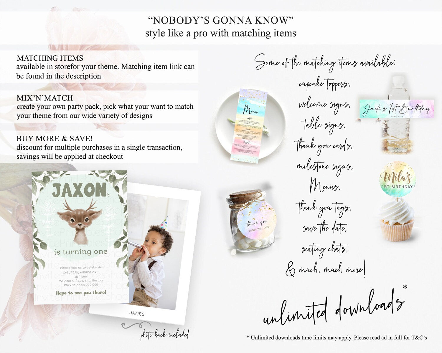 Fawn Birthday Invitation Deer Birthday Invitation Enchanted Forest Party Butterfly Pastel Flowers Whimsical 2nd 1st First Birthday D10191