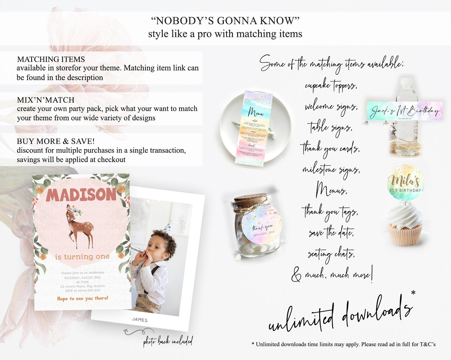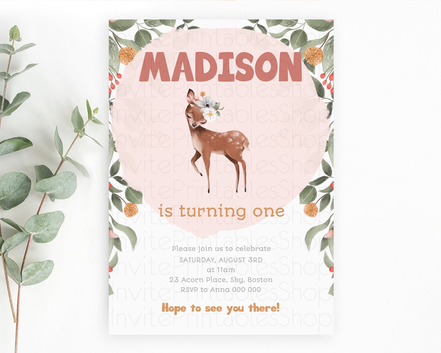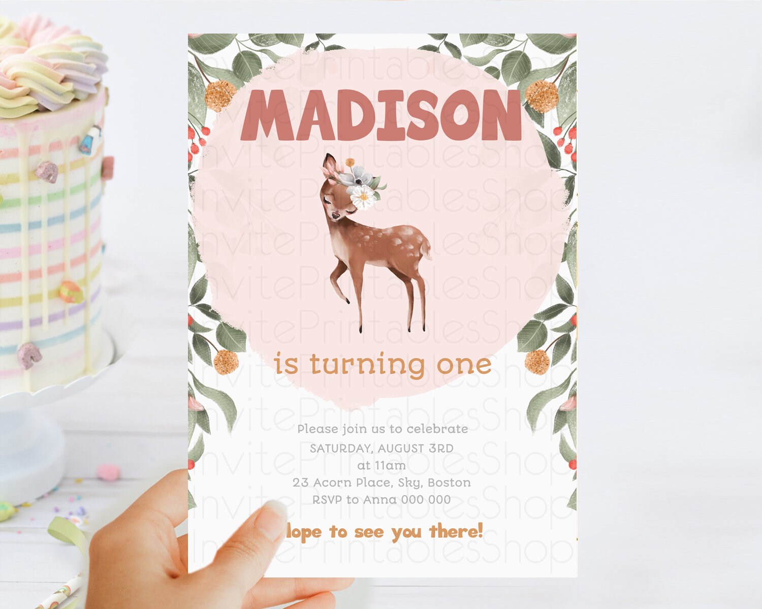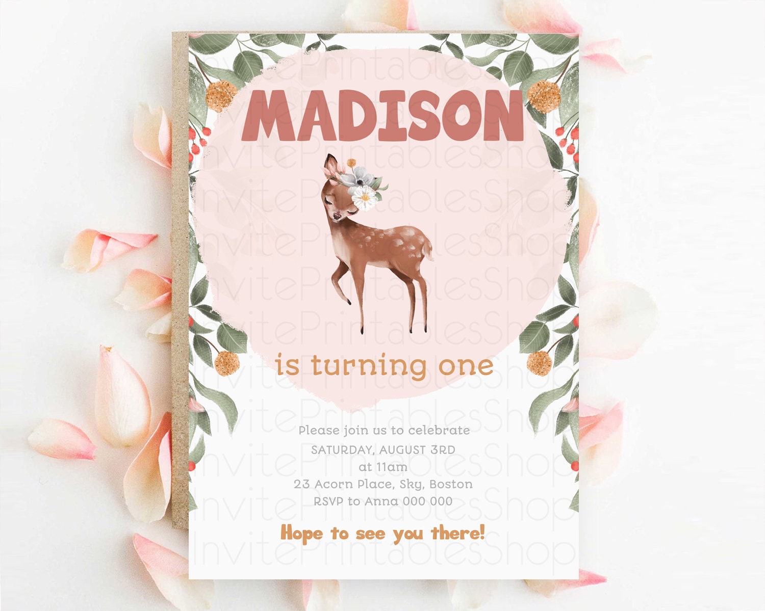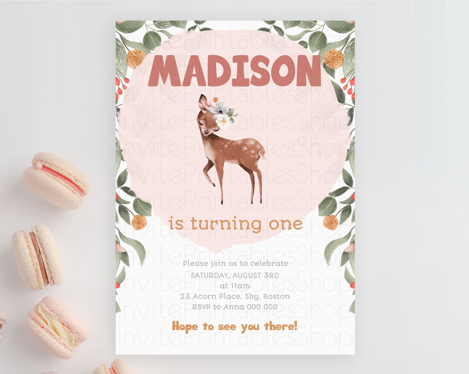 Fawn Birthday Invitation Deer Birthday Invitation Enchanted Forest Party Butterfly Pastel Flowers Whimsical 2nd 1st First Birthday D10655