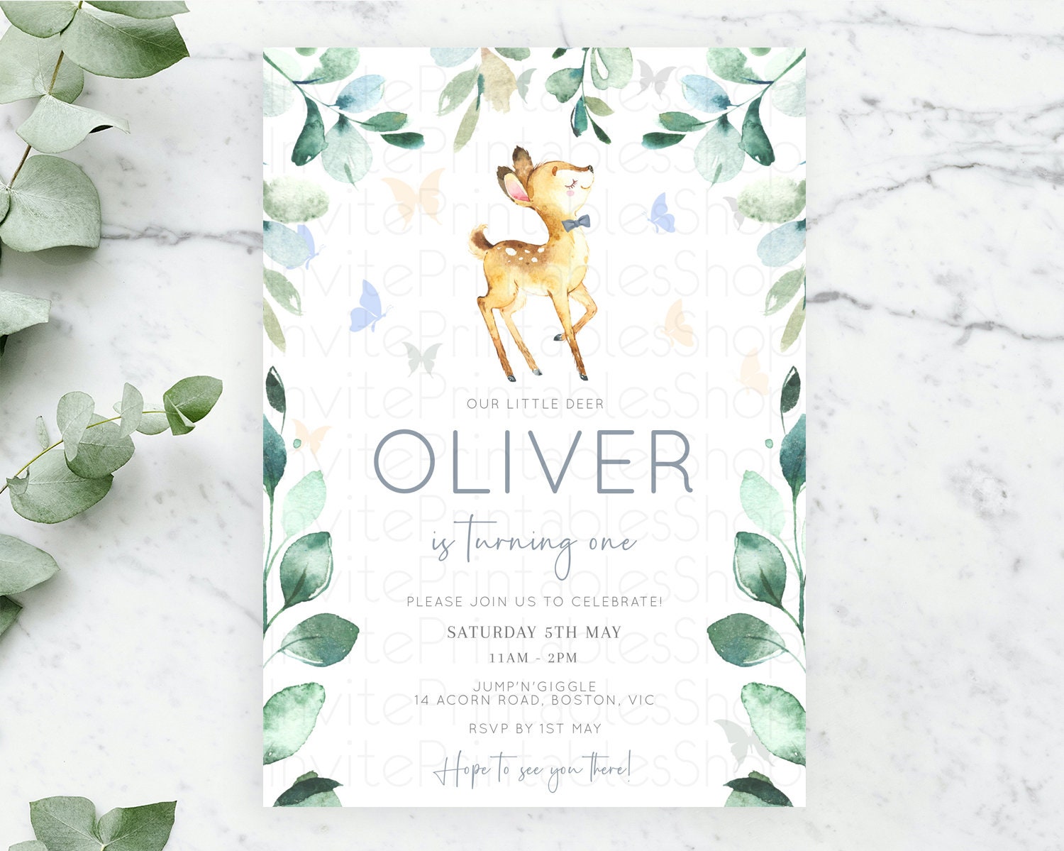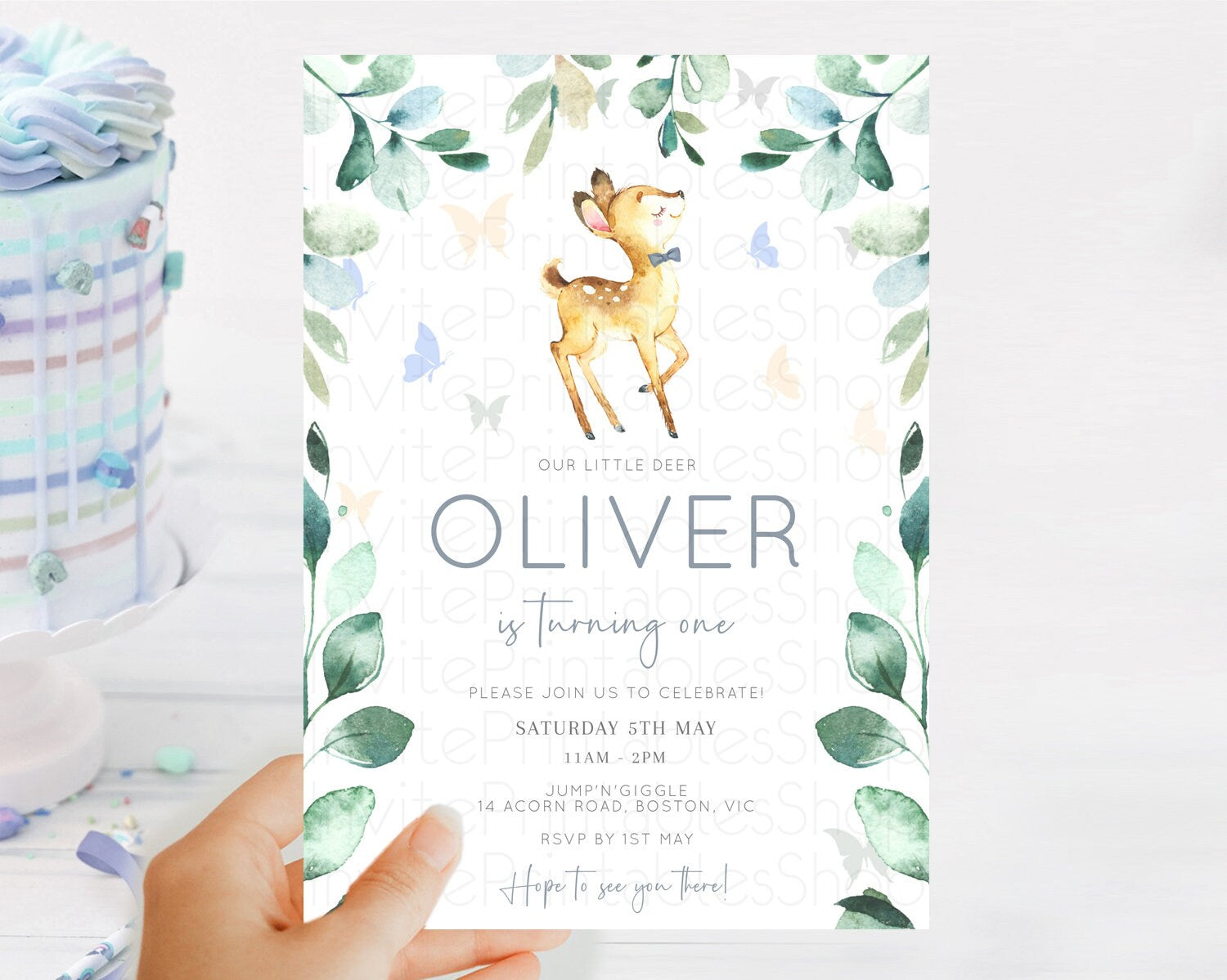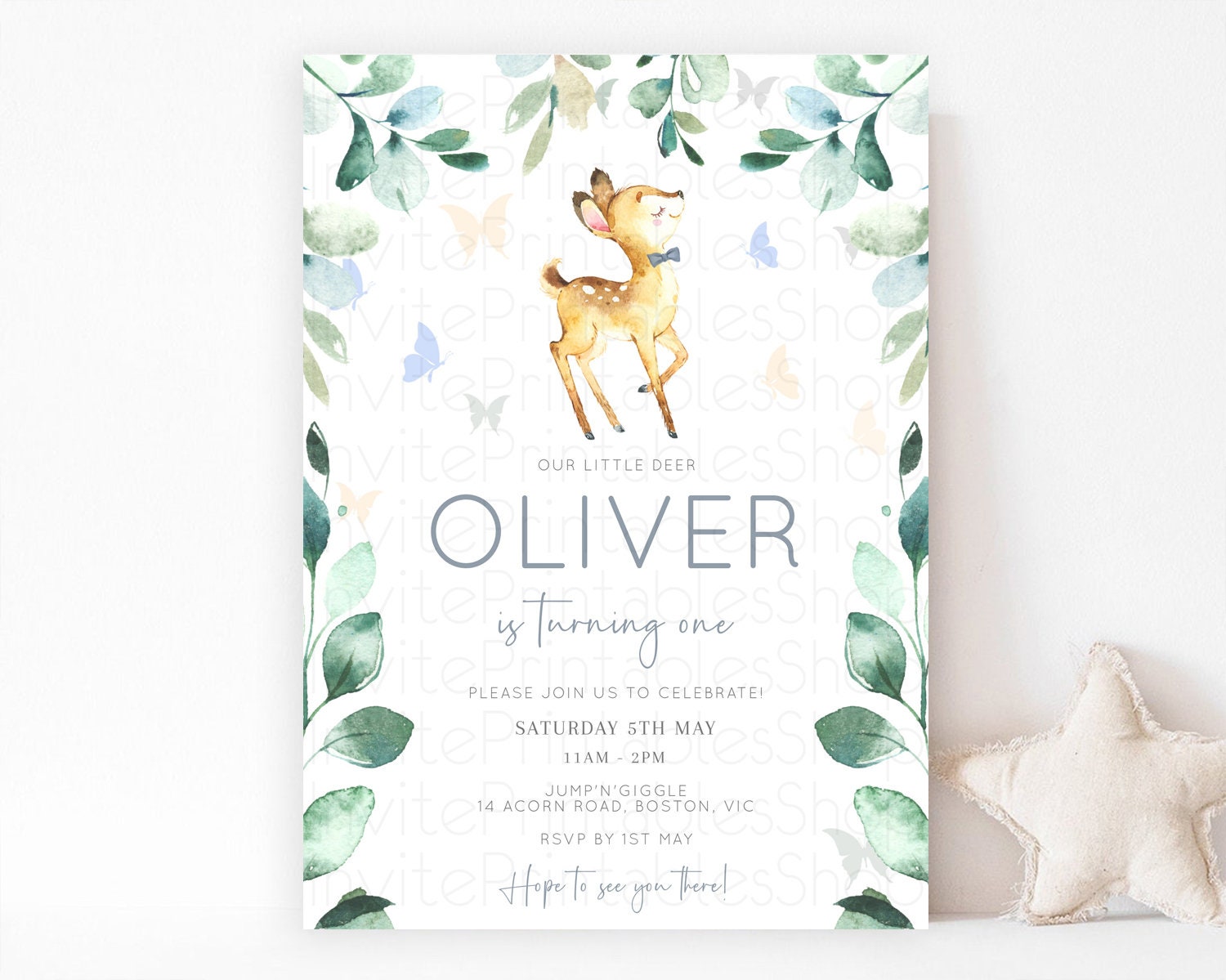 Fawn Birthday Invitation Deer Birthday Invitation Enchanted Forest Party Butterfly Pastel Flowers Whimsical 2nd 1st First Birthday D10767