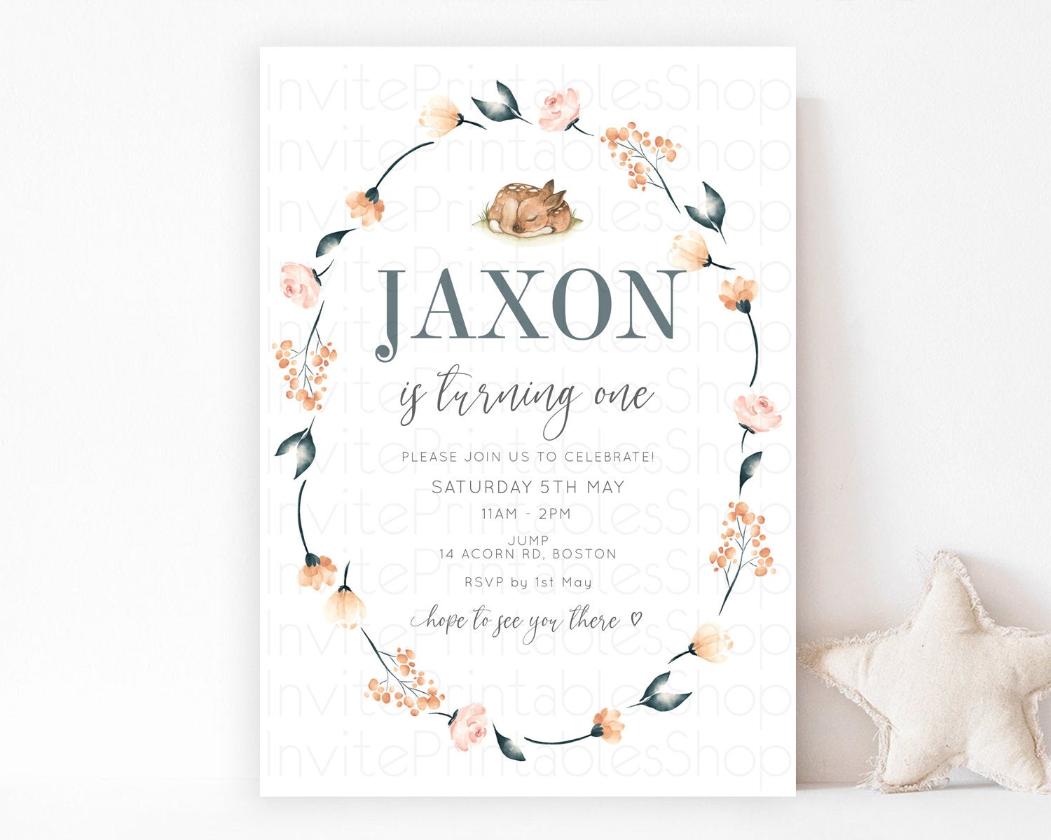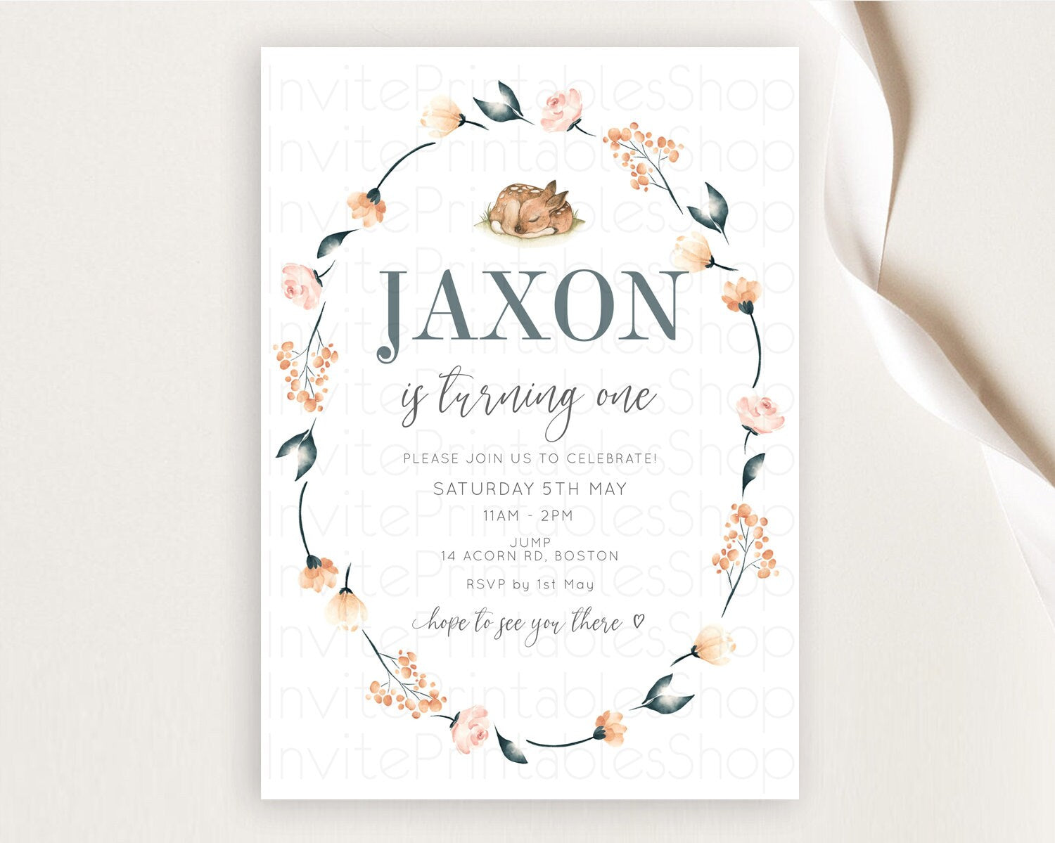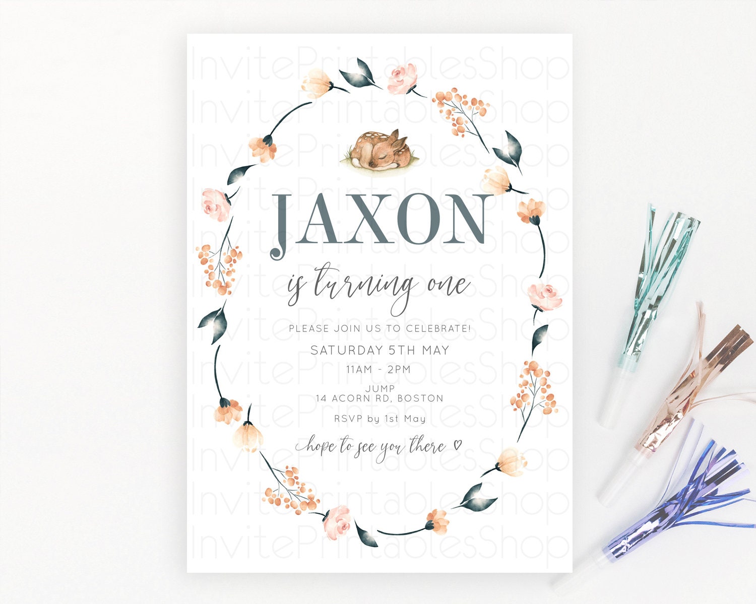 Fawn Birthday Invitation Deer Birthday Invitation Enchanted Forest Party Butterfly Pastel Flowers Whimsical 2nd 1st First Birthday D10790
