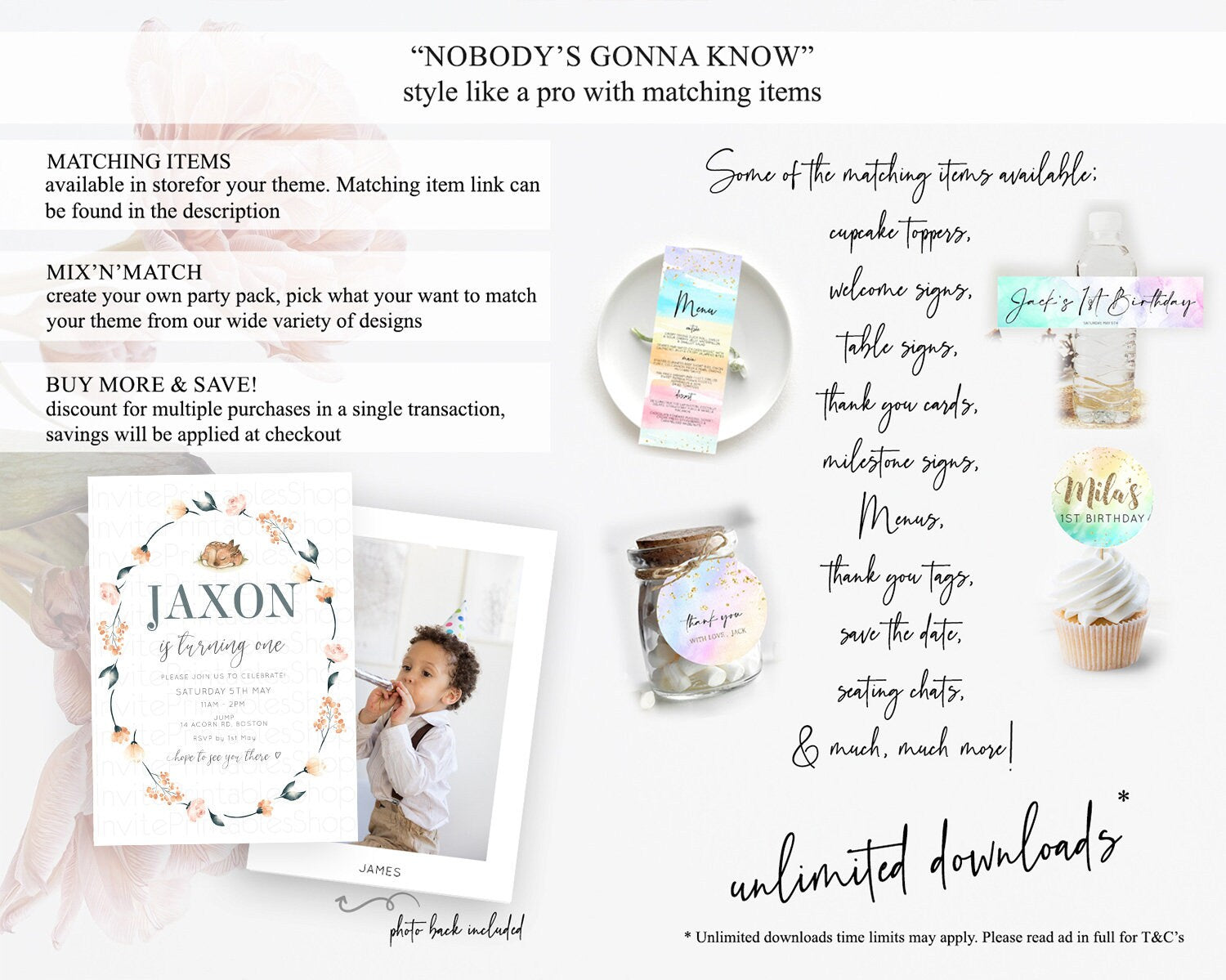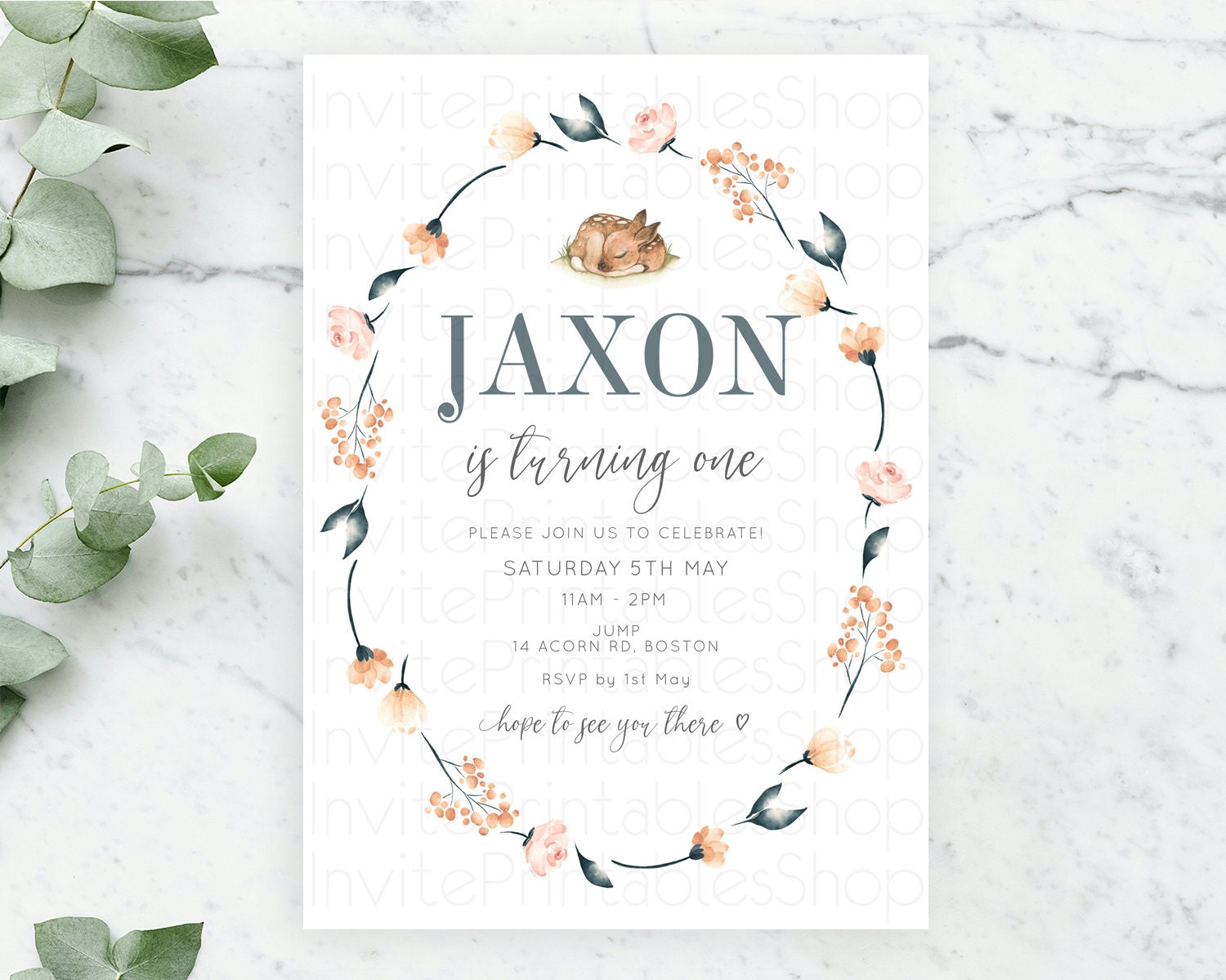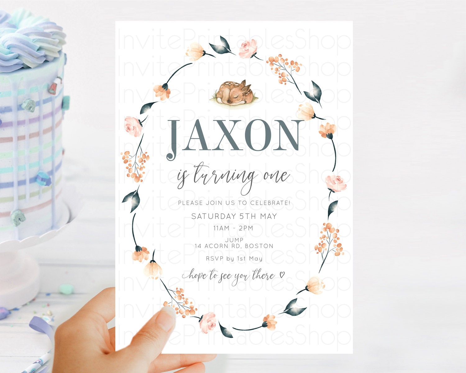 Fawn Birthday Invitation Deer Birthday Invitation Enchanted Forest Party Butterfly Pastel Flowers Whimsical 2nd 1st First Birthday D10790