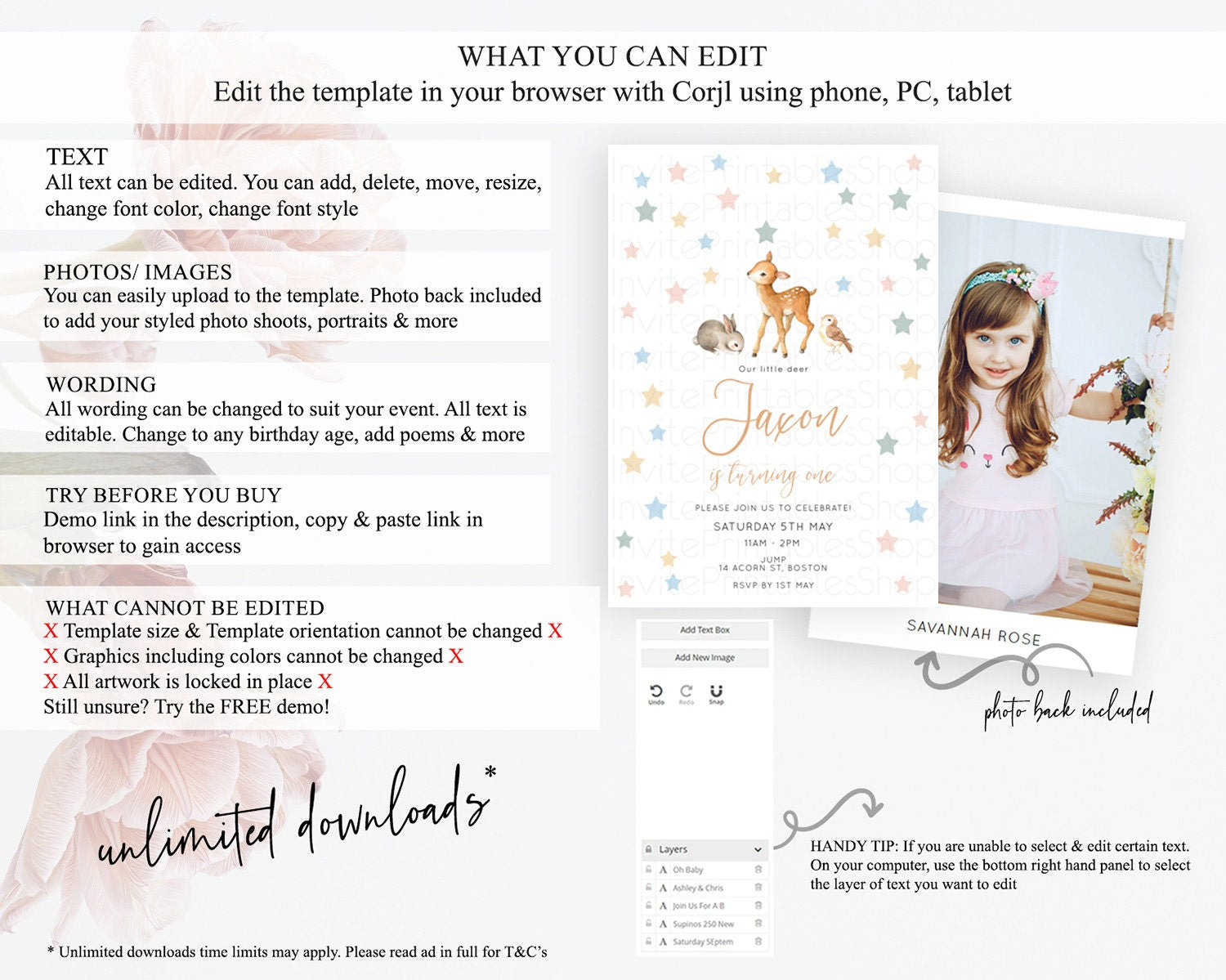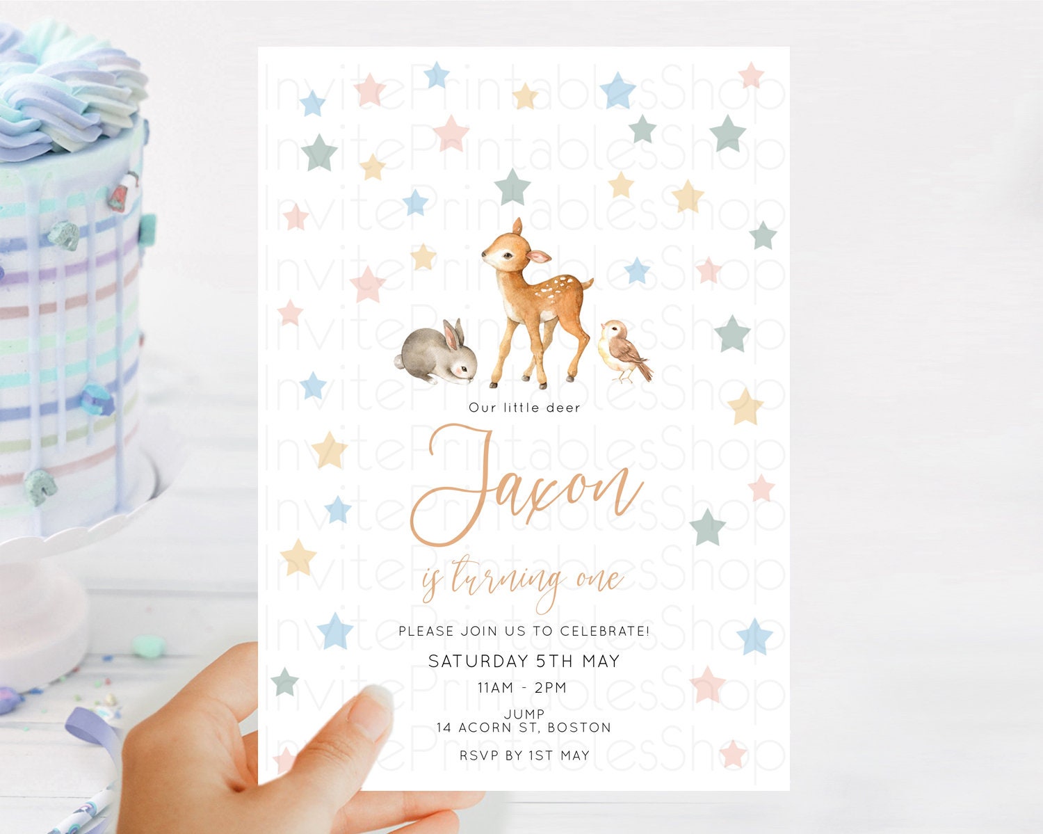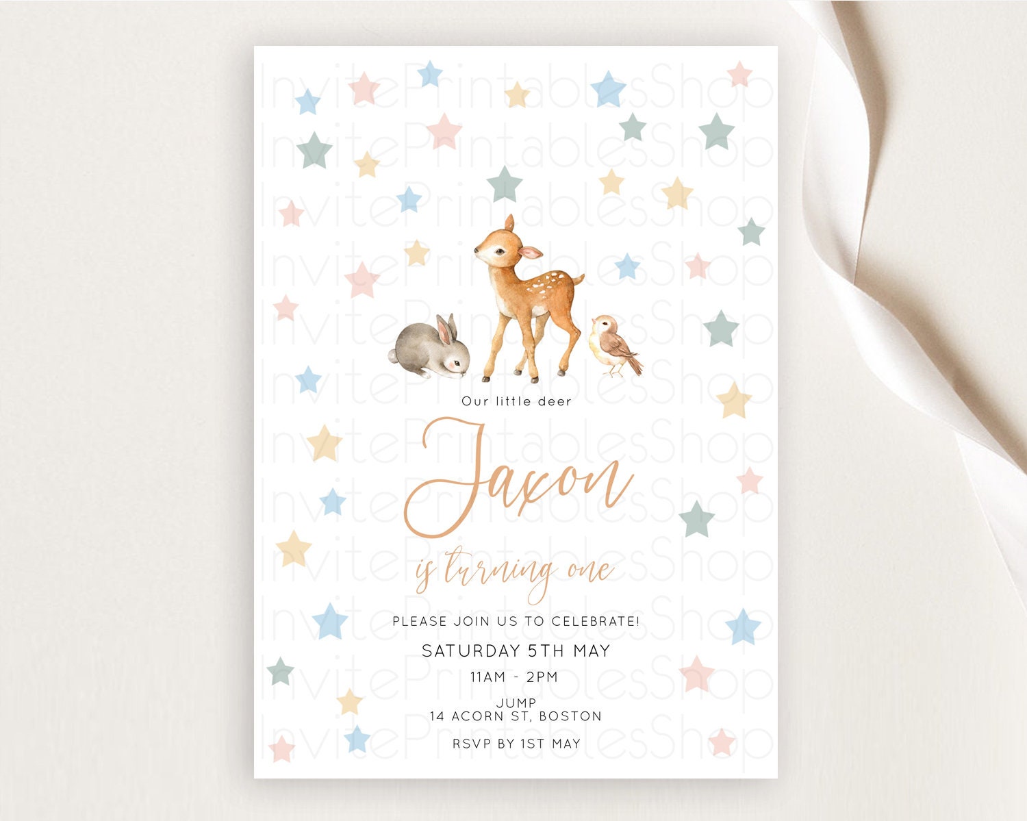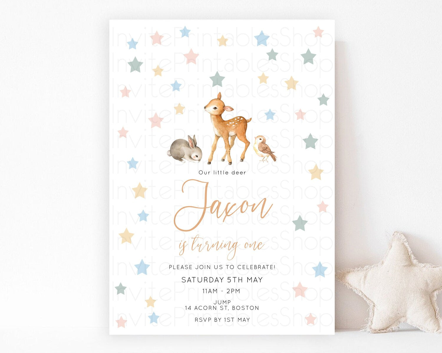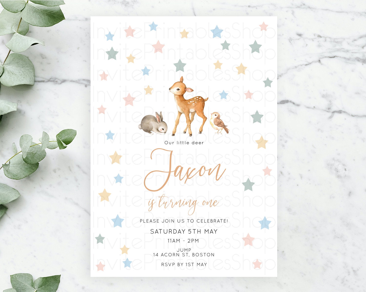 Fawn Birthday Invitation Deer Birthday Invitation Enchanted Forest Party Butterfly Pastel Flowers Whimsical 2nd 1st First Birthday D10918