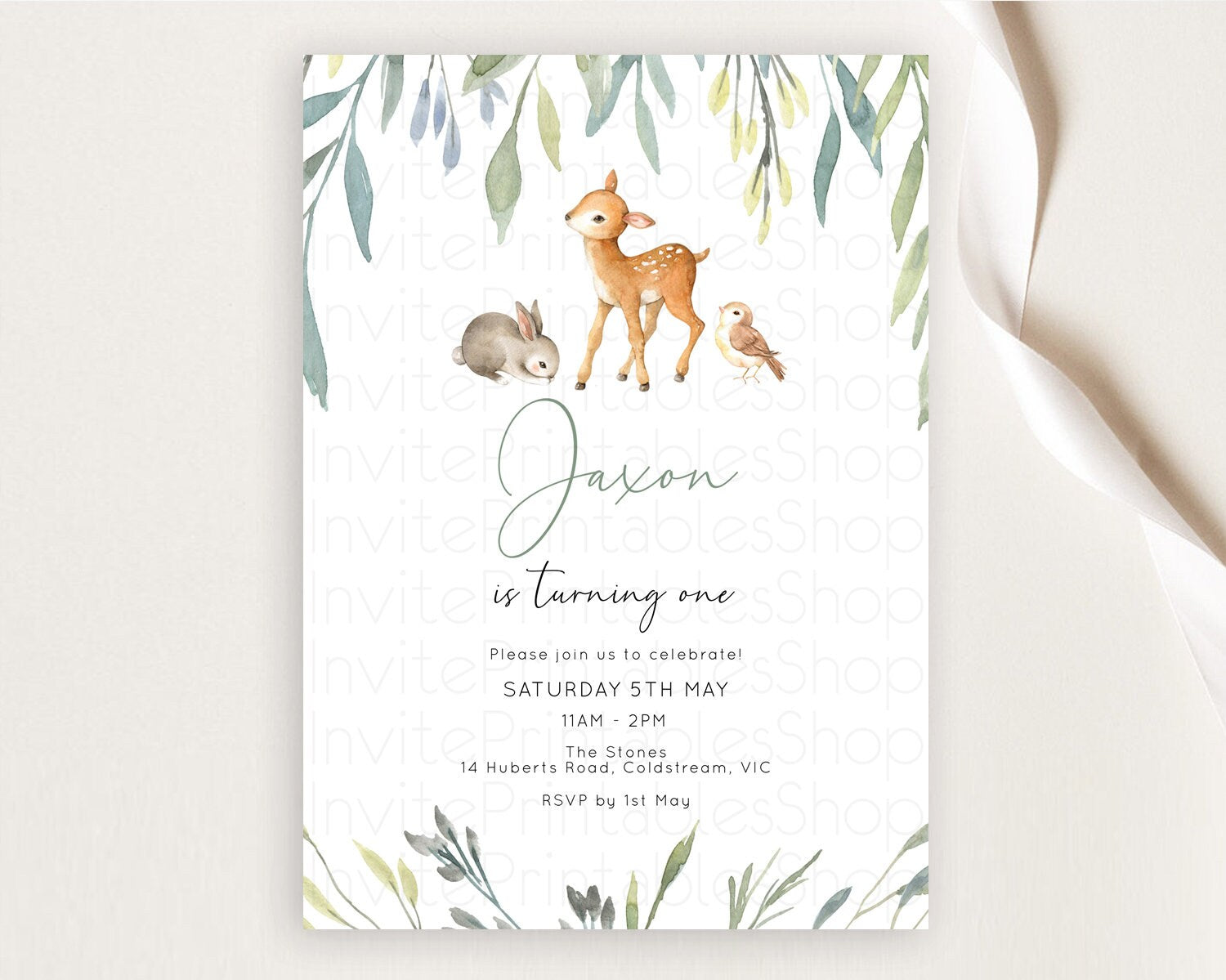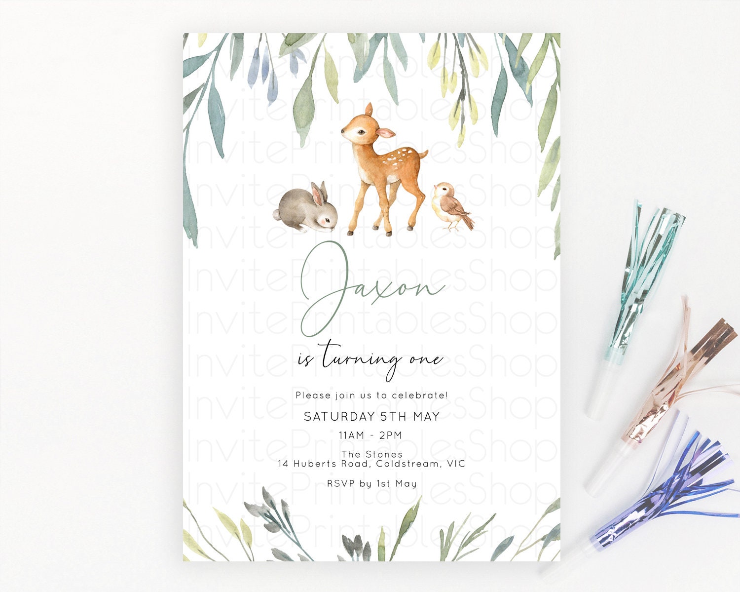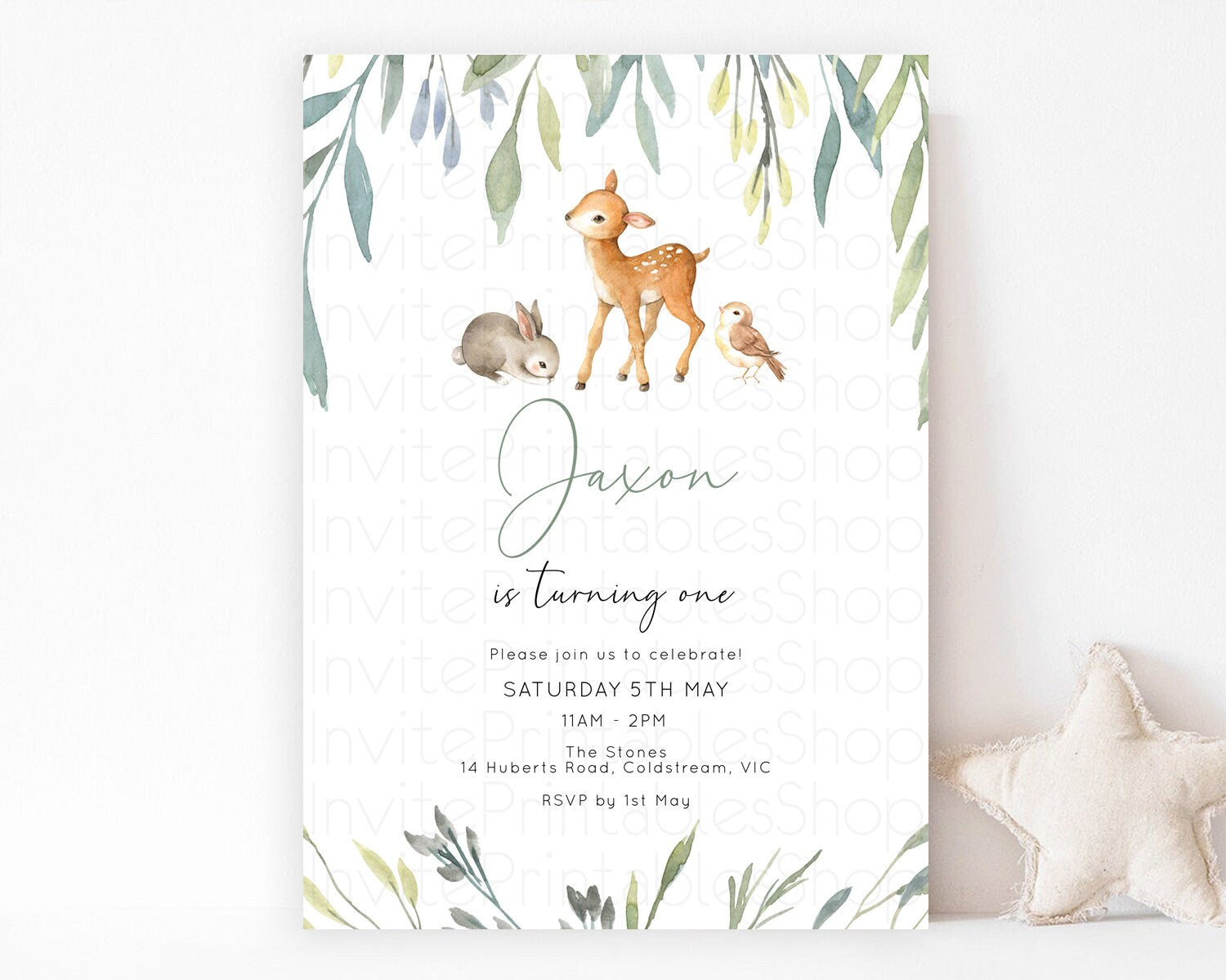 Fawn Birthday Invitation Deer Birthday Invitation Enchanted Forest Party Butterfly Pastel Flowers Whimsical 2nd 1st First Birthday D10919