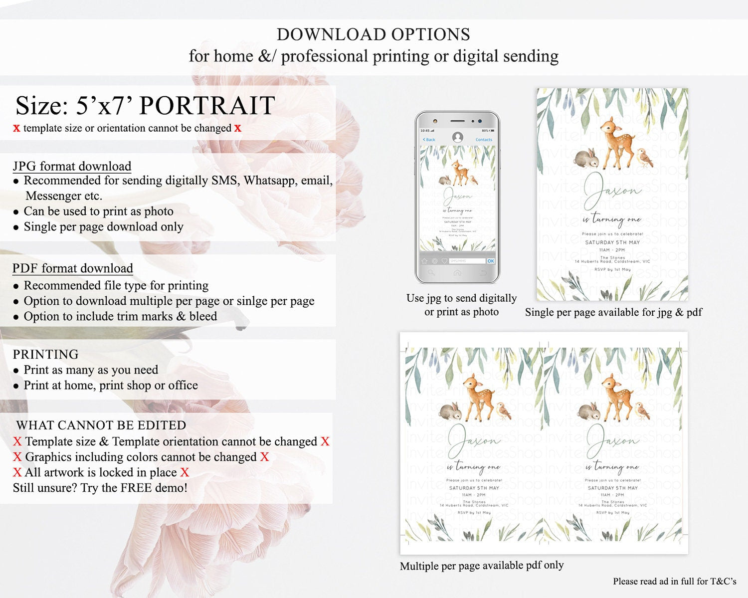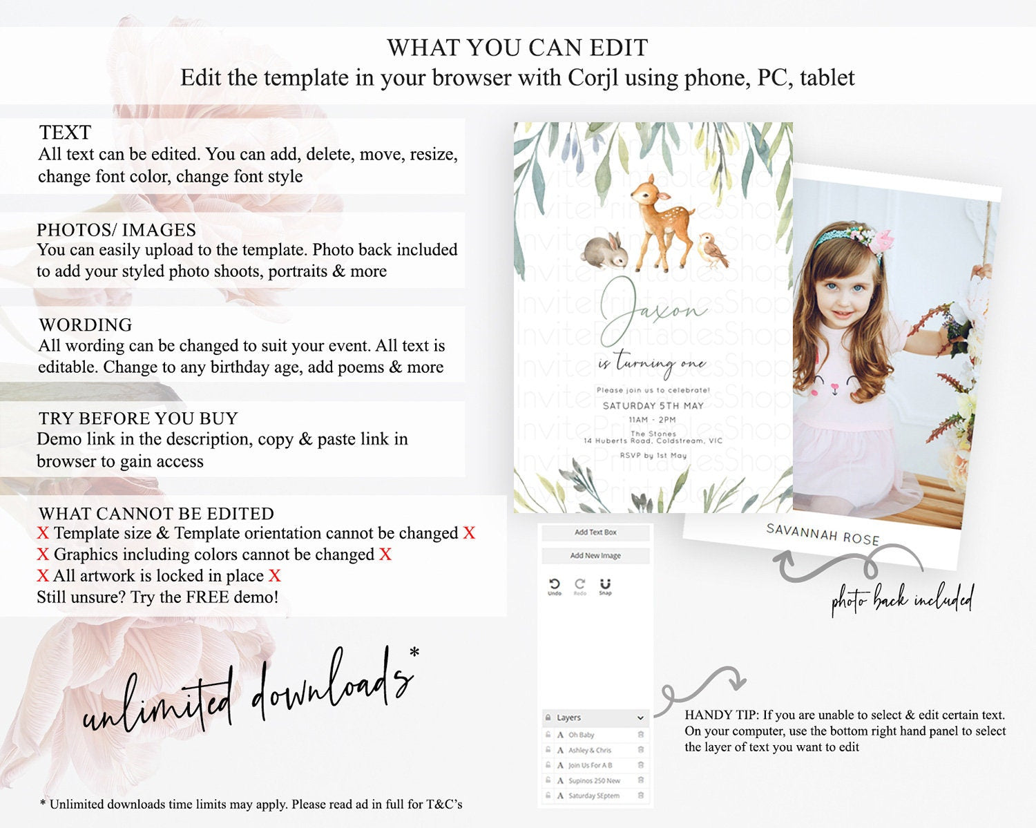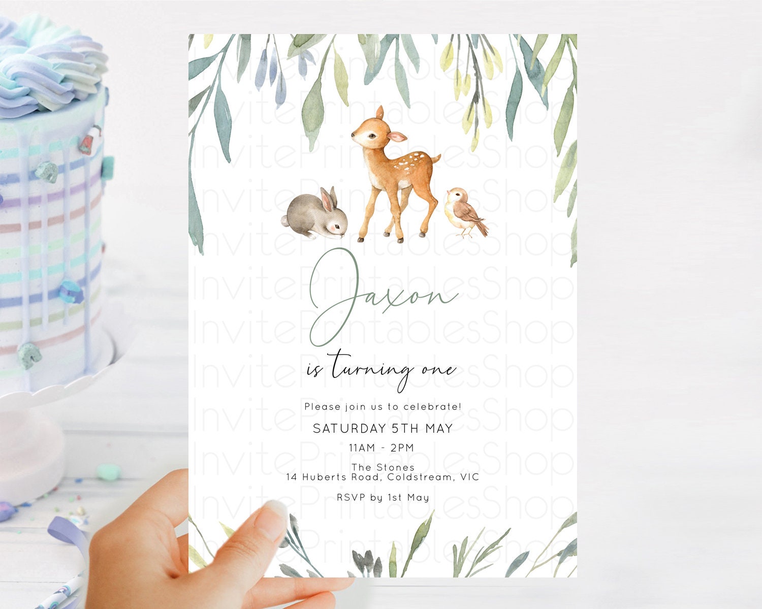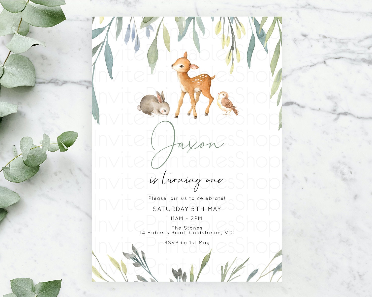 Fawn Birthday Invitation Deer Birthday Invitation Enchanted Forest Party Butterfly Pastel Flowers Whimsical 2nd 1st First Birthday D10919