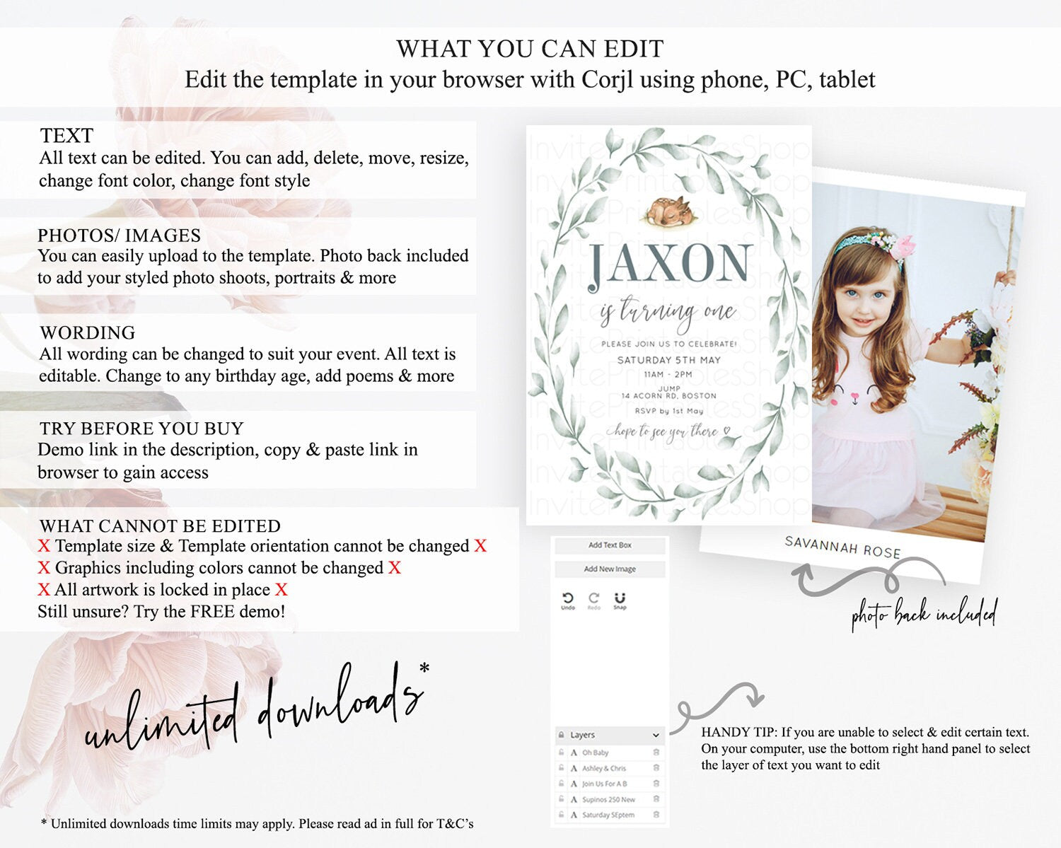 • After purchase, Corjl emails your editing link. Allow up to 15 minutes for delivery.