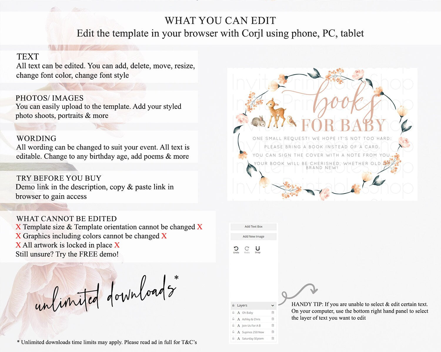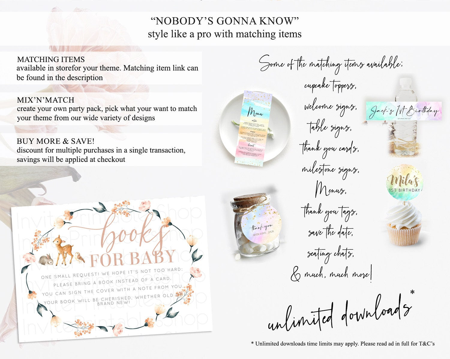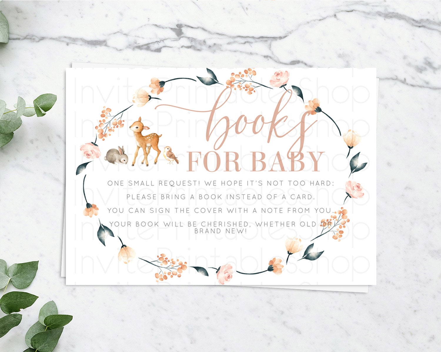 Fawn Books For Baby Card Deer Book Insert Floral Deer Book Card Enchanted Forest Butterfly Pastel Baby Shower Book Poem Request D10241