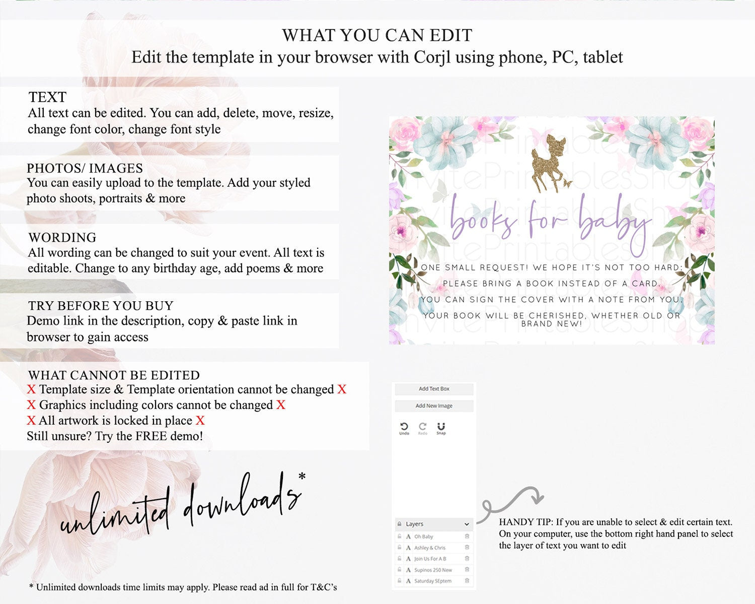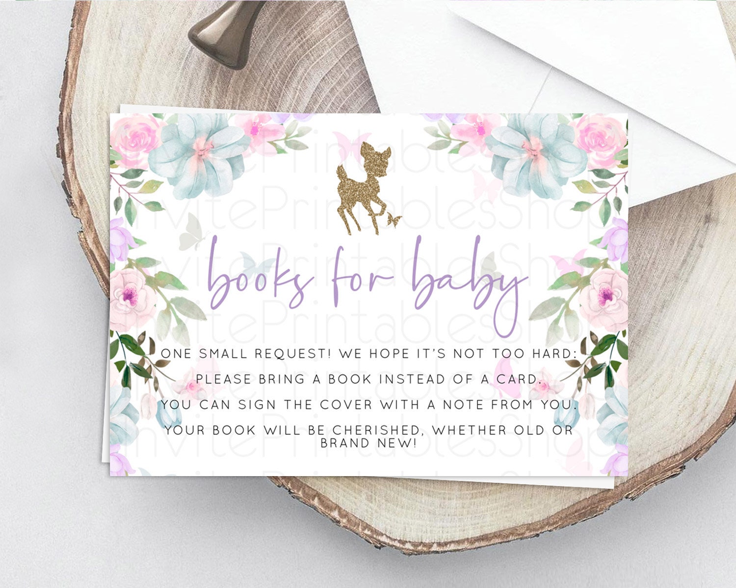 Fawn Books For Baby Card Deer Book Insert Floral Deer Book Card Enchanted Forest Butterfly Pastel Baby Shower Book Poem Request D10476