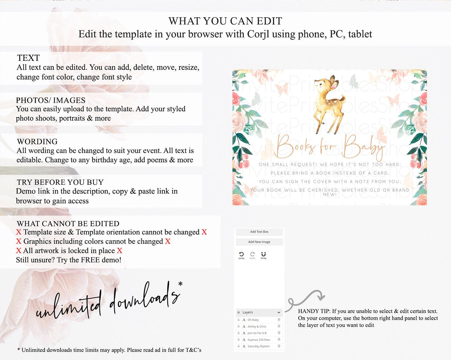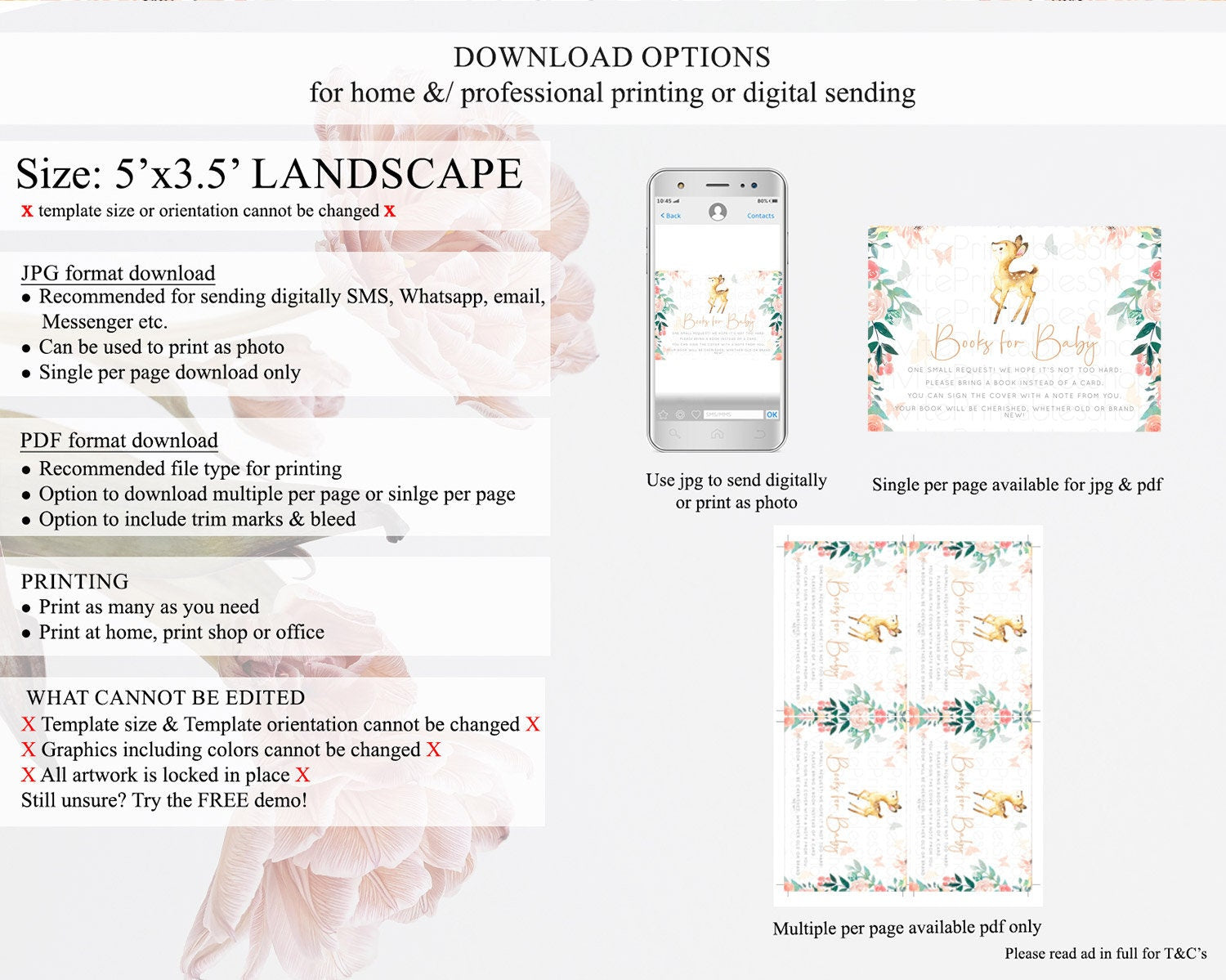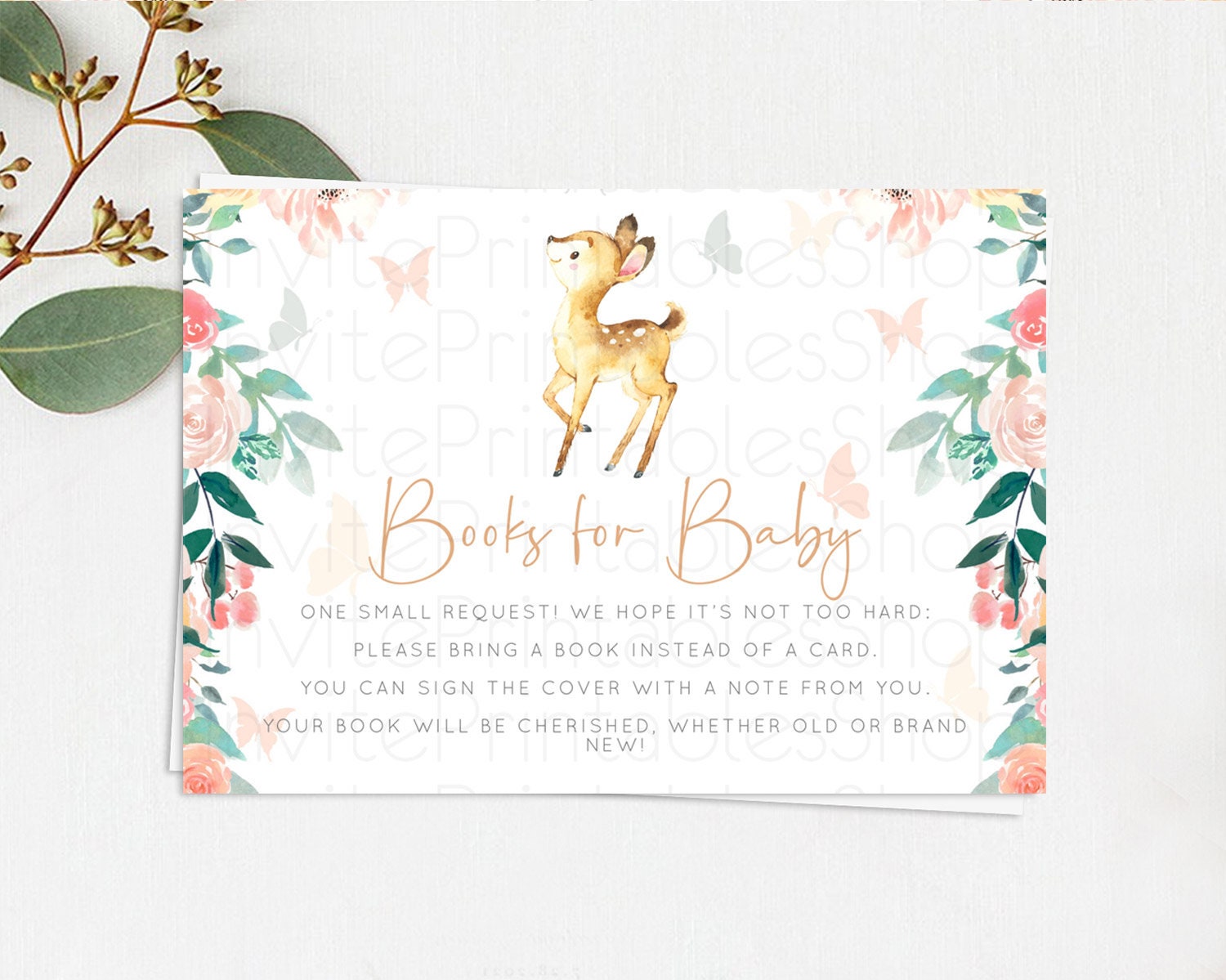 Fawn Books For Baby Card Deer Book Insert Floral Deer Book Card Enchanted Forest Butterfly Pastel Baby Shower Book Poem Request D10753