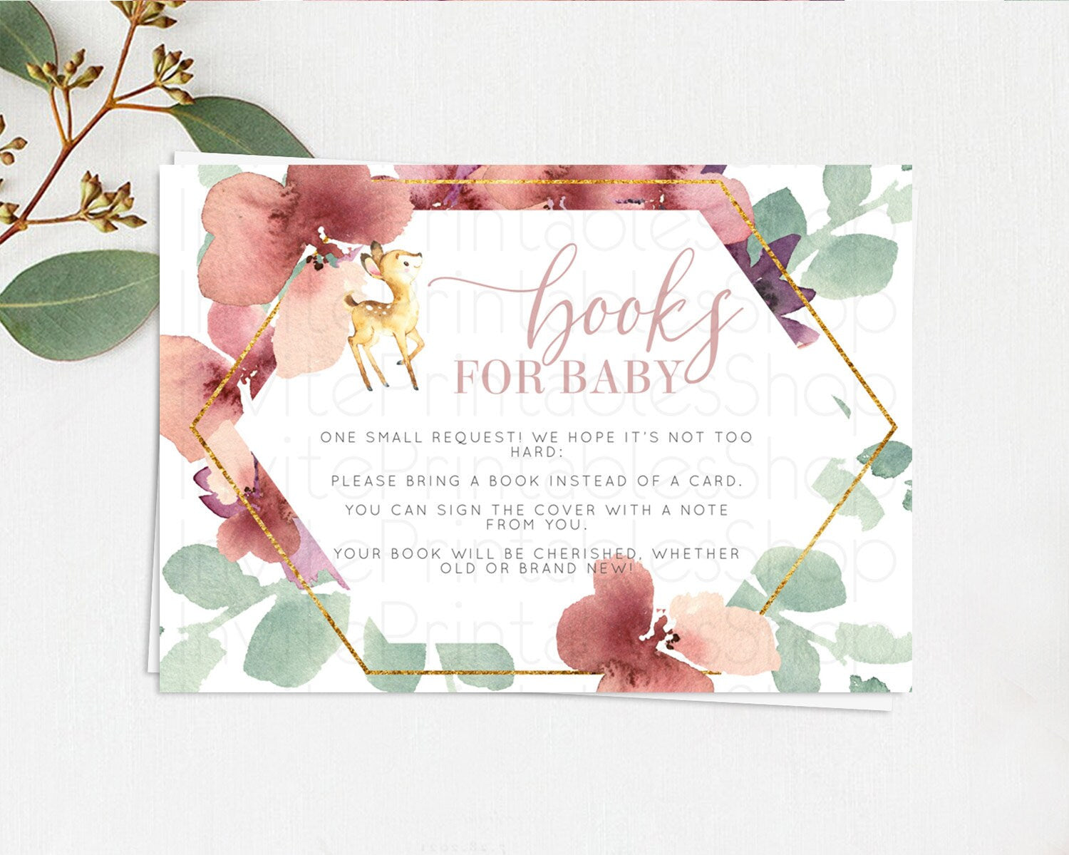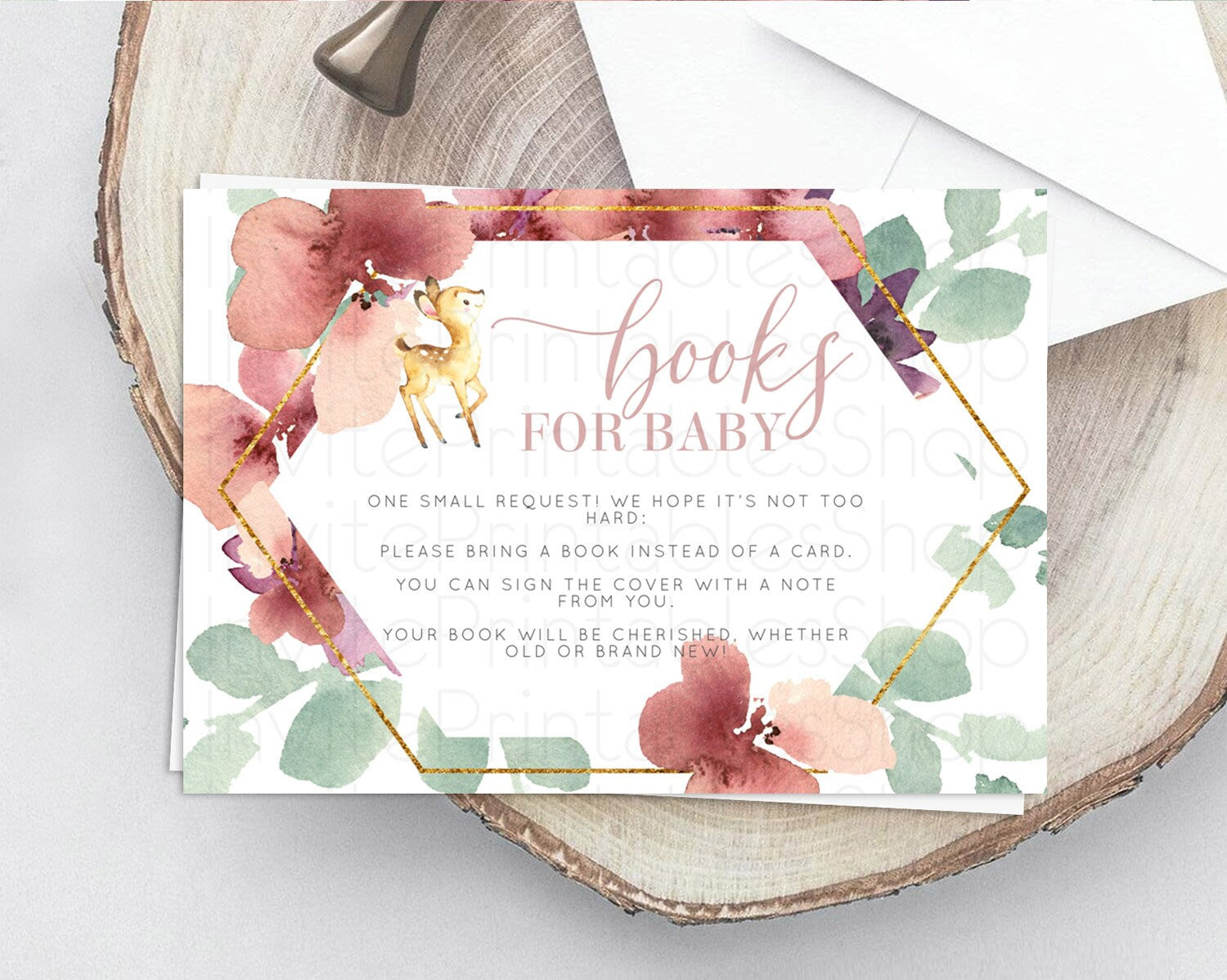 Fawn Books For Baby Card Deer Book Insert Floral Deer Book Card Enchanted Forest Butterfly Pastel Baby Shower Book Poem Request D10915