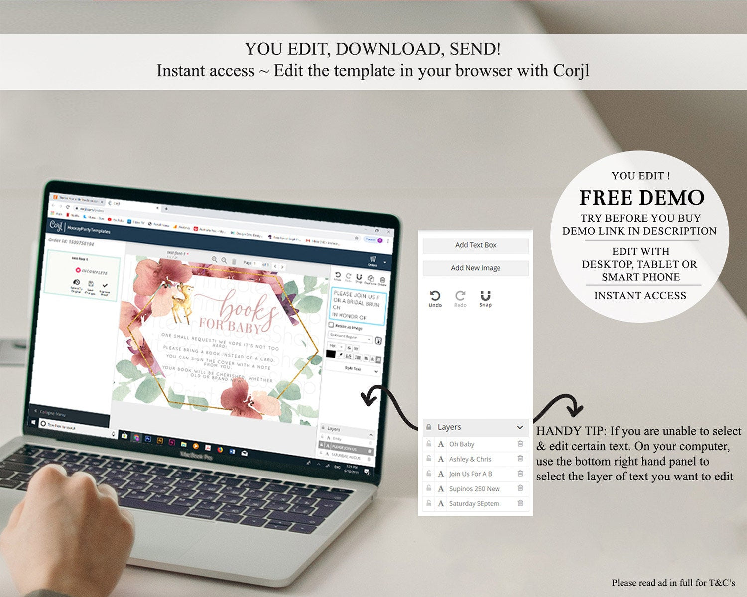 • After purchase, Corjl emails your editing link. Allow up to 15 minutes for delivery.