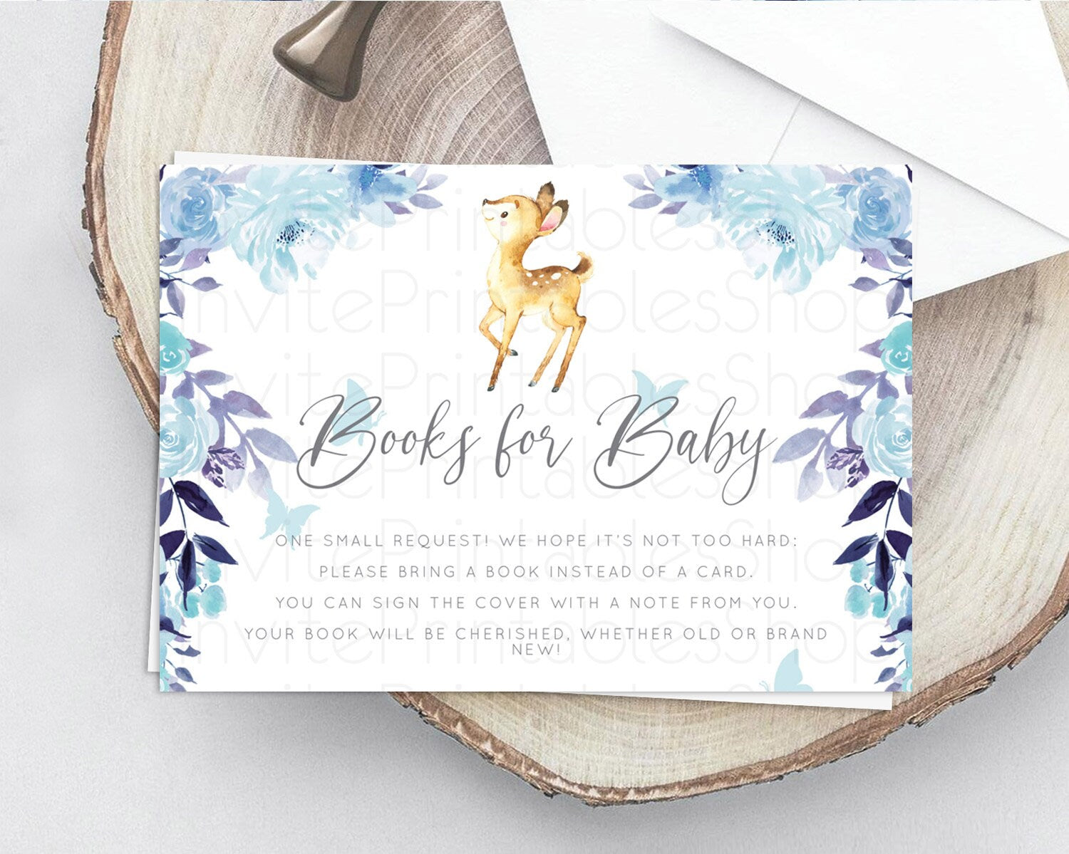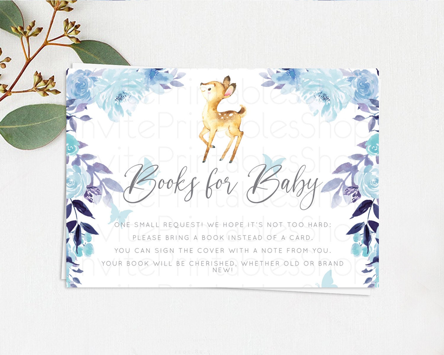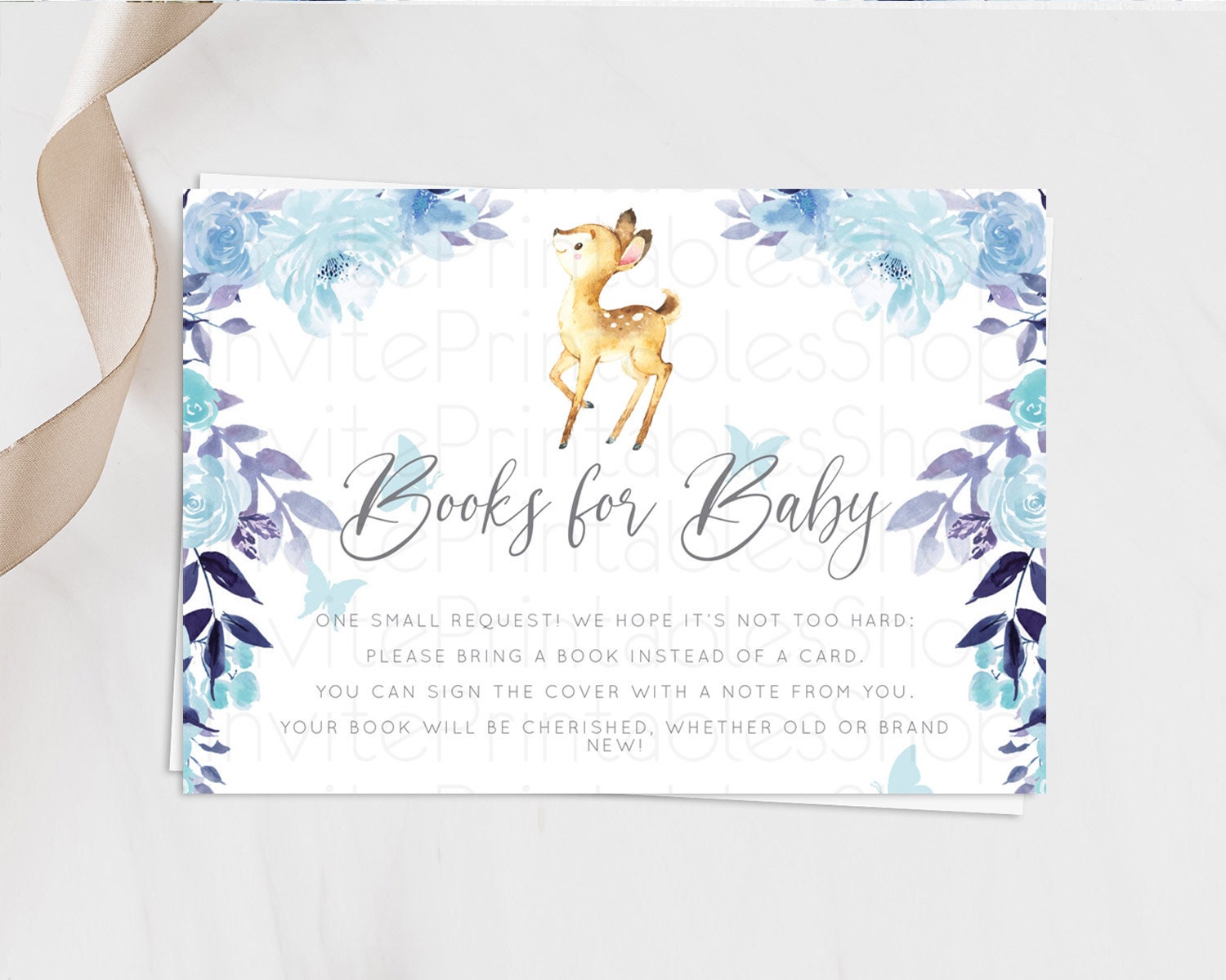 Fawn Books For Baby Card Deer Book Insert Floral Deer Book Card Enchanted Forest Butterfly Pastel Baby Shower Book Poem Request D10917