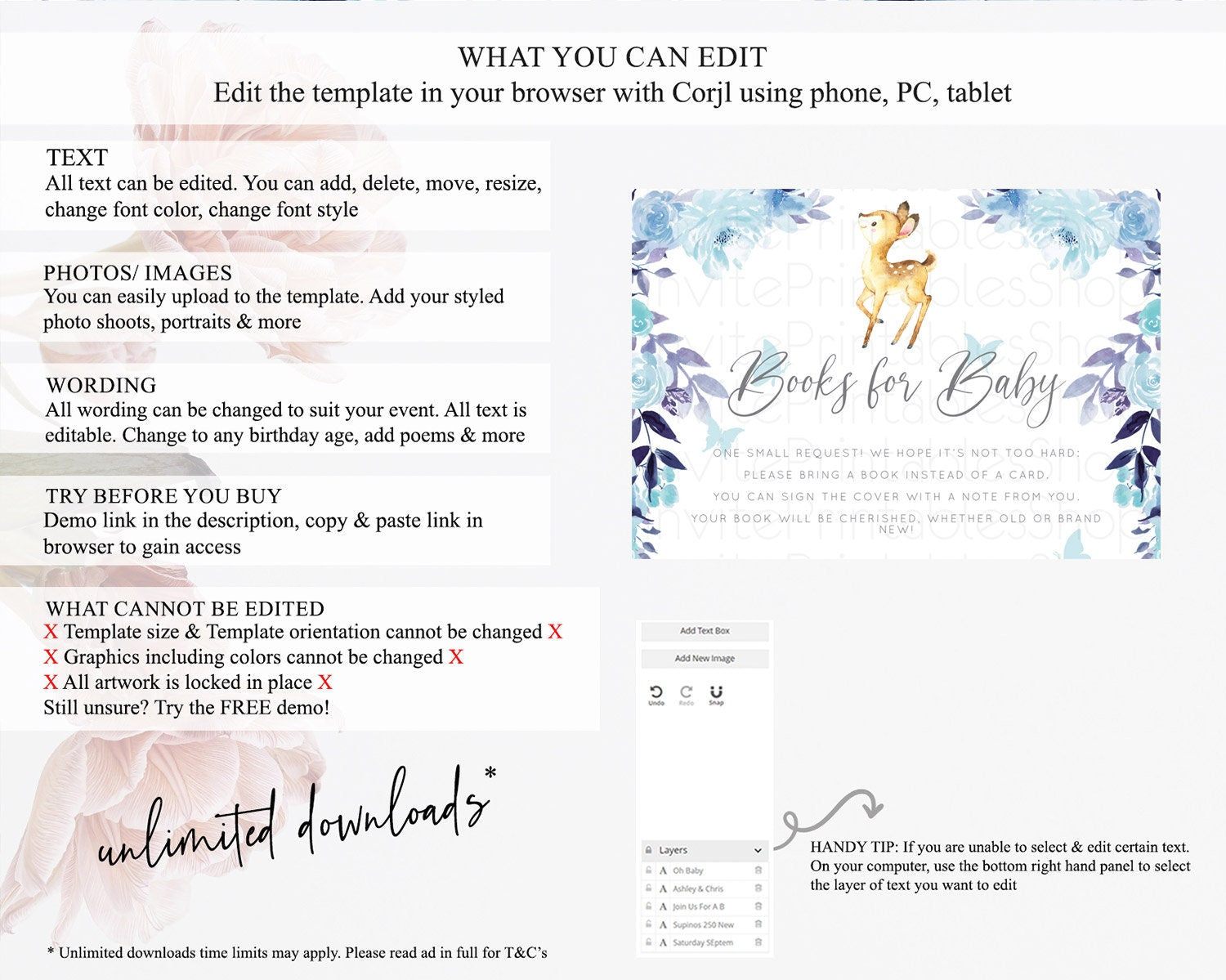 • Template size & orientation cannot be changed. Please use the demo link to confirm this product suits your needs.