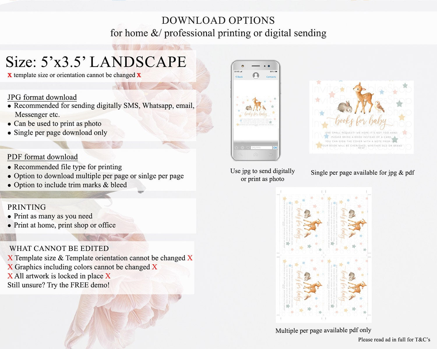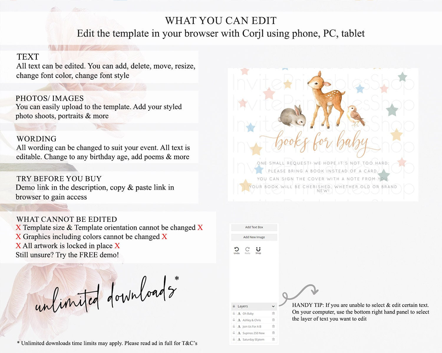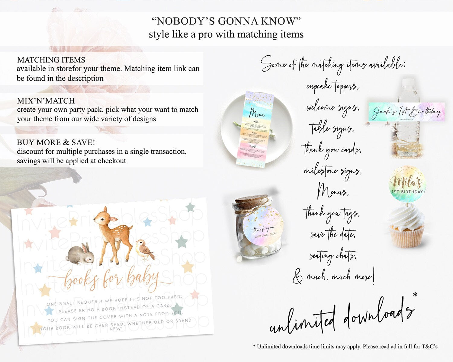 Fawn Books For Baby Card Deer Book Insert Floral Deer Book Card Enchanted Forest Butterfly Pastel Baby Shower Book Poem Request D10918
