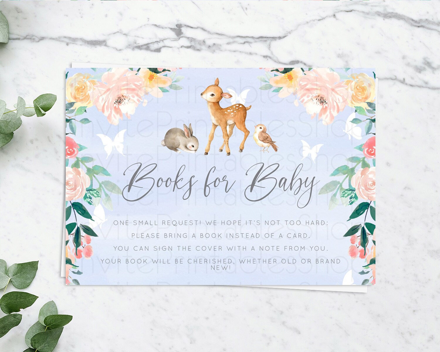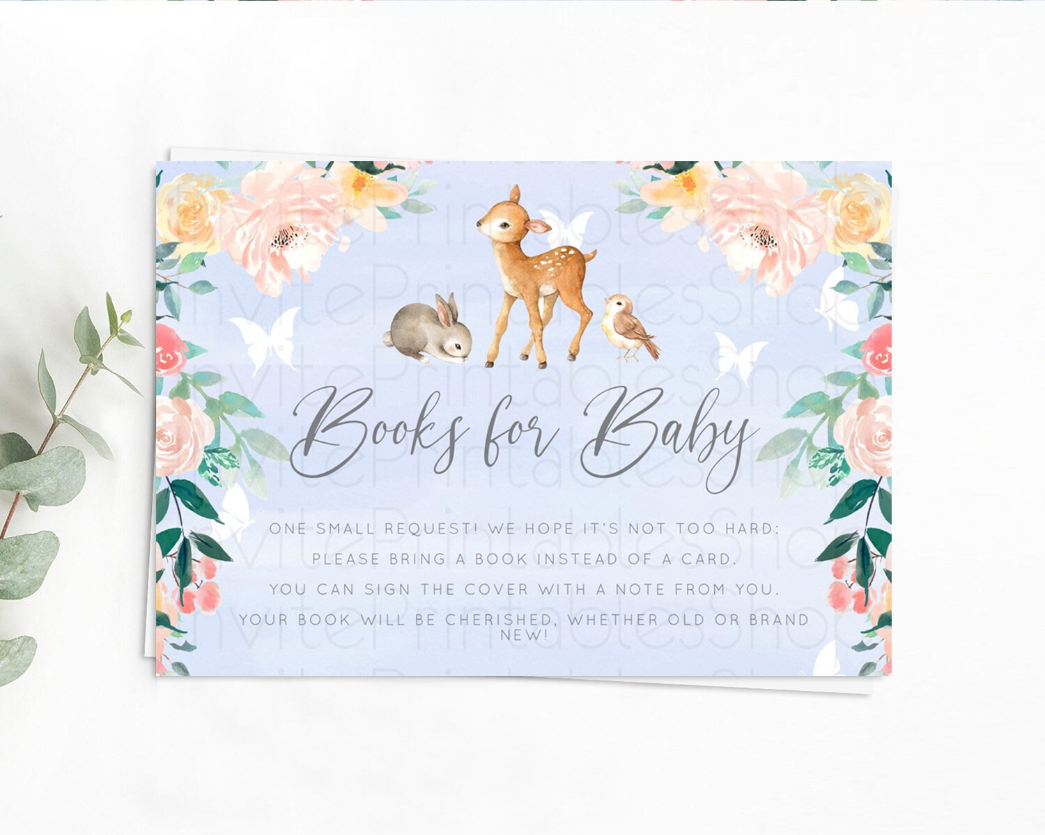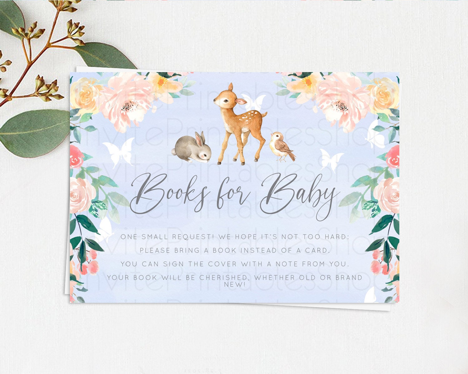Fawn Books For Baby Card Deer Book Insert Floral Deer Book Card Enchanted Forest Butterfly Pastel Baby Shower Book Poem Request D10920