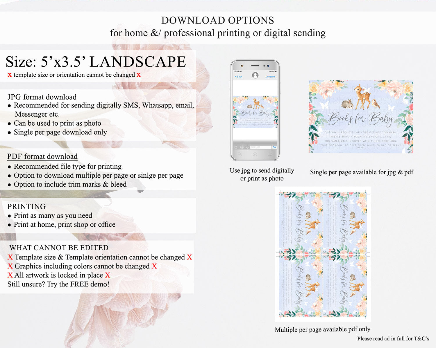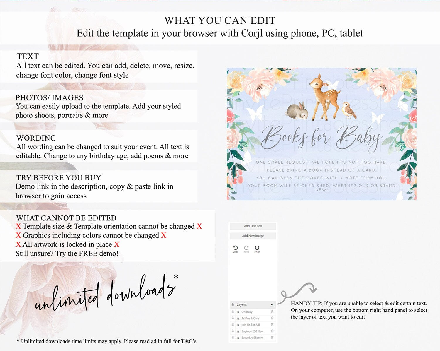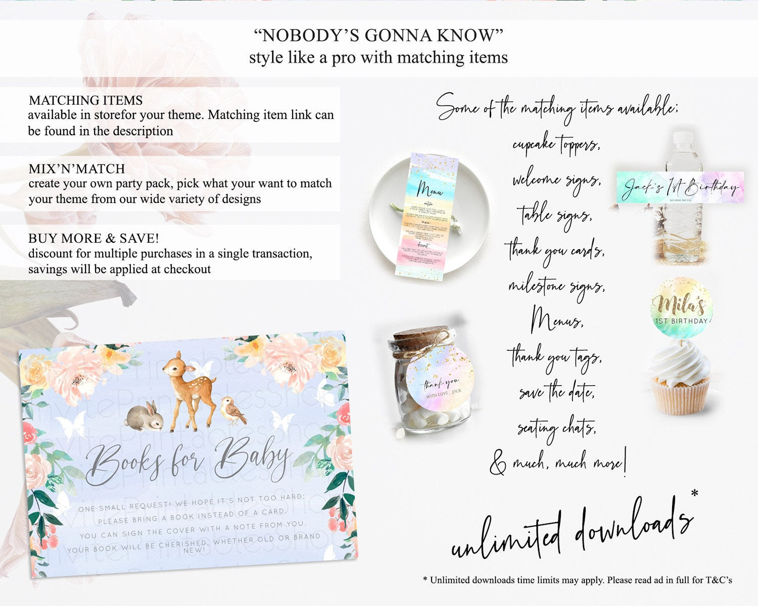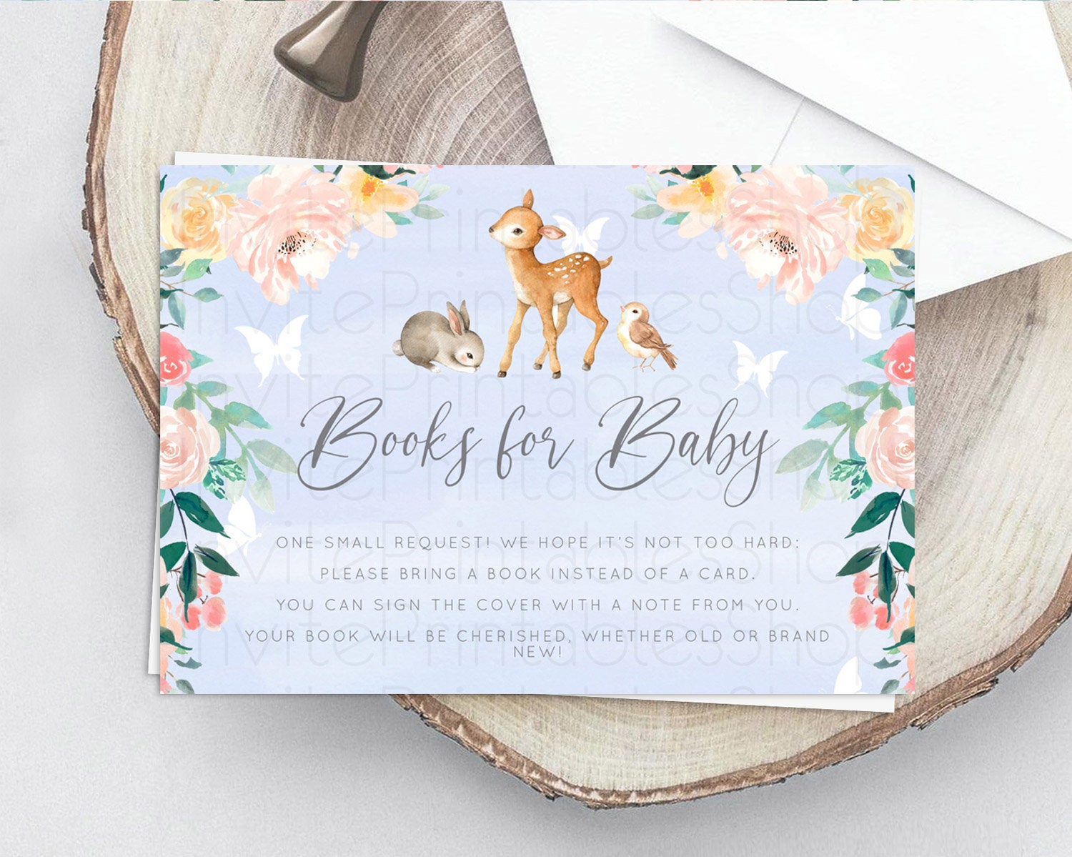 Fawn Books For Baby Card Deer Book Insert Floral Deer Book Card Enchanted Forest Butterfly Pastel Baby Shower Book Poem Request D10920