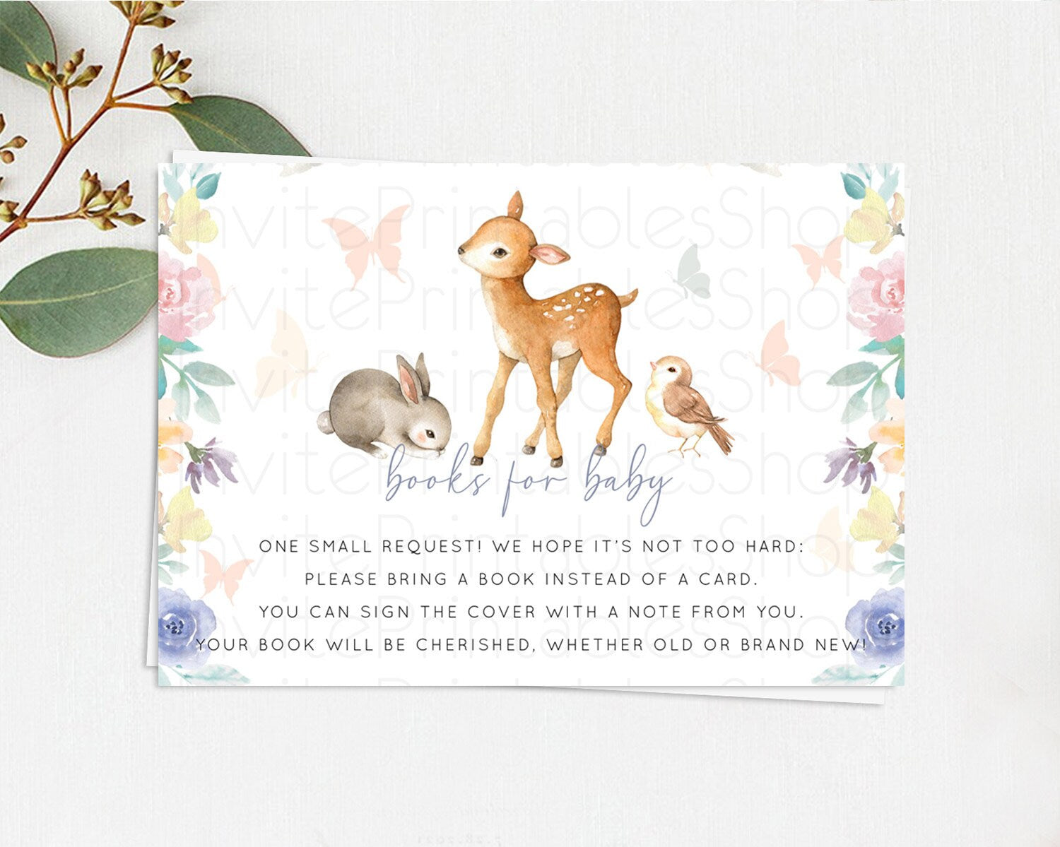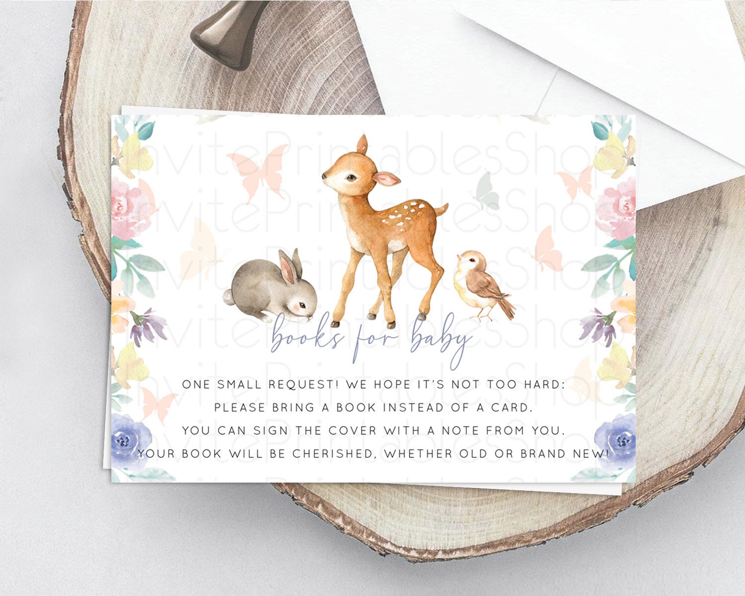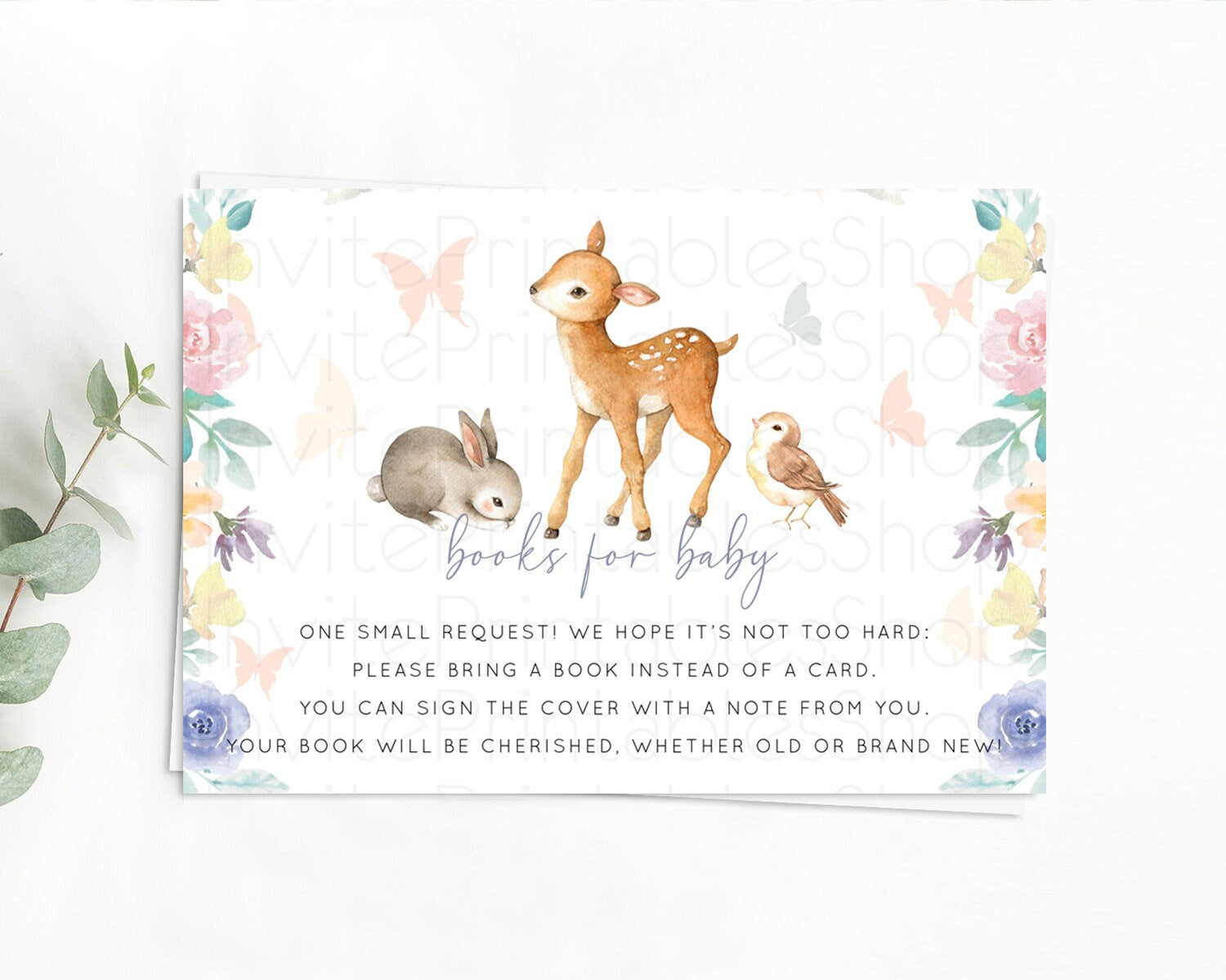 Fawn Books For Baby Card Deer Book Insert Floral Deer Book Card Enchanted Forest Butterfly Pastel Baby Shower Book Poem Request D10930