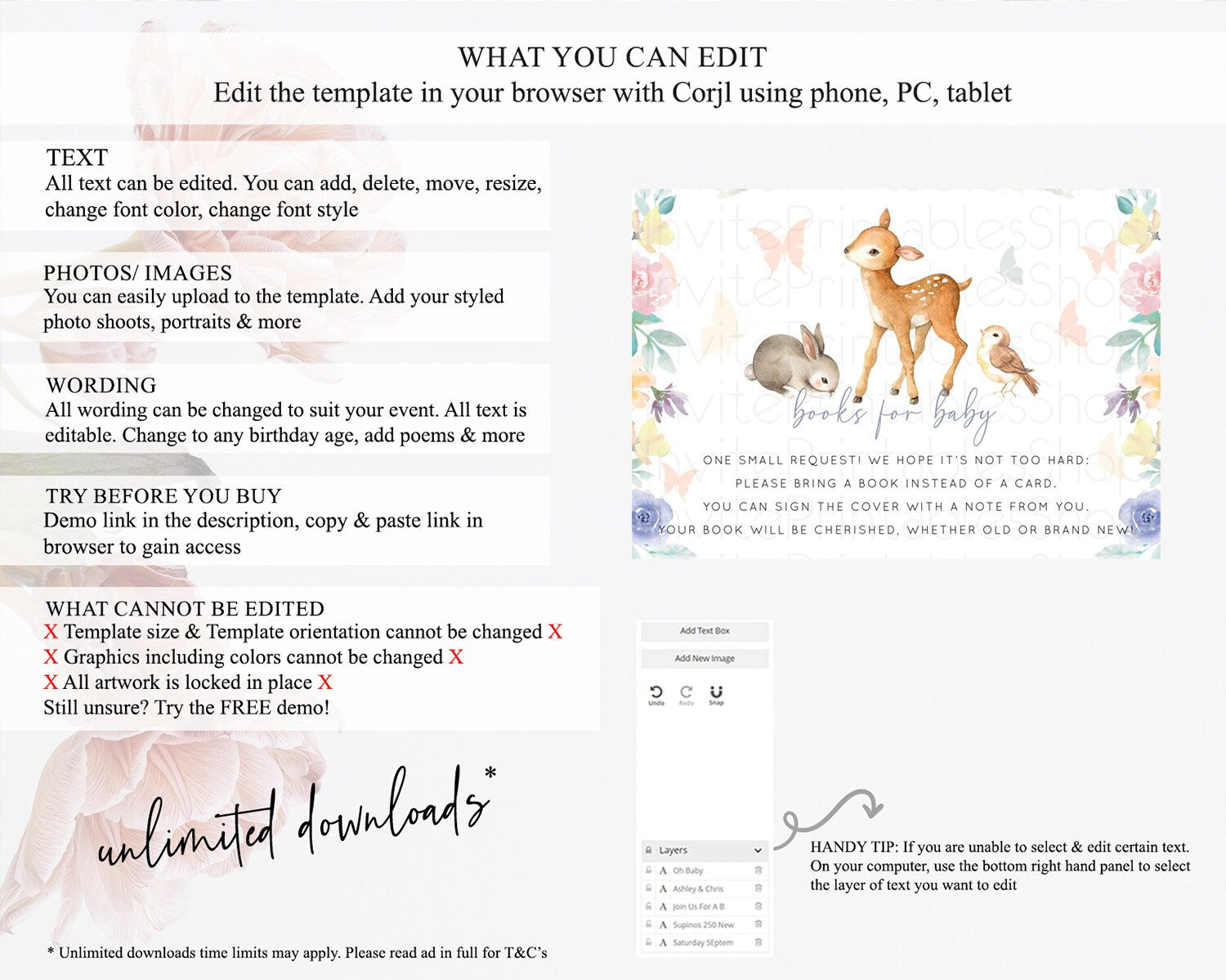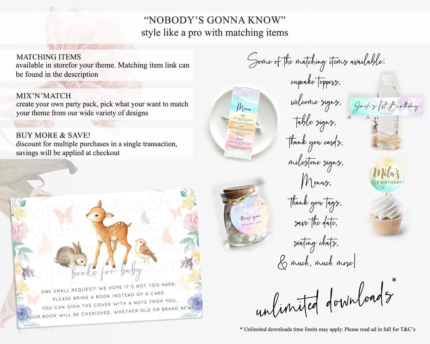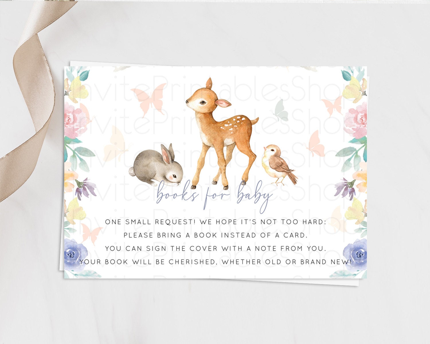 Fawn Books For Baby Card Deer Book Insert Floral Deer Book Card Enchanted Forest Butterfly Pastel Baby Shower Book Poem Request D10930