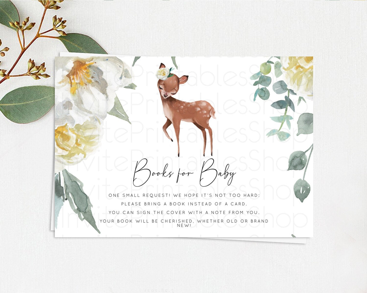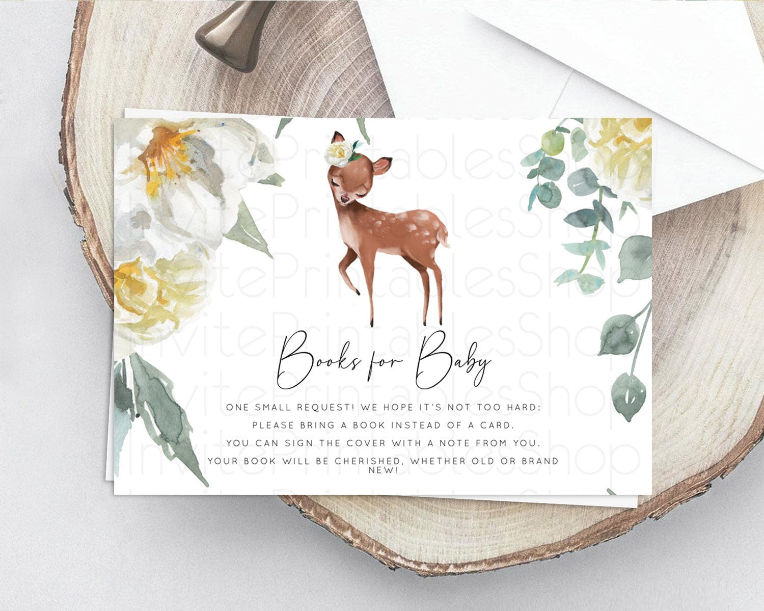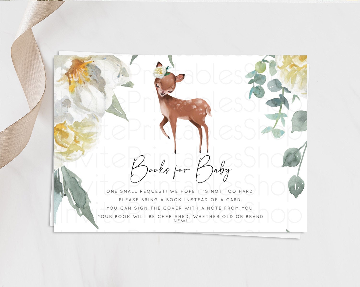 Fawn Books For Baby Card Deer Book Insert Floral Deer Book Card Enchanted Forest Butterfly Pastel Baby Shower Book Poem Request D11030