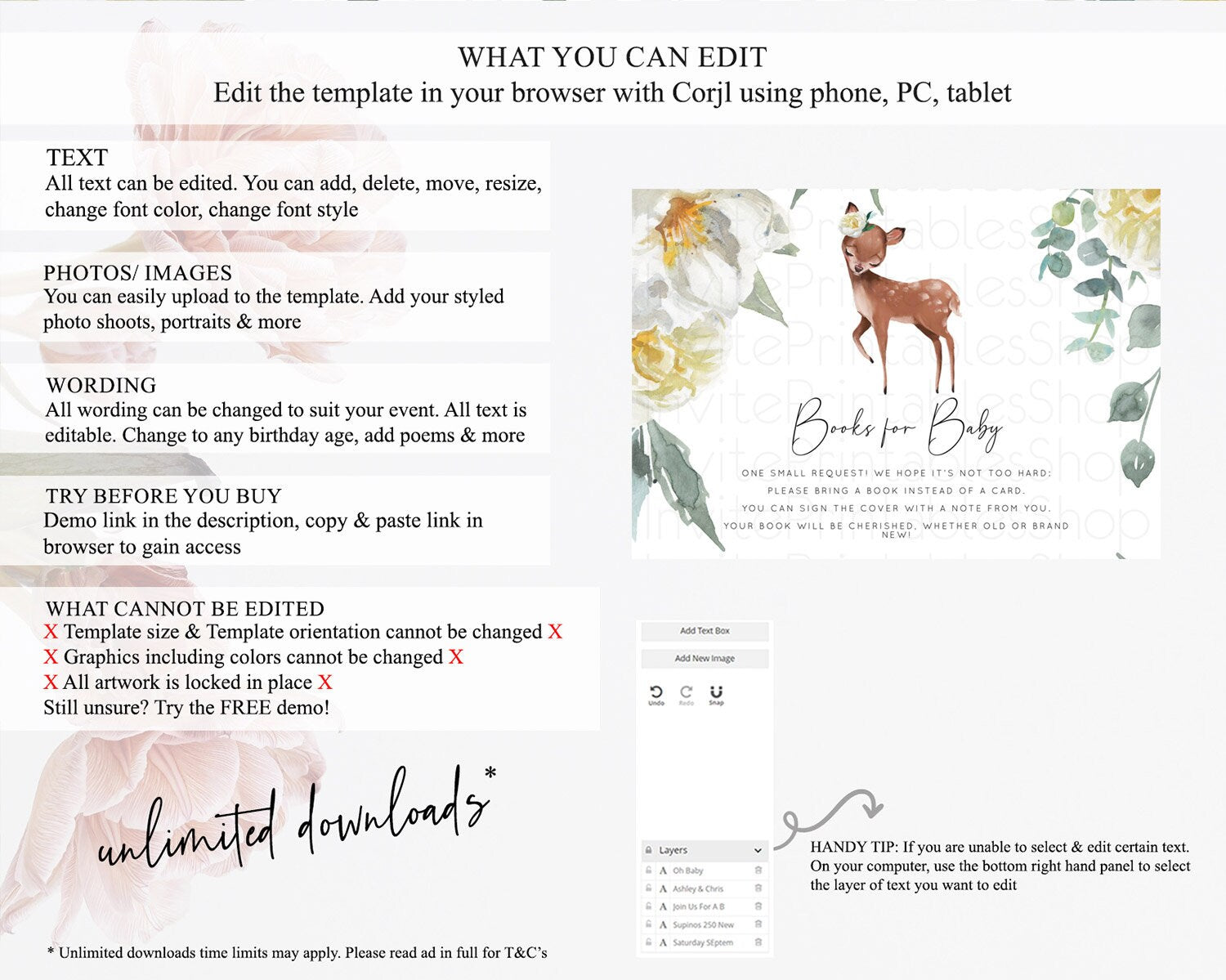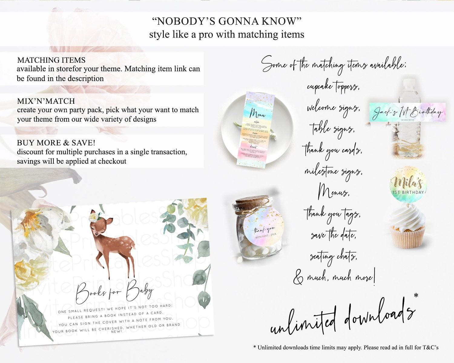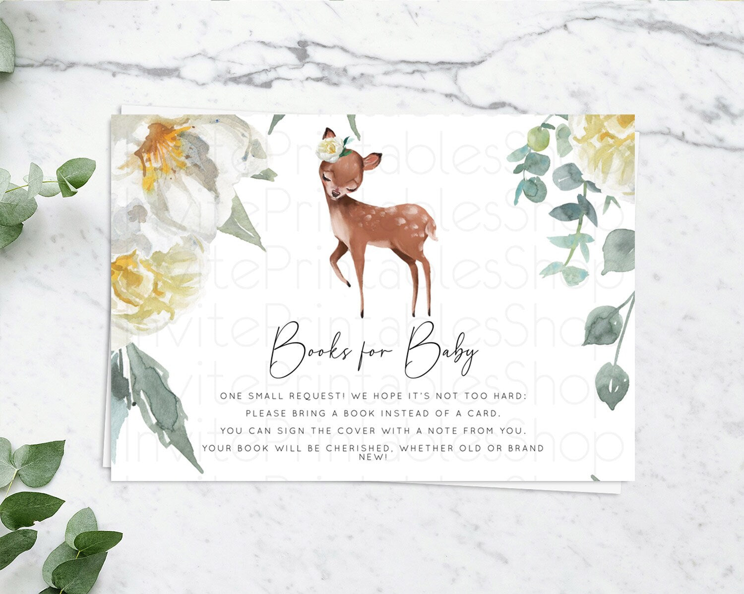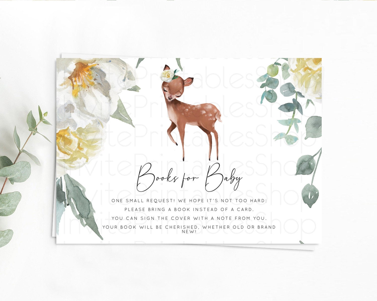 Fawn Books For Baby Card Deer Book Insert Floral Deer Book Card Enchanted Forest Butterfly Pastel Baby Shower Book Poem Request D11030