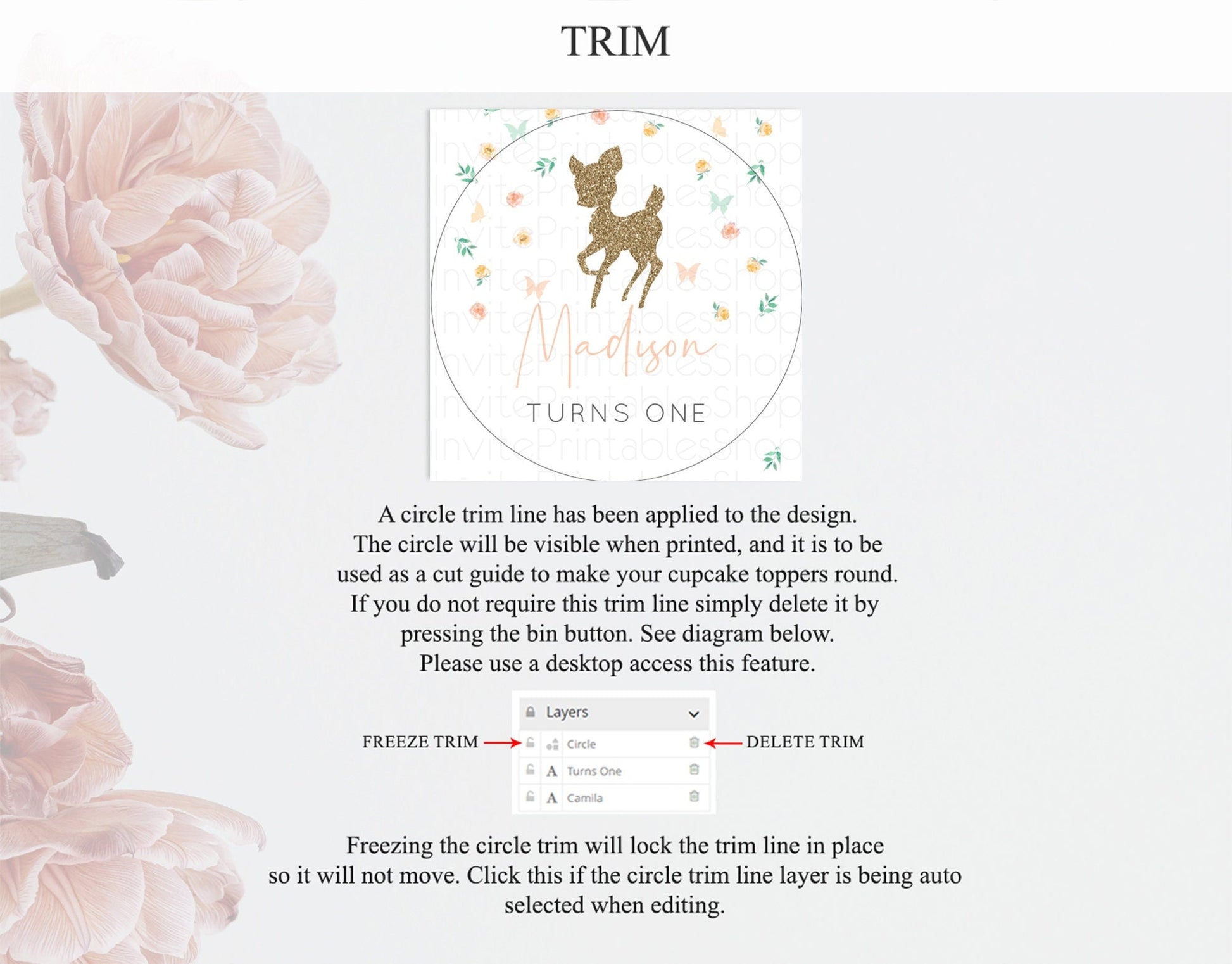 Fawn Cupcake Toppers Deer Cupcake Toppers Enchanted Forest Party Butterfly Pastel Flowers Woofland Cupcake Toppers First Birthday D10355