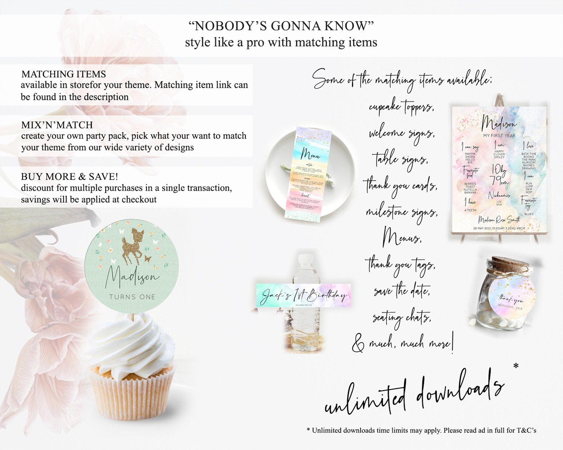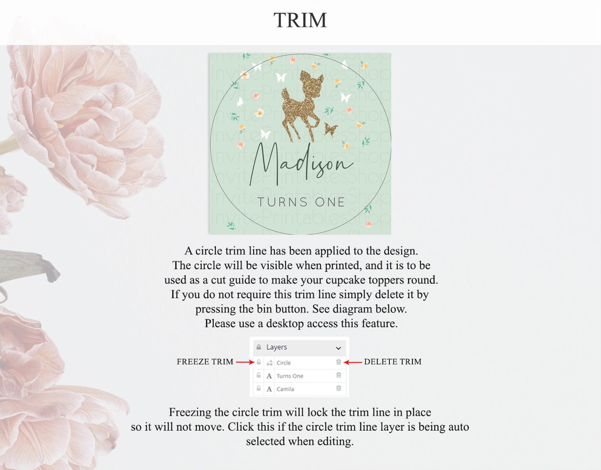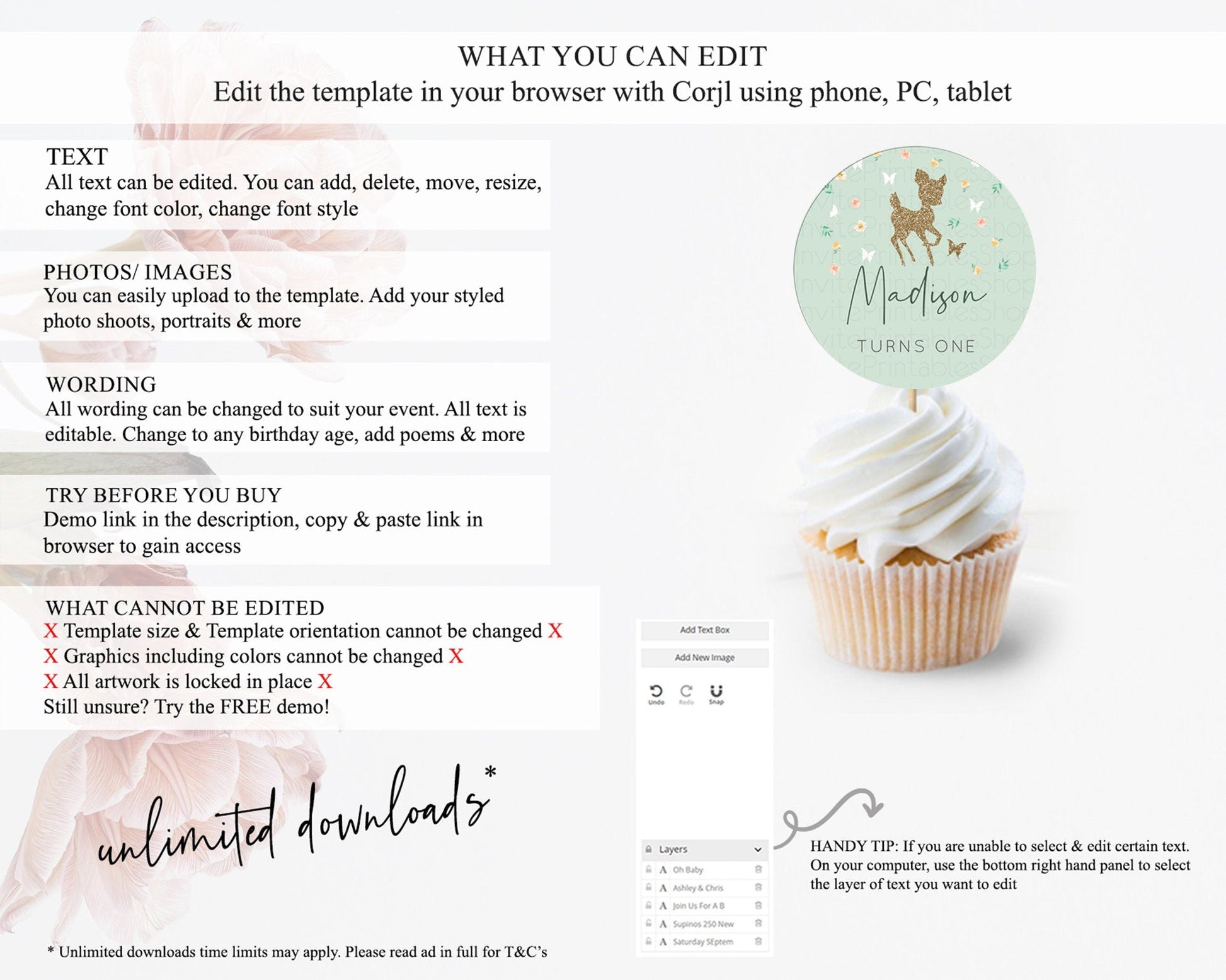 Fawn Cupcake Toppers Deer Cupcake Toppers Enchanted Forest Party Butterfly Pastel Flowers Woofland Cupcake Toppers First Birthday D10385