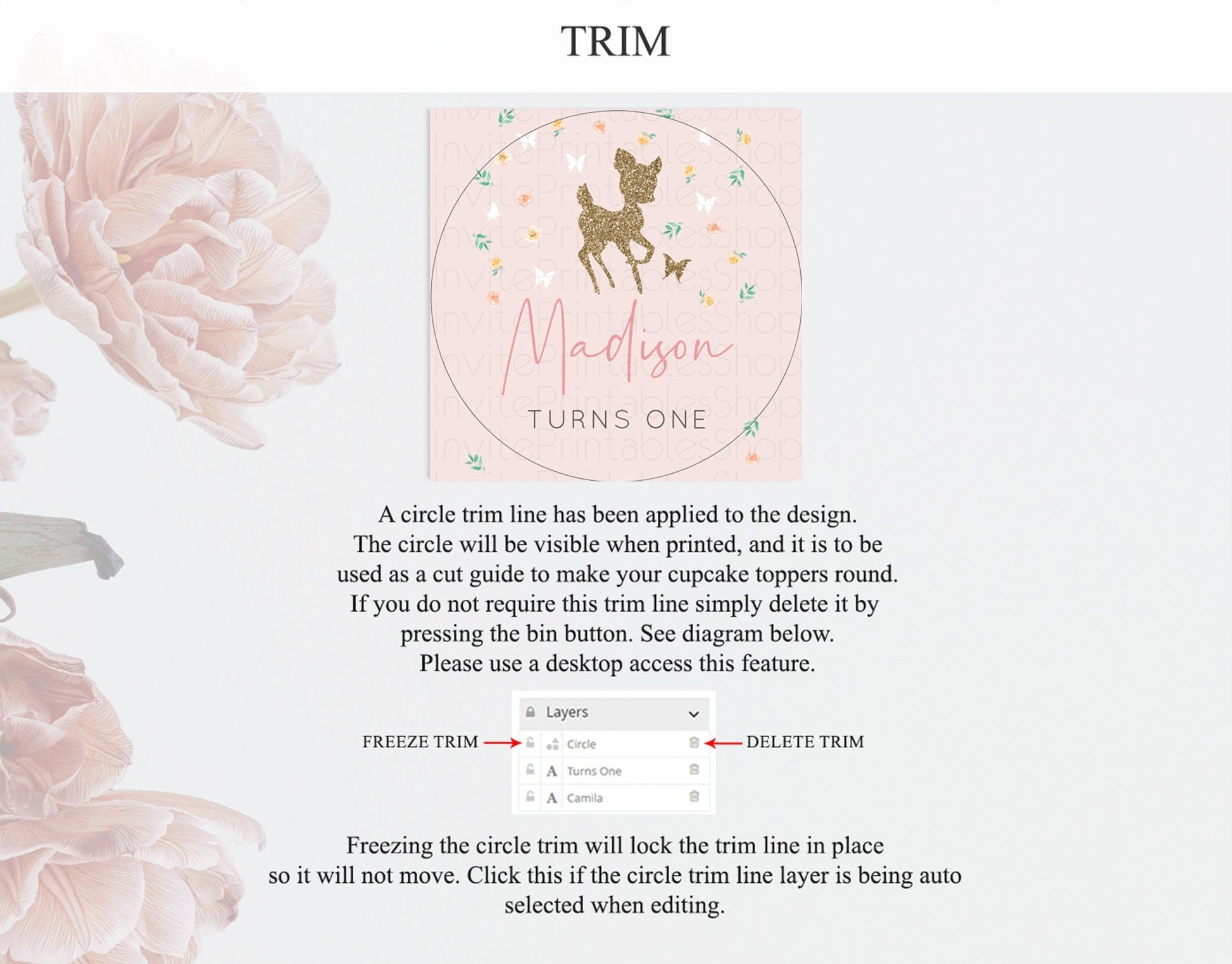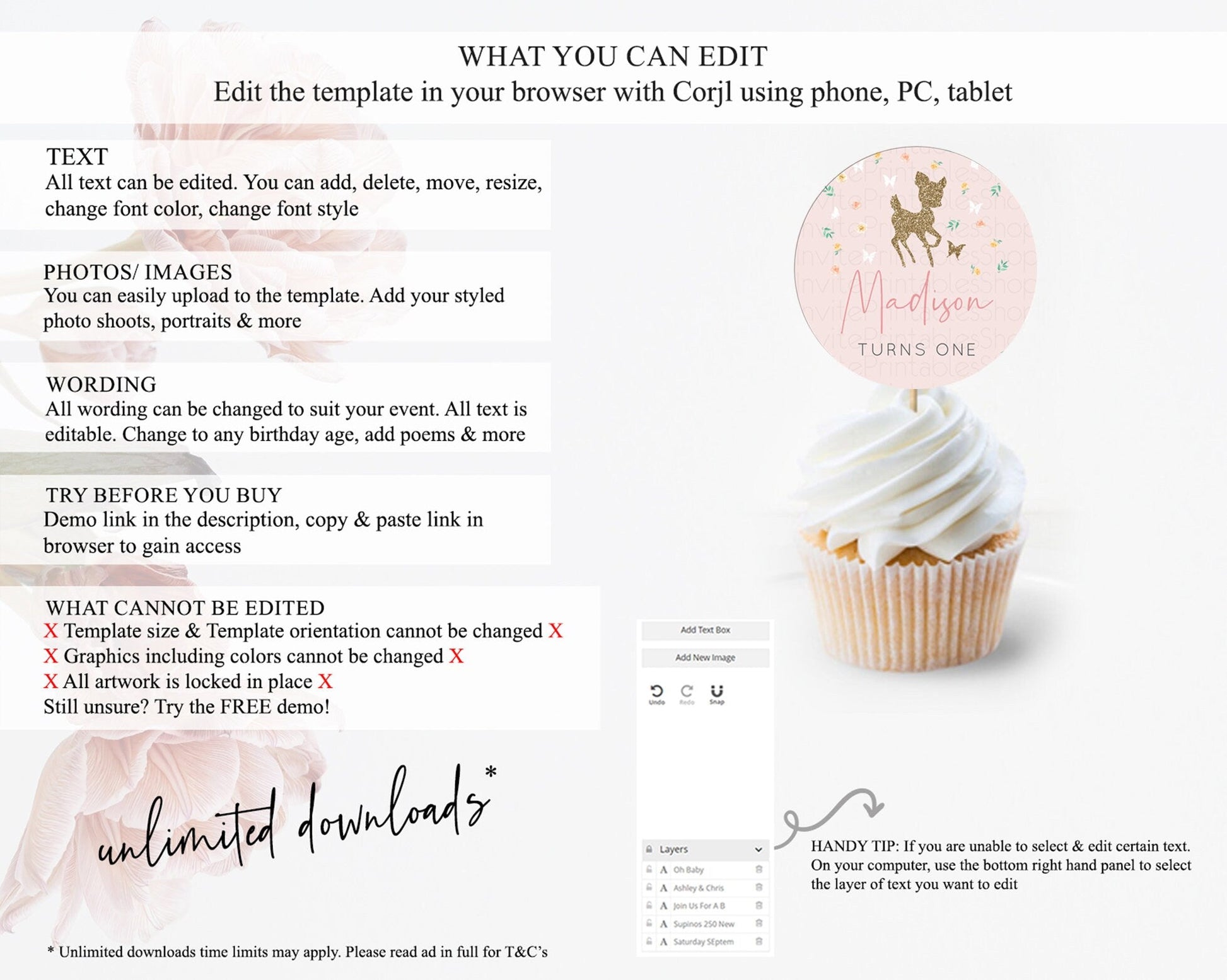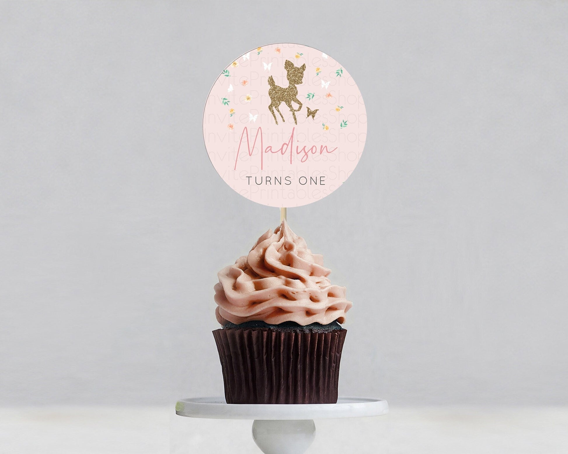 Fawn Cupcake Toppers Deer Cupcake Toppers Enchanted Forest Party Butterfly Pastel Flowers Woofland Cupcake Toppers First Birthday D10386
