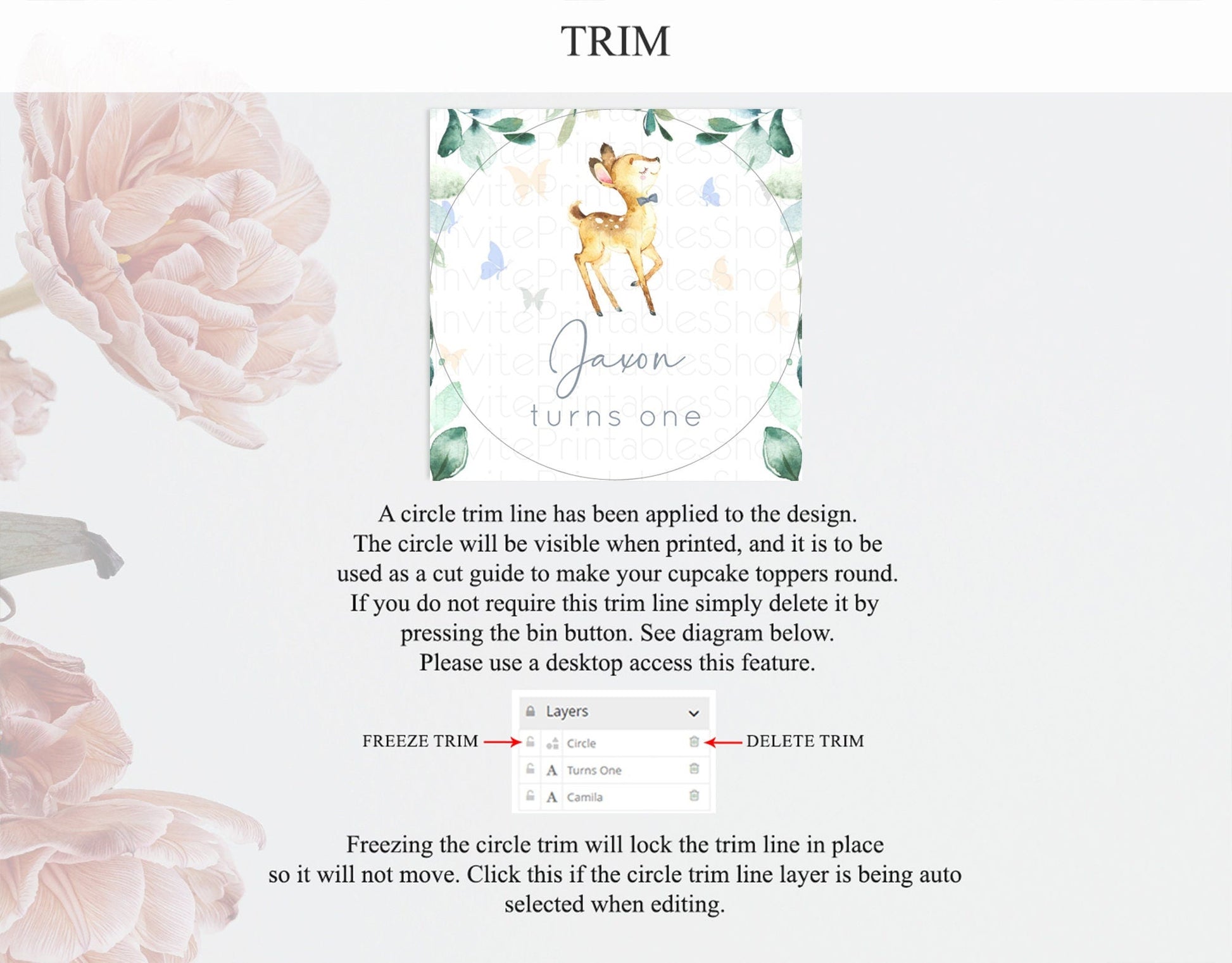 Fawn Cupcake Toppers Deer Cupcake Toppers Enchanted Forest Party Butterfly Pastel Flowers Woofland Cupcake Toppers First Birthday D10767