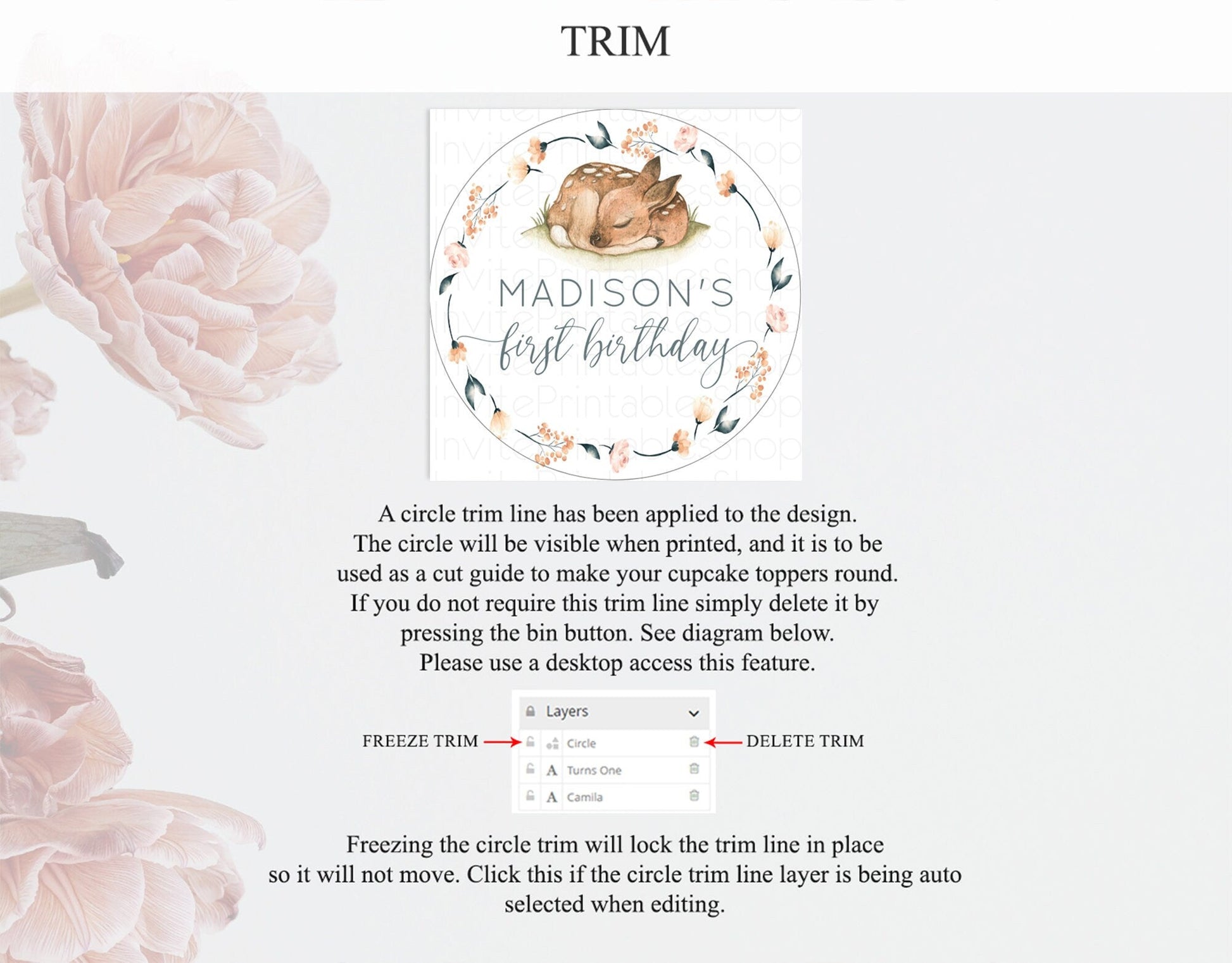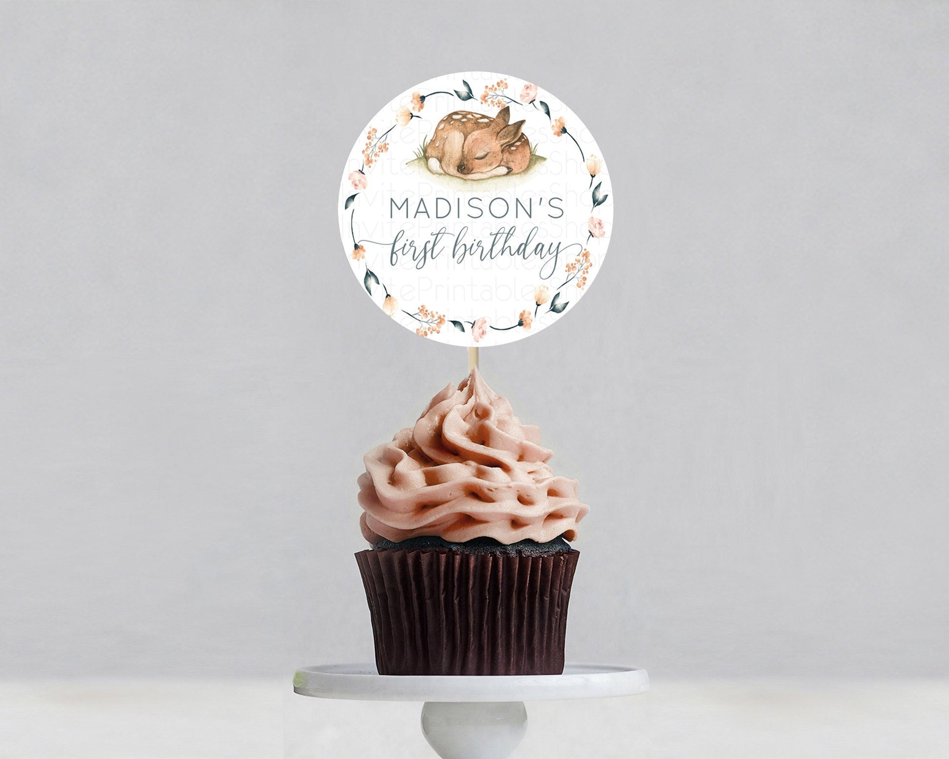 Fawn Cupcake Toppers Deer Cupcake Toppers Enchanted Forest Party Butterfly Pastel Flowers Woofland Cupcake Toppers First Birthday D10790