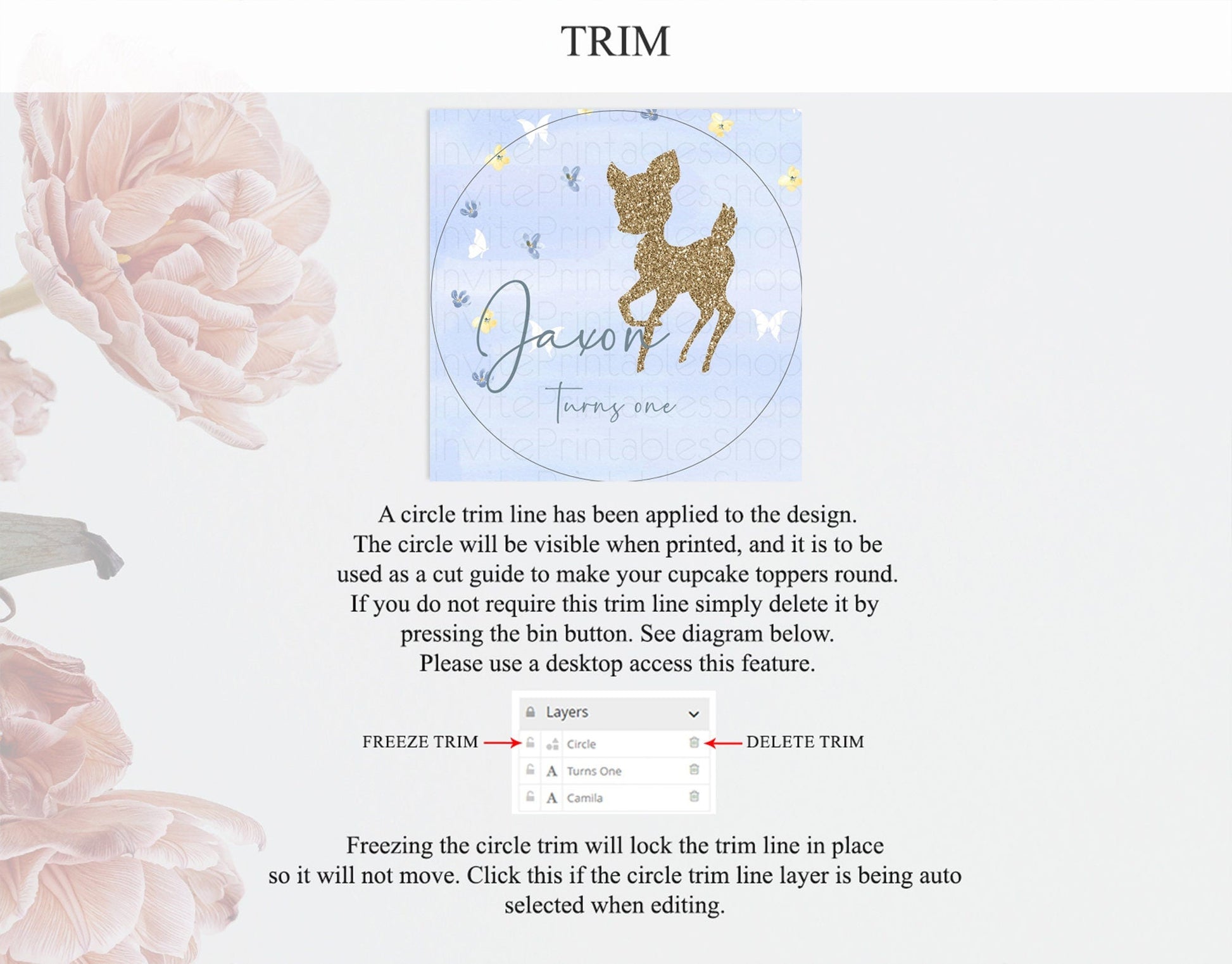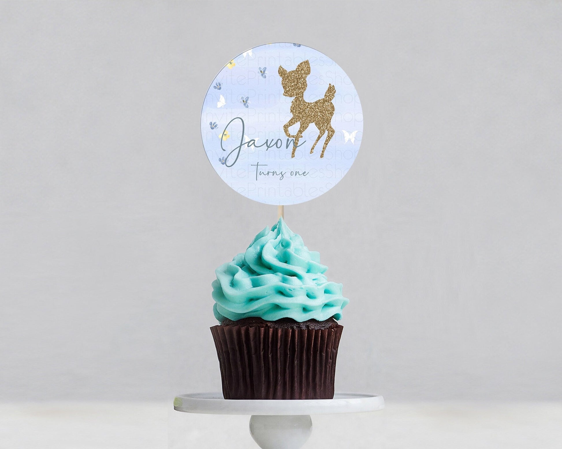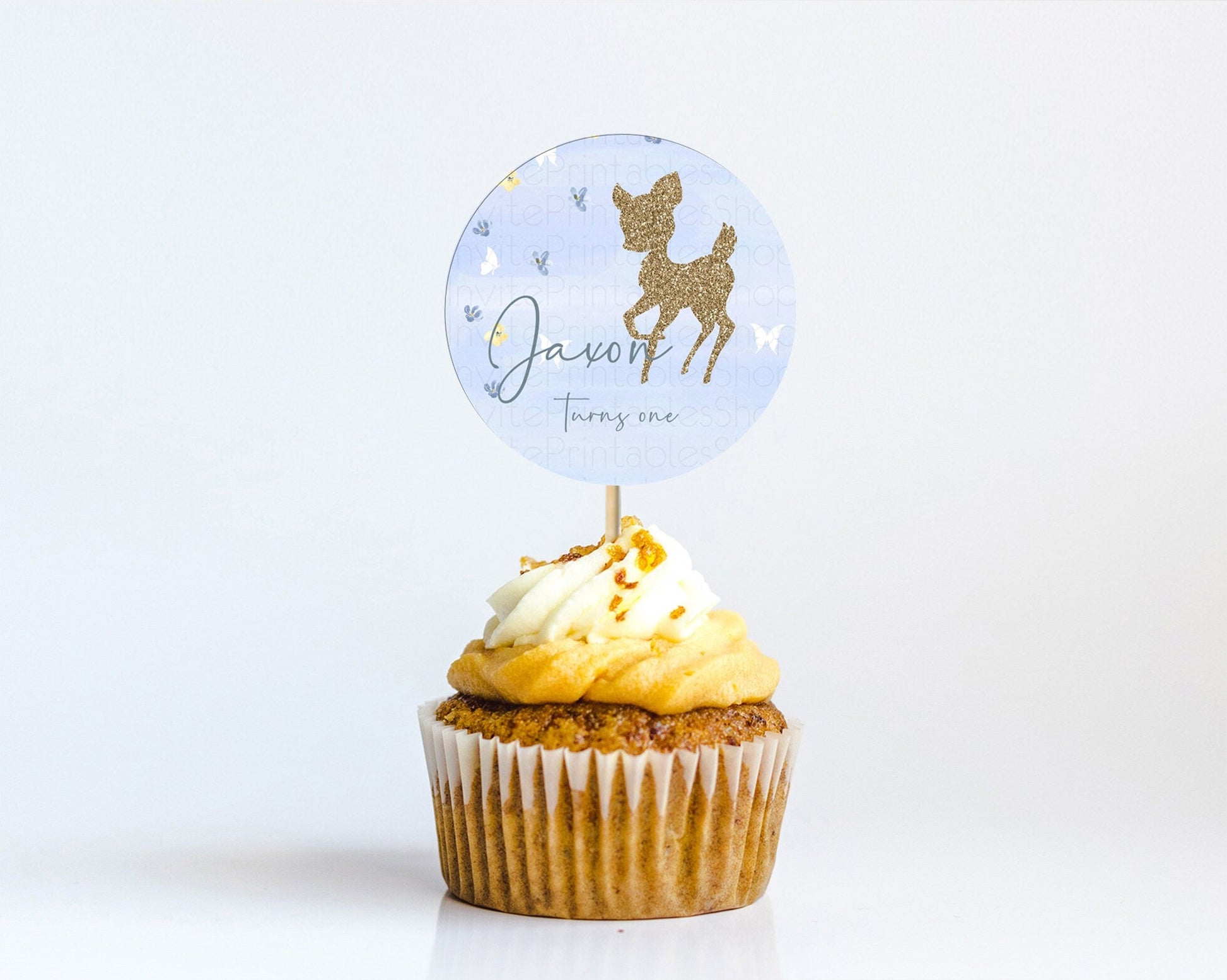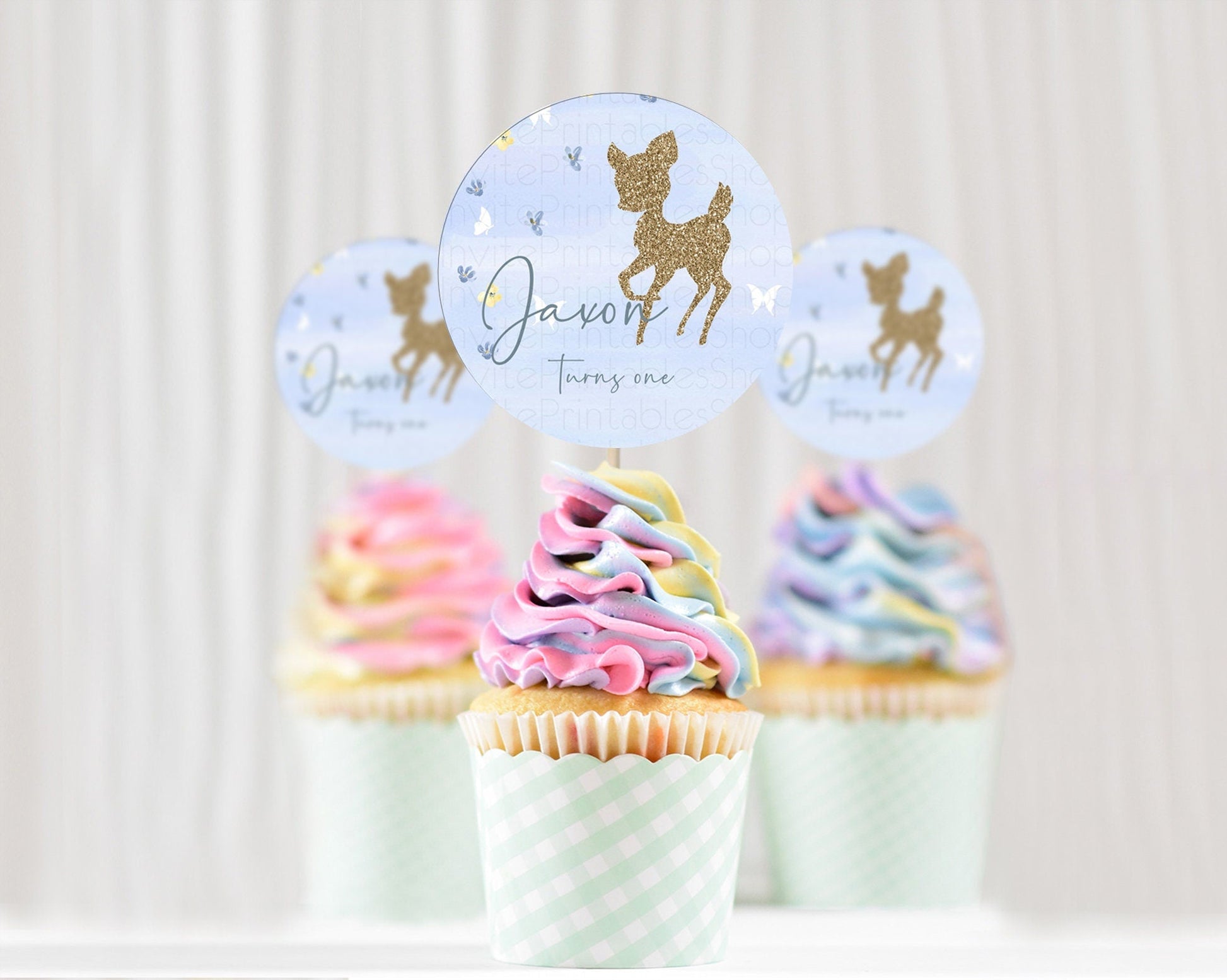 Fawn Cupcake Toppers Deer Cupcake Toppers Enchanted Forest Party Butterfly Pastel Flowers Woofland Cupcake Toppers First Birthday D10863