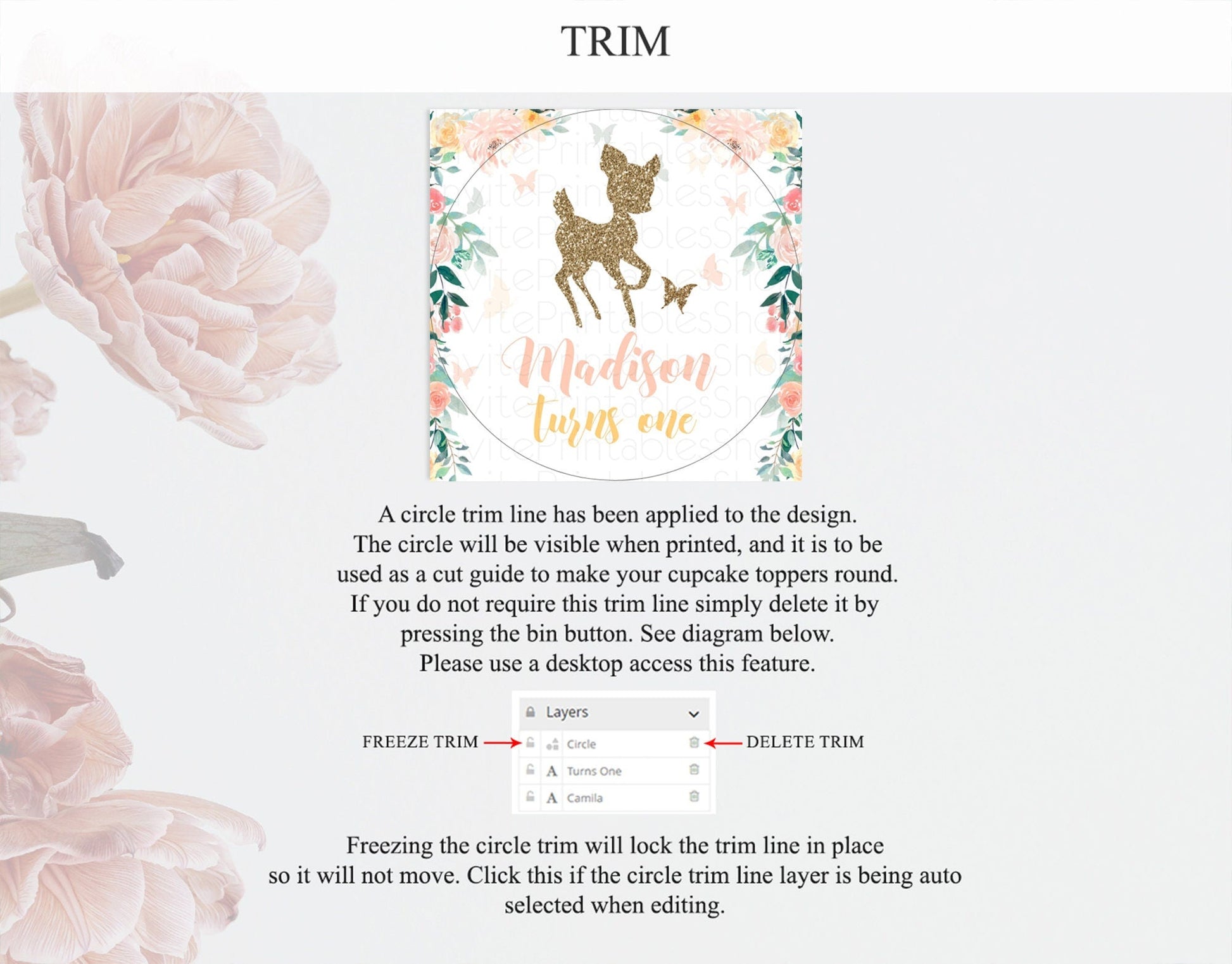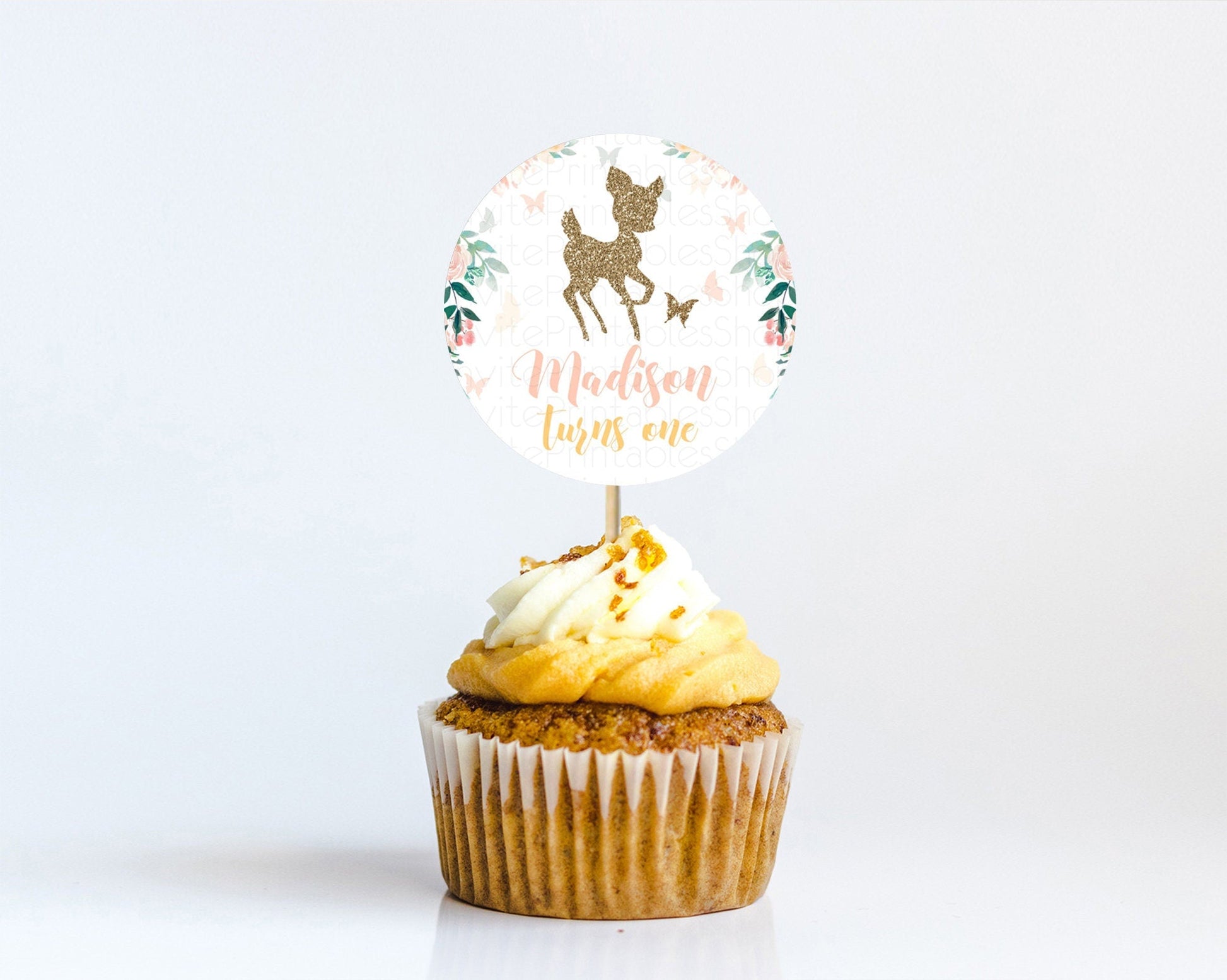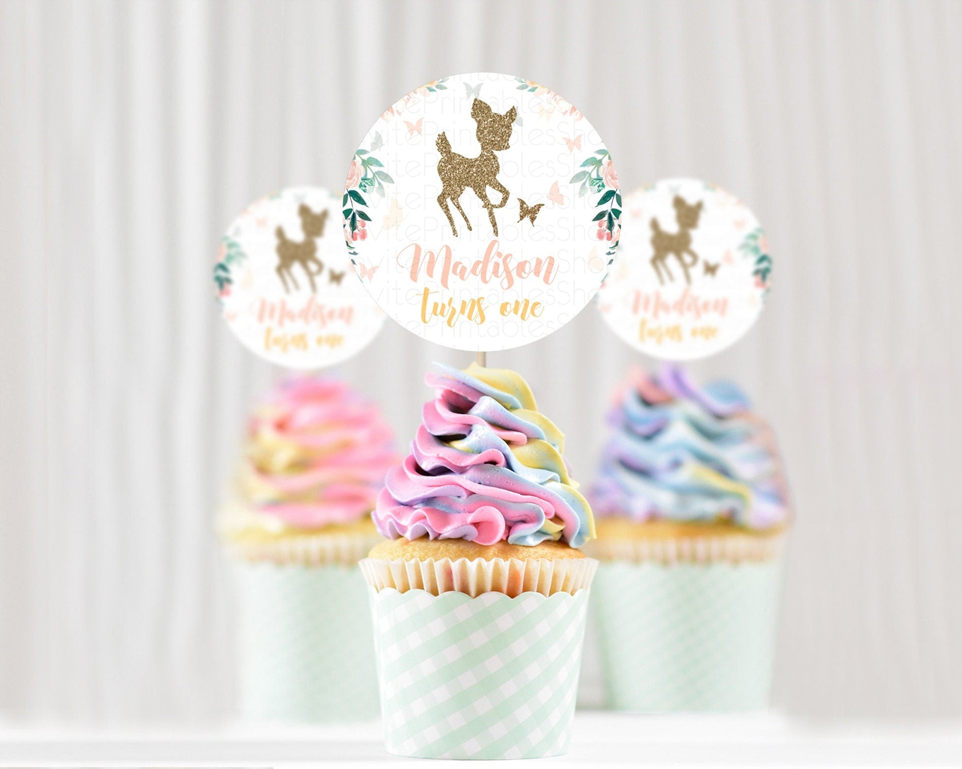 Fawn Cupcake Toppers Deer Cupcake Toppers Enchanted Forest Party Butterfly Pastel Flowers Woofland Cupcake Toppers First Birthday D10874