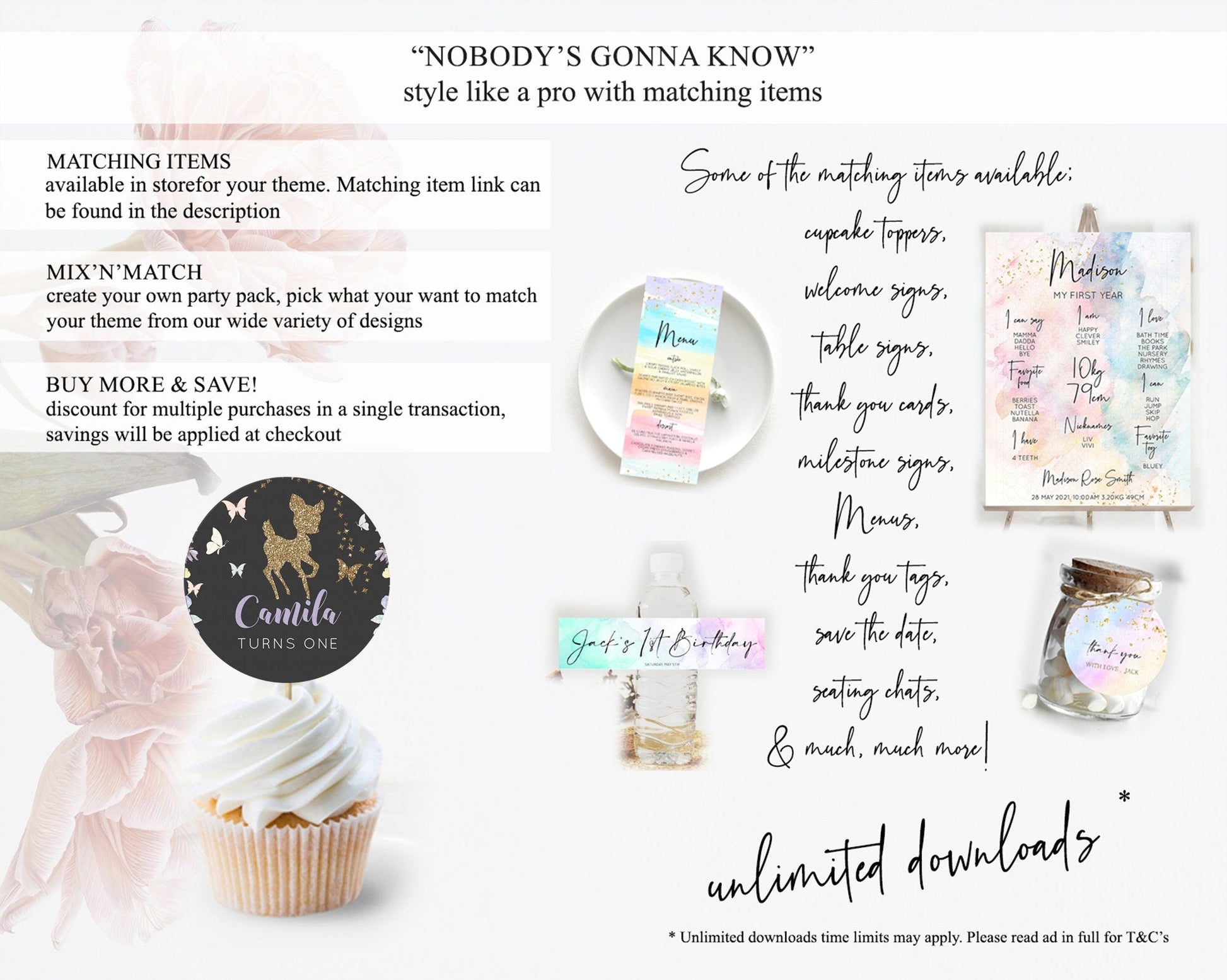 Fawn Cupcake Toppers Deer Cupcake Toppers Enchanted Forest Party Butterfly Pastel Flowers Woofland Cupcake Toppers First Birthday D10880