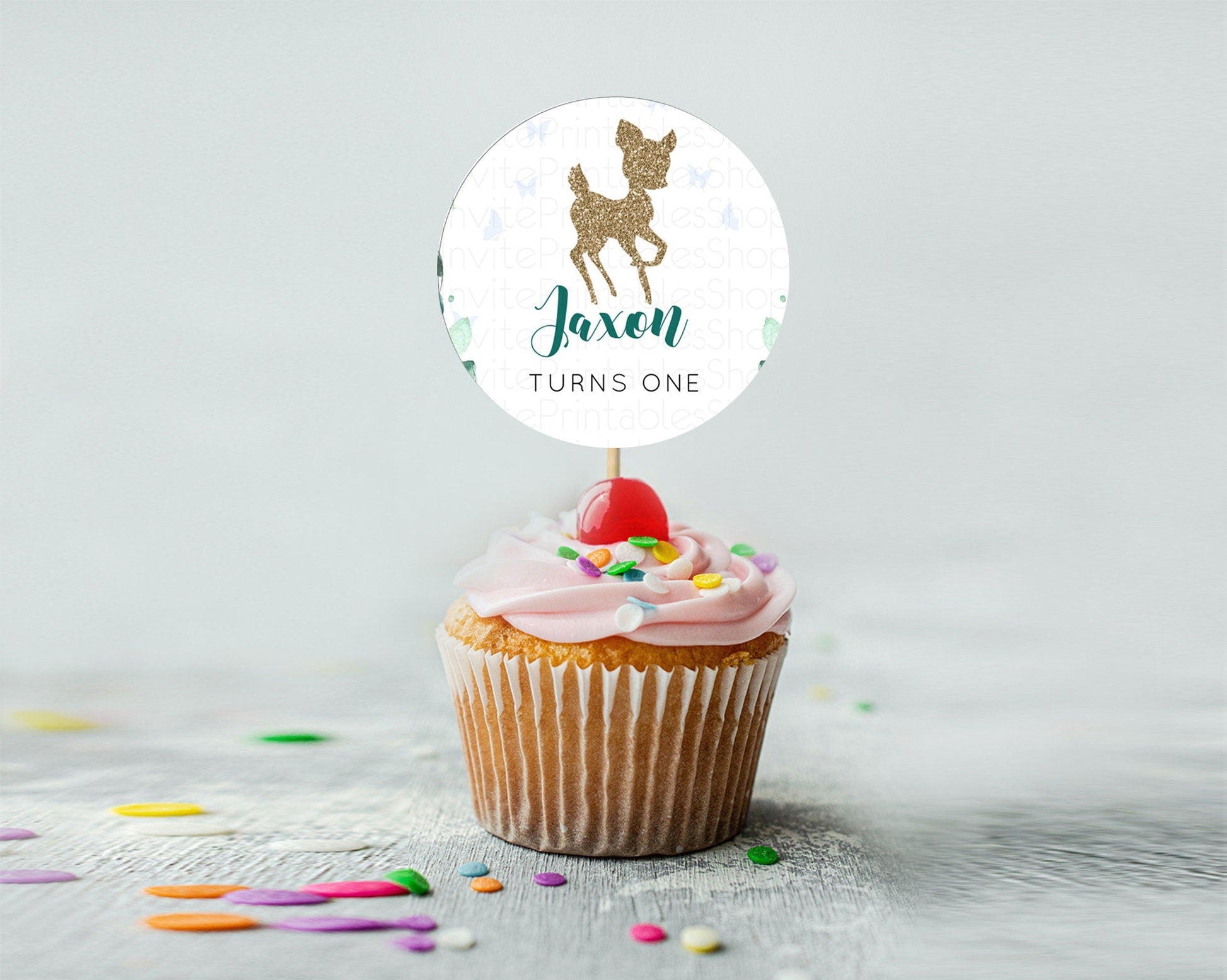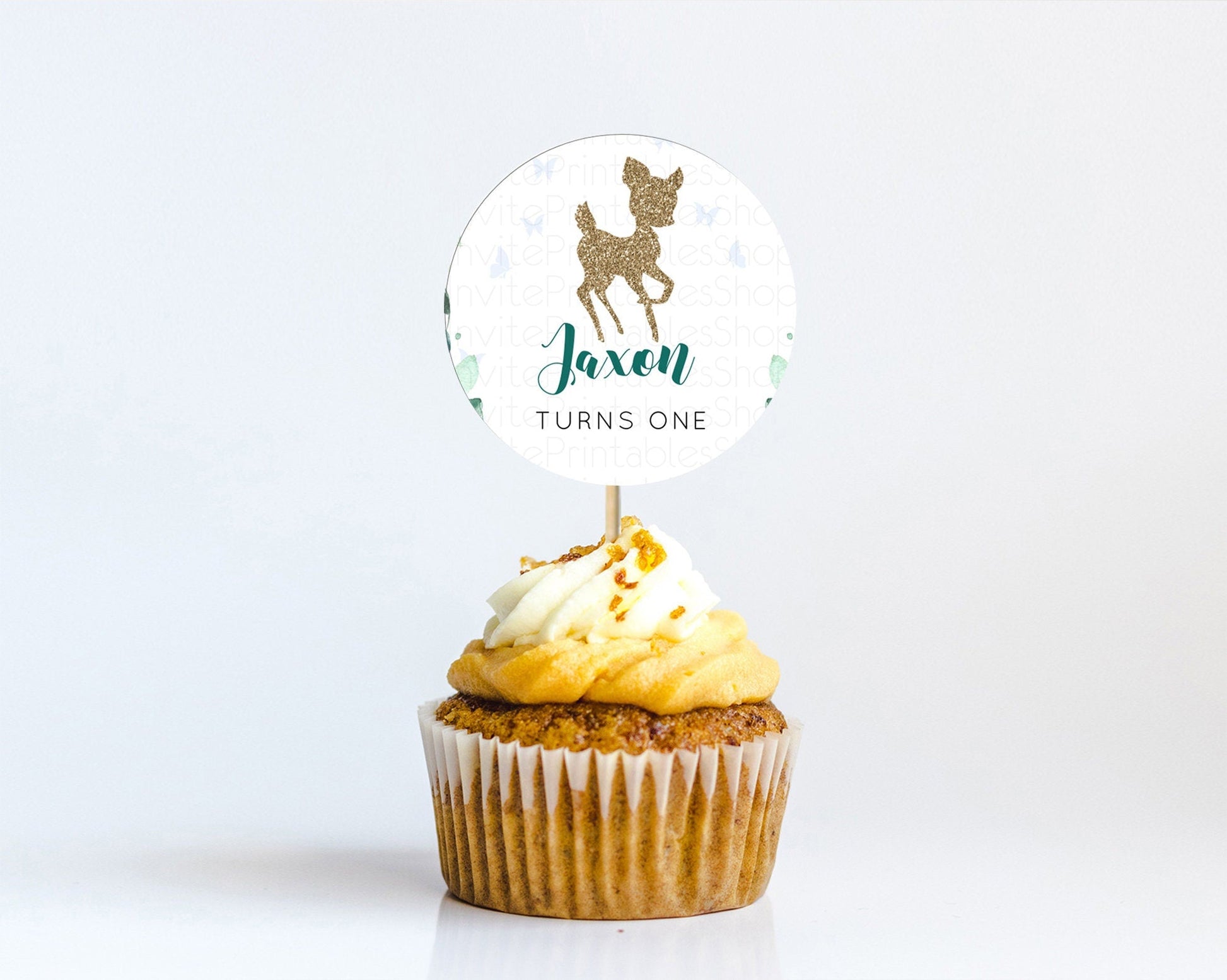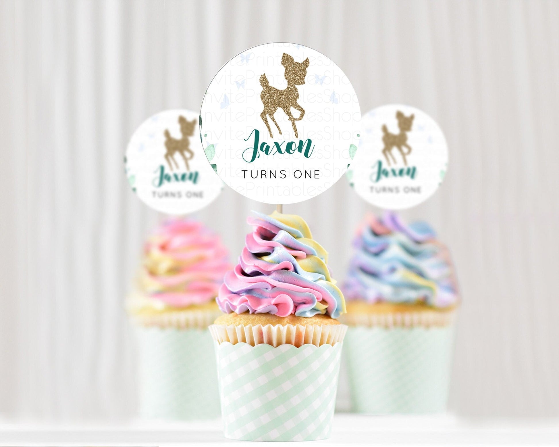 Fawn Cupcake Toppers Deer Cupcake Toppers Enchanted Forest Party Butterfly Pastel Flowers Woofland Cupcake Toppers First Birthday D10882