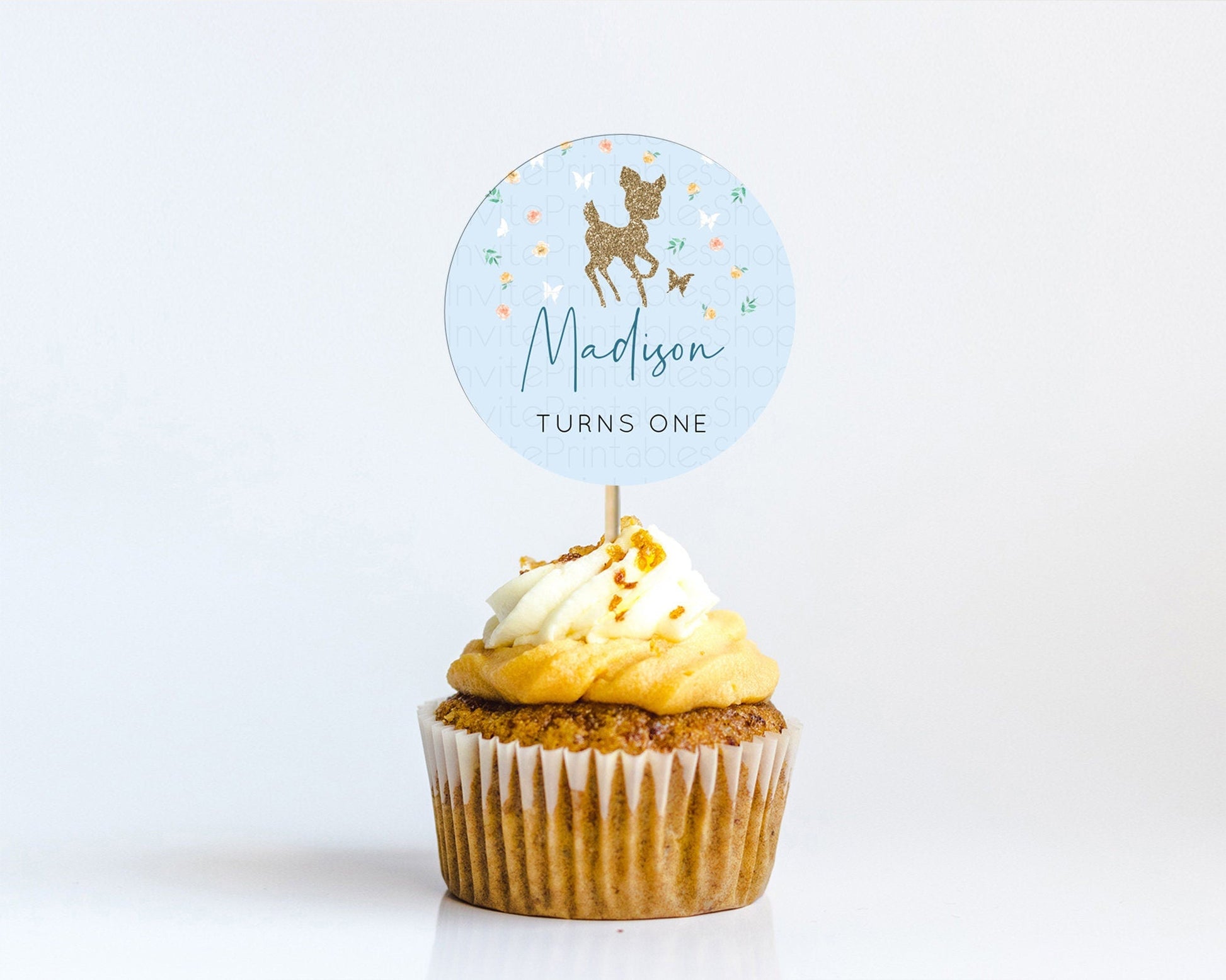 Fawn Cupcake Toppers Deer Cupcake Toppers Enchanted Forest Party Butterfly Pastel Flowers Woofland Cupcake Toppers First Birthday D10902