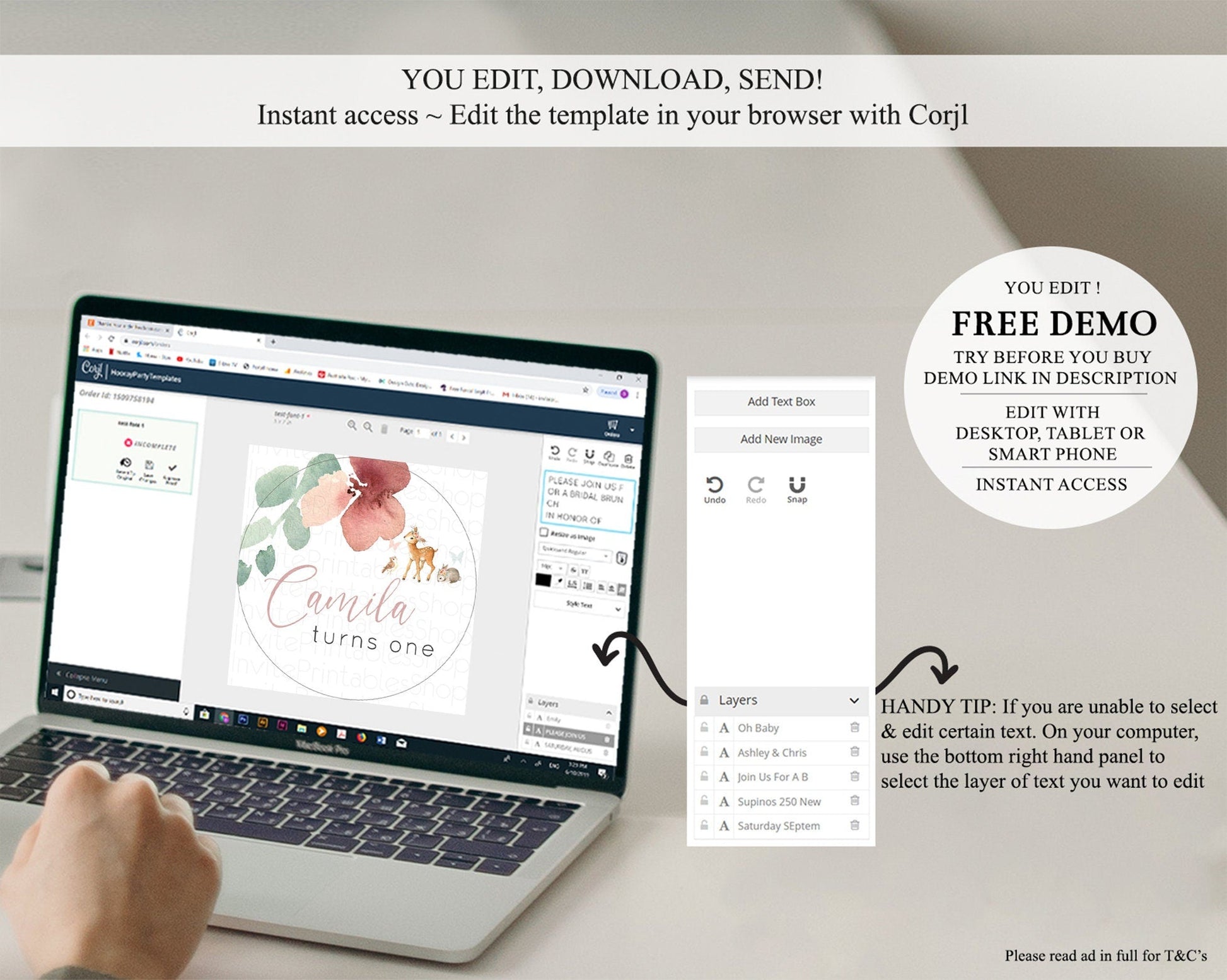 • After purchase, Corjl emails your editing link. Allow up to 15 minutes for delivery.