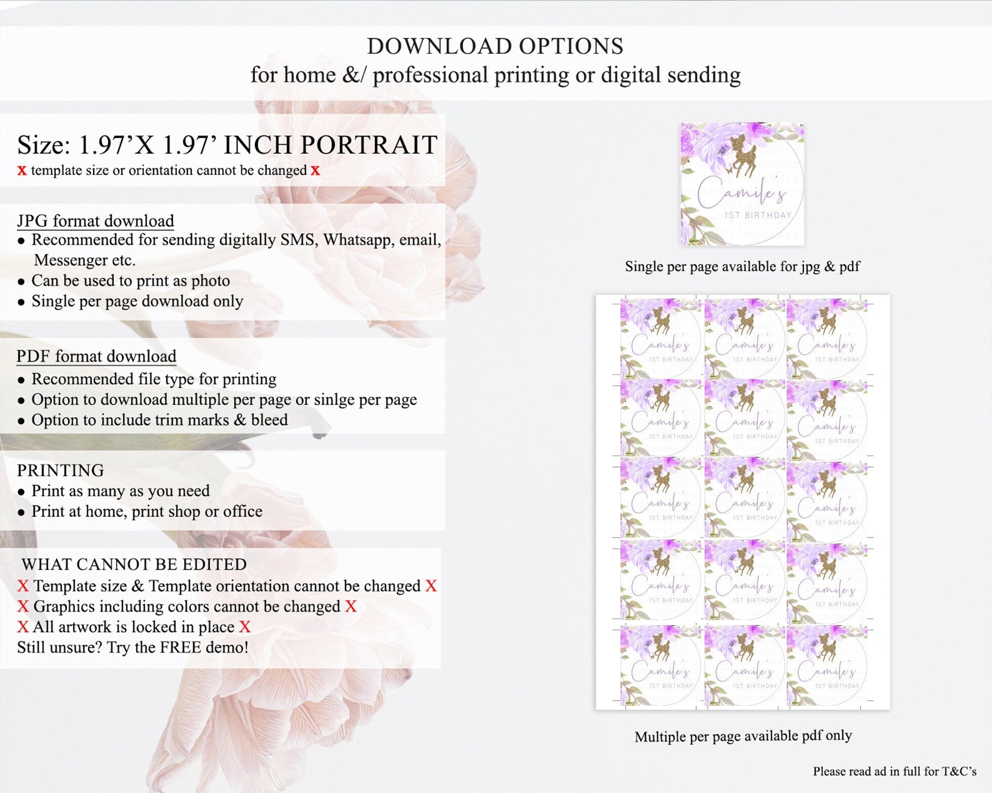 • Template size & orientation cannot be changed. Please use the demo link to confirm this product suits your needs.
