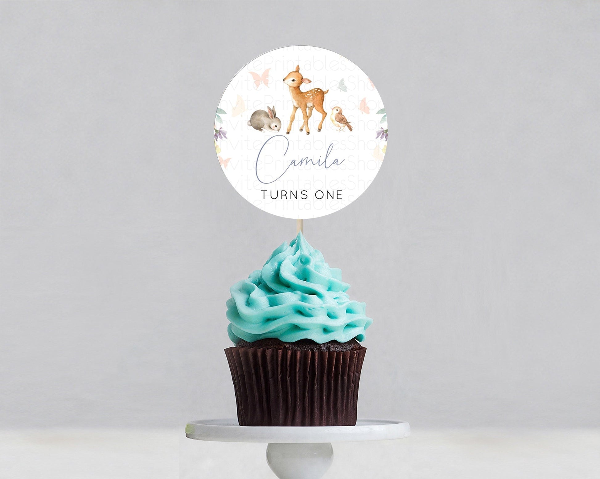 Fawn Cupcake Toppers Deer Cupcake Toppers Enchanted Forest Party Butterfly Pastel Flowers Woofland Cupcake Toppers First Birthday D10930
