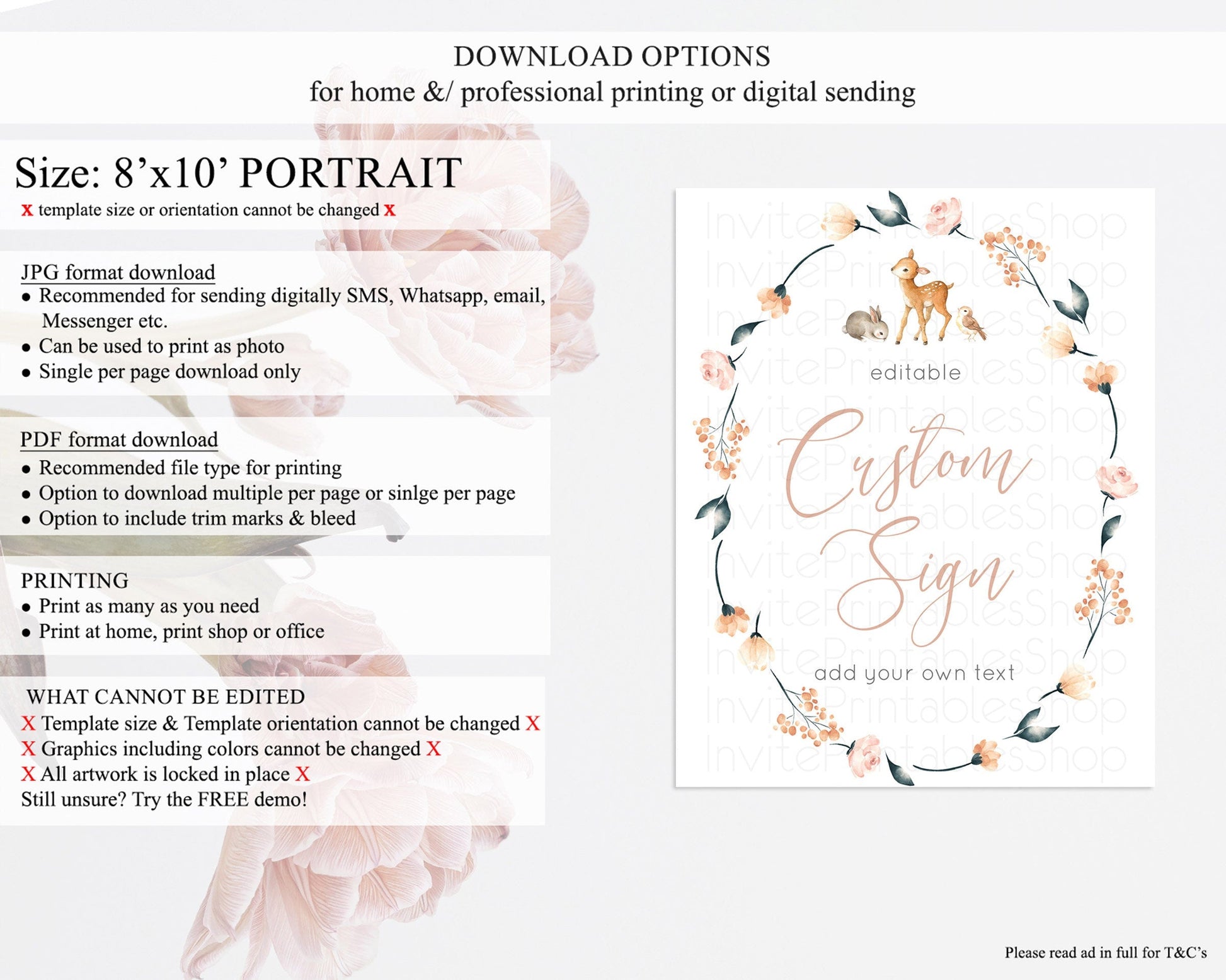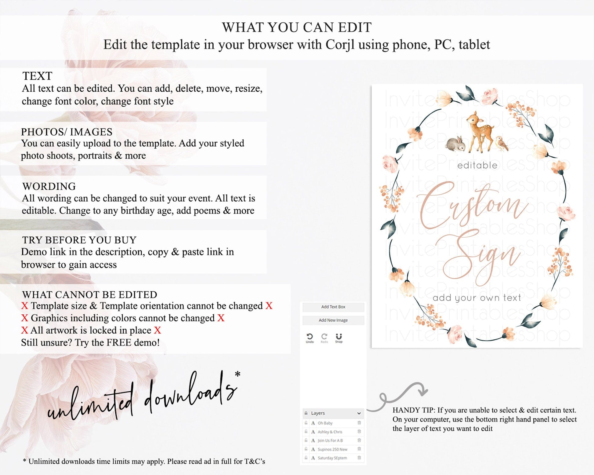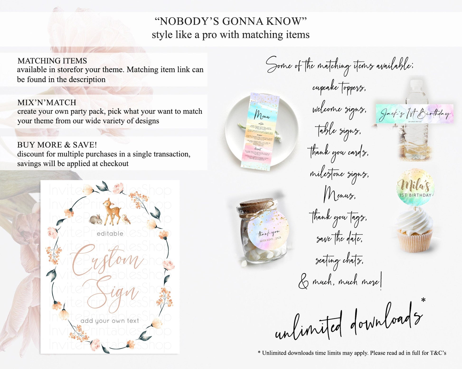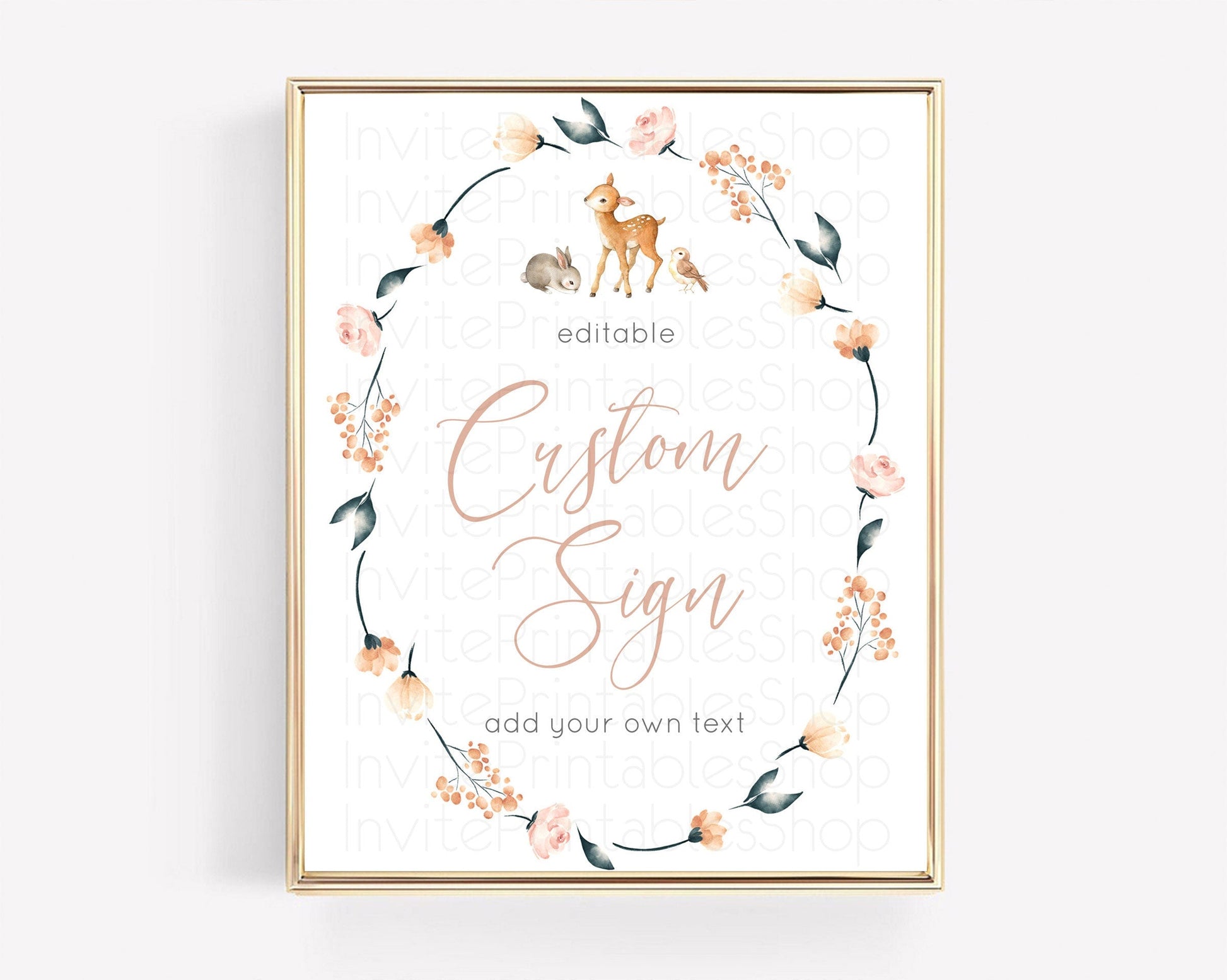 Fawn Deer Sign Pastel Floral Deer Table Sign Decor Enchanted Forest Butterfly Party 1st Birthday Baptism Baby Shower Bridal Shower D10241