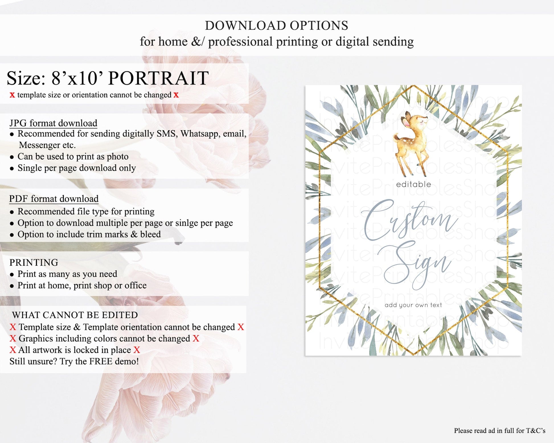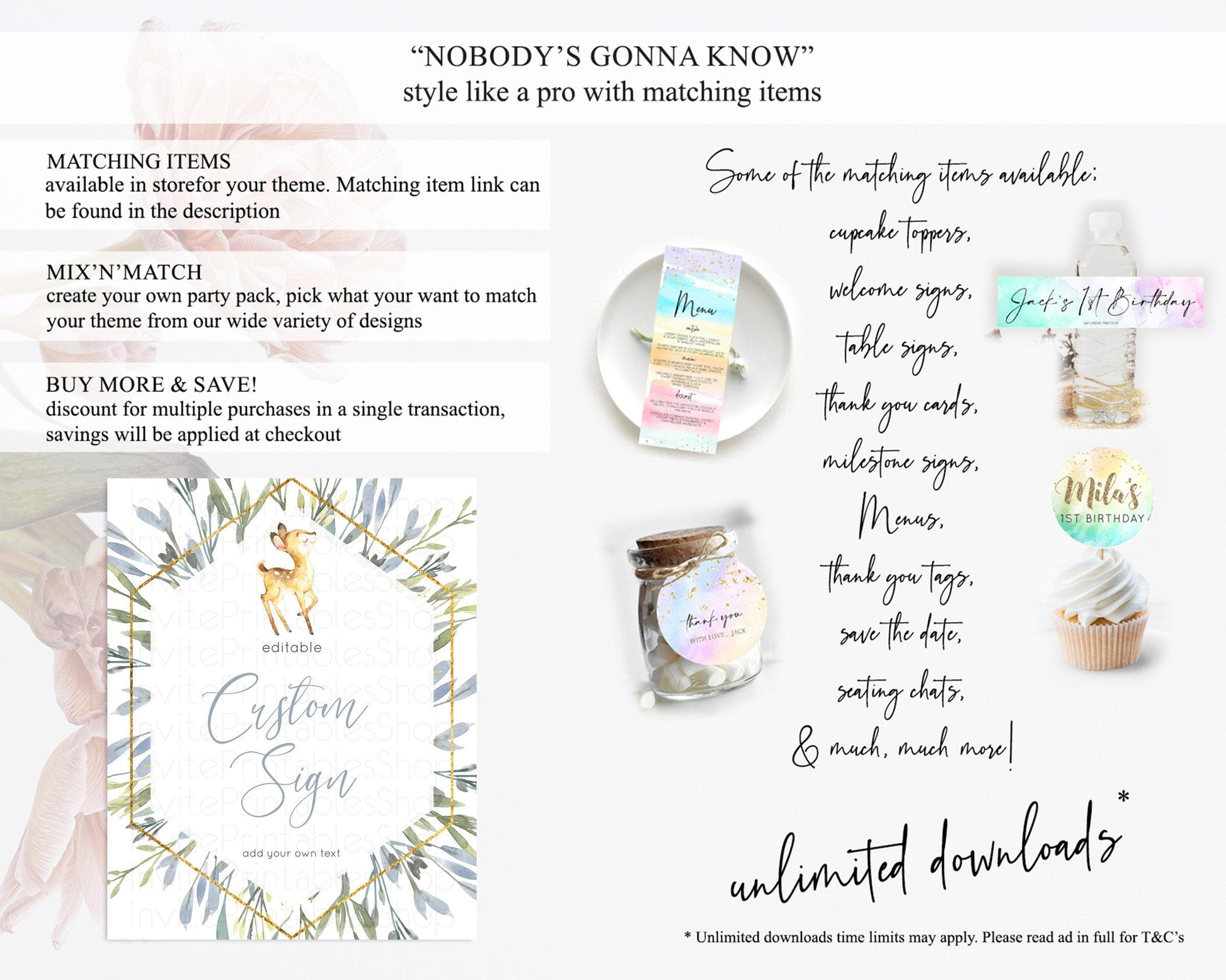 Fawn Deer Sign Pastel Floral Deer Table Sign Decor Enchanted Forest Butterfly Party 1st Birthday Baptism Baby Shower Bridal Shower D10400