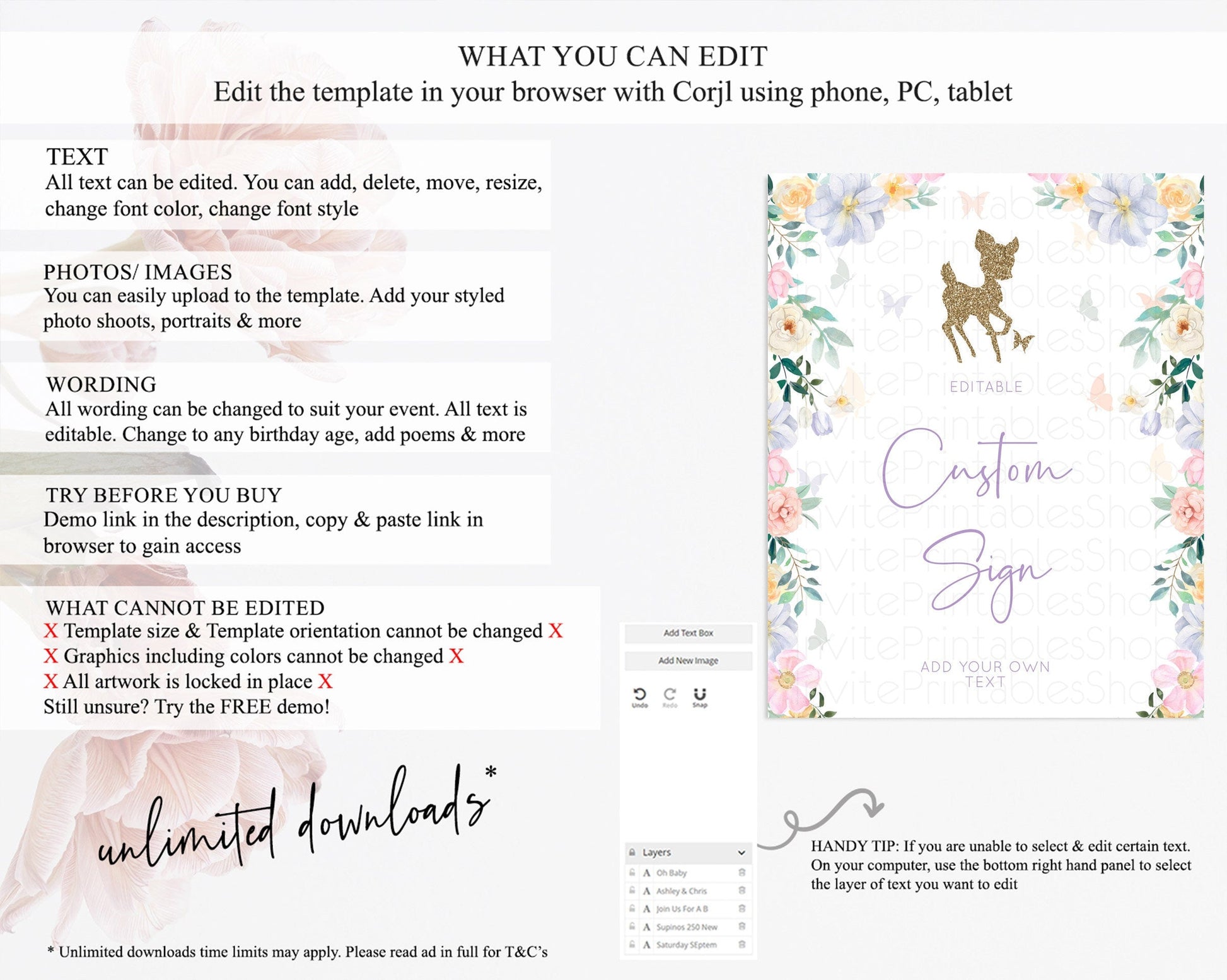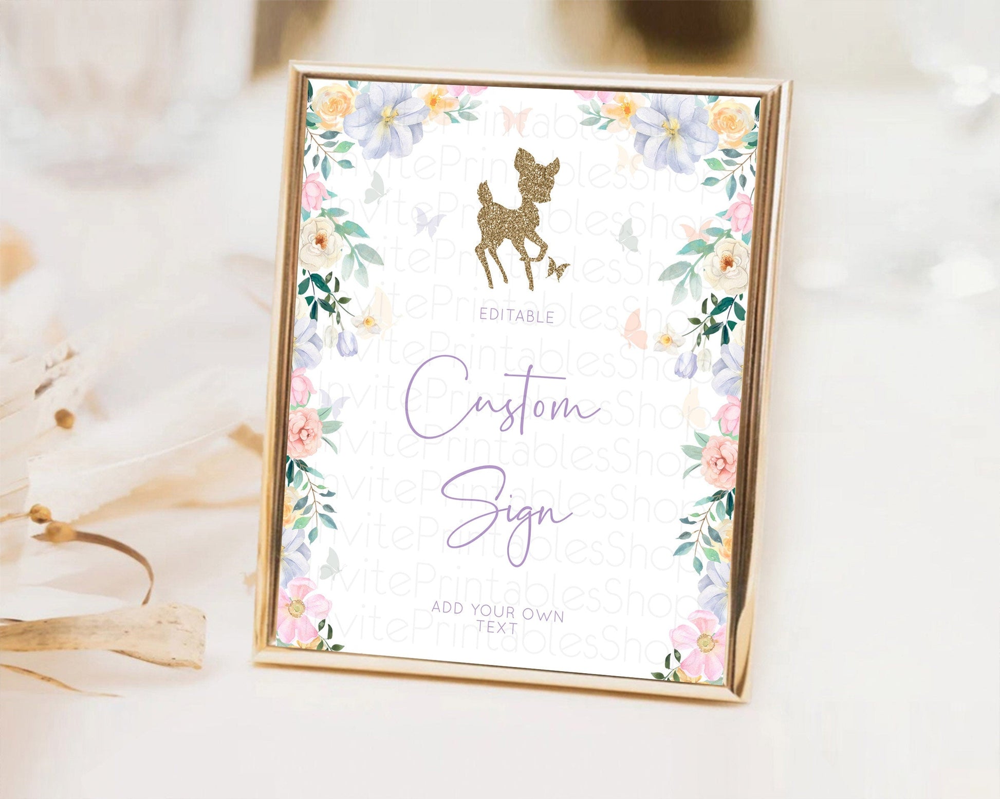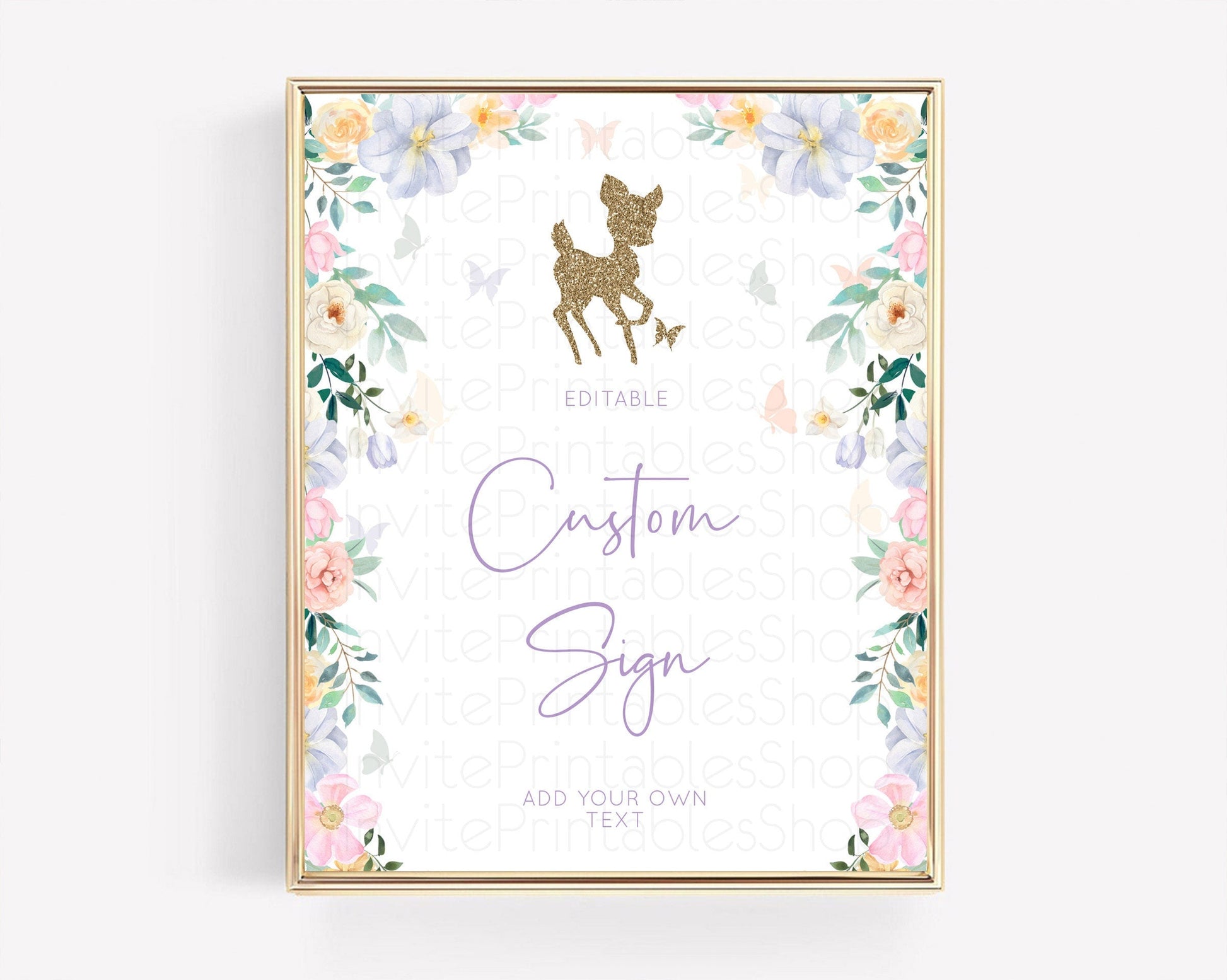 Fawn Deer Sign Pastel Floral Deer Table Sign Decor Enchanted Forest Butterfly Party 1st Birthday Baptism Baby Shower Bridal Shower D10477
