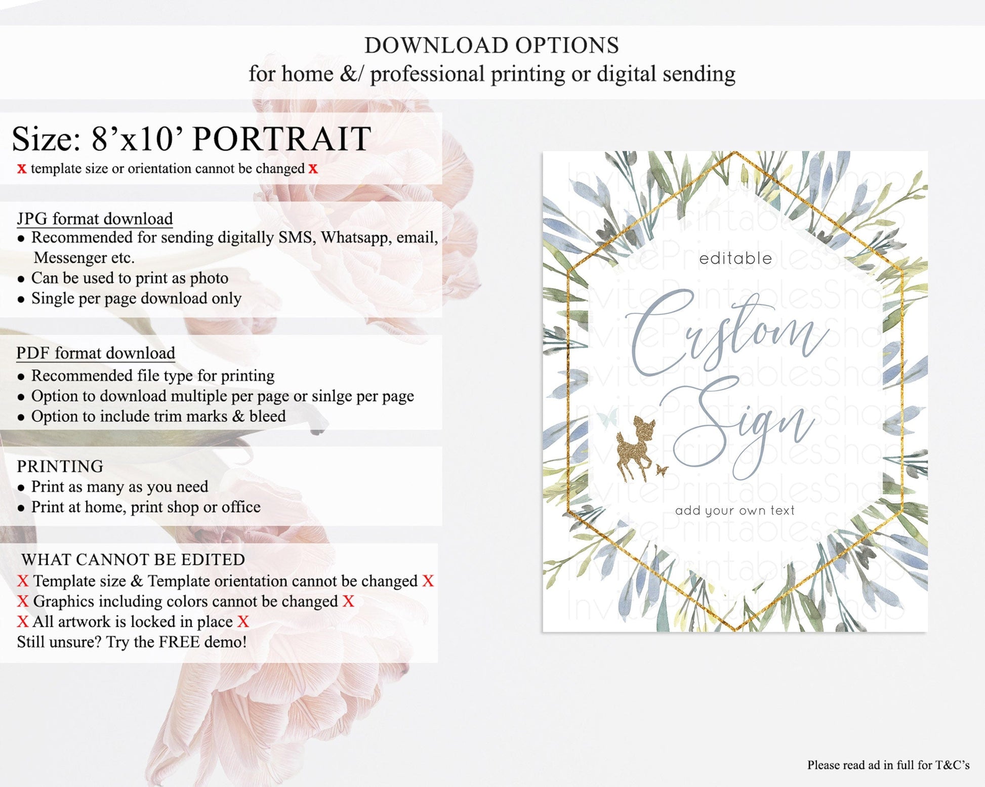 • Template size & orientation cannot be changed. Please use the demo link to confirm this product suits your needs.