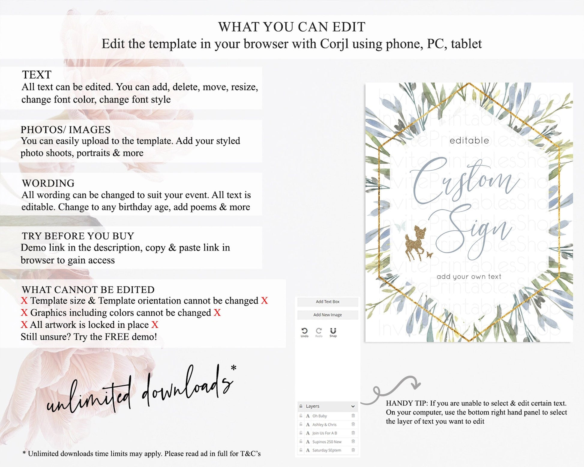 • After purchase, Corjl emails your editing link. Allow up to 15 minutes for delivery.