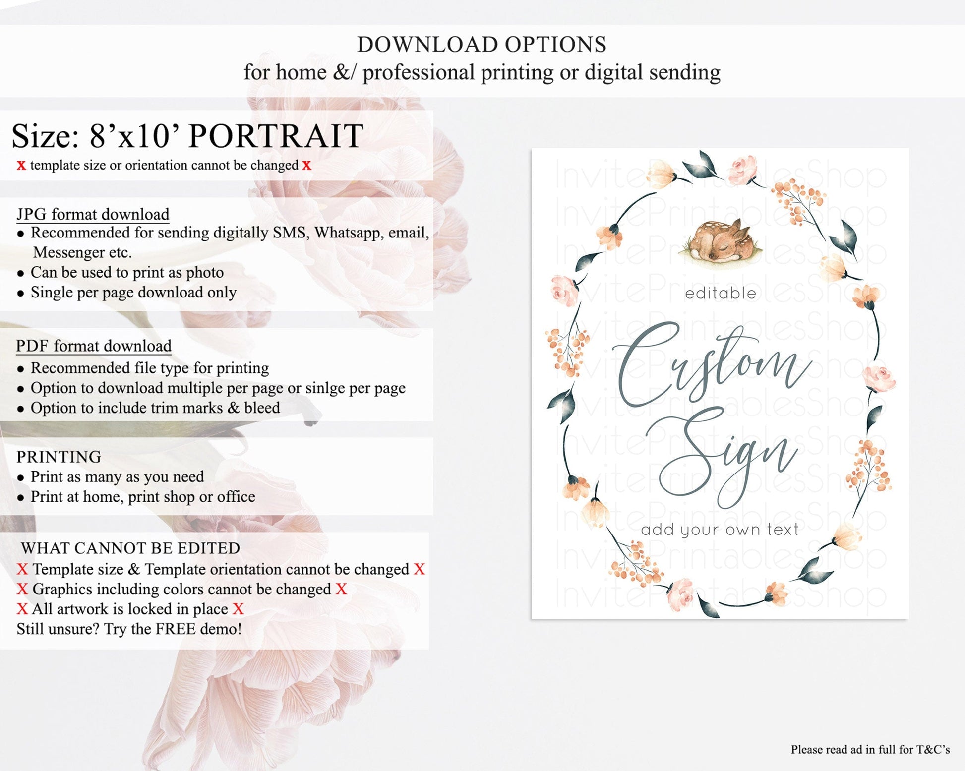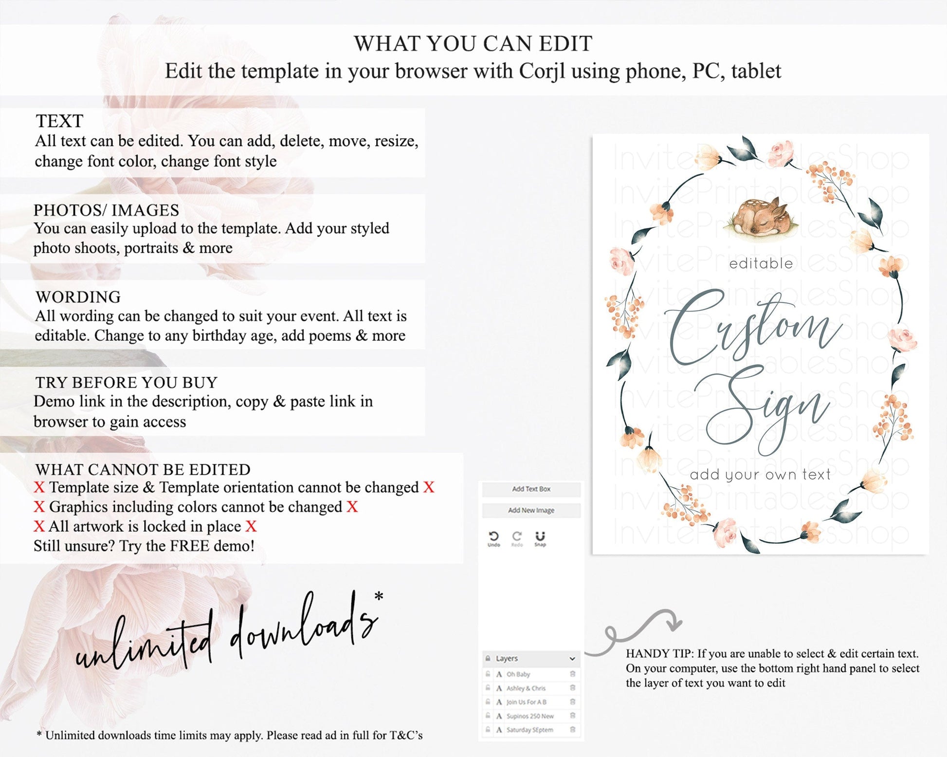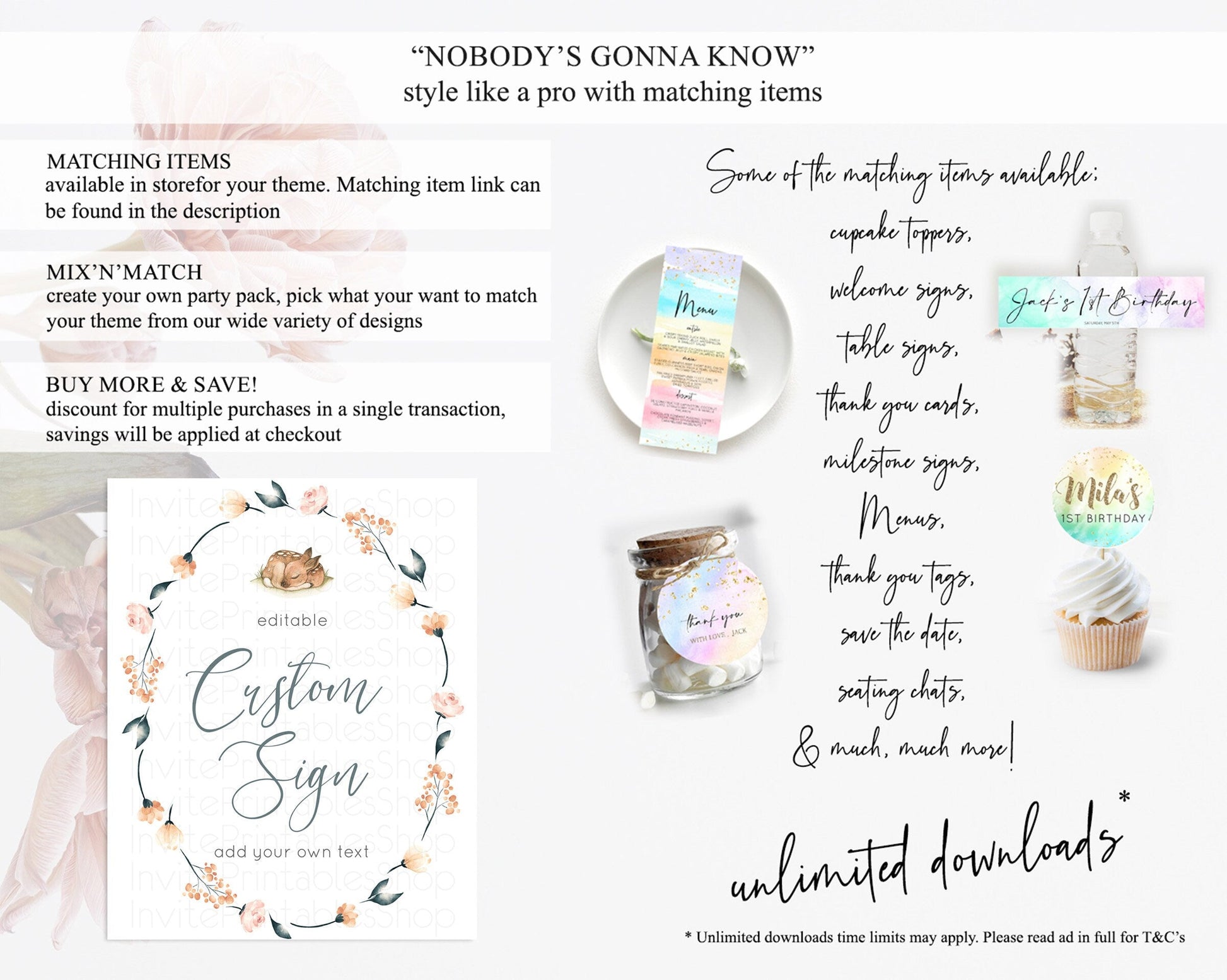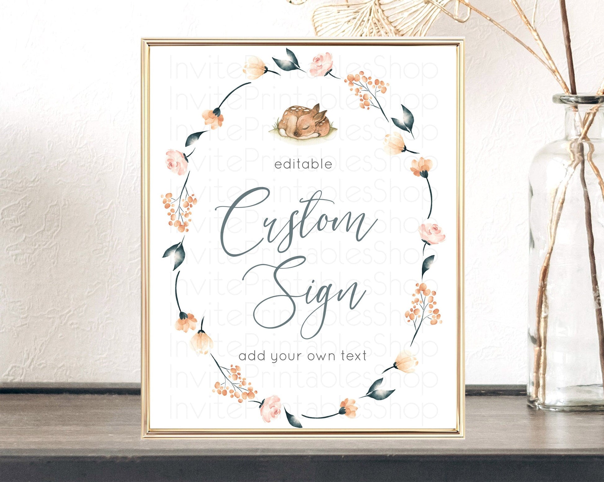 Fawn Deer Sign Pastel Floral Deer Table Sign Decor Enchanted Forest Butterfly Party 1st Birthday Baptism Baby Shower Bridal Shower D10790