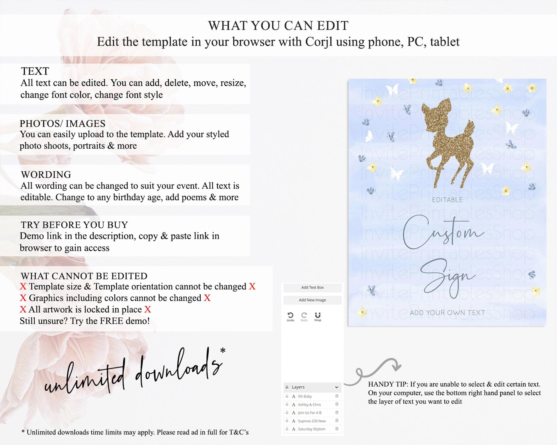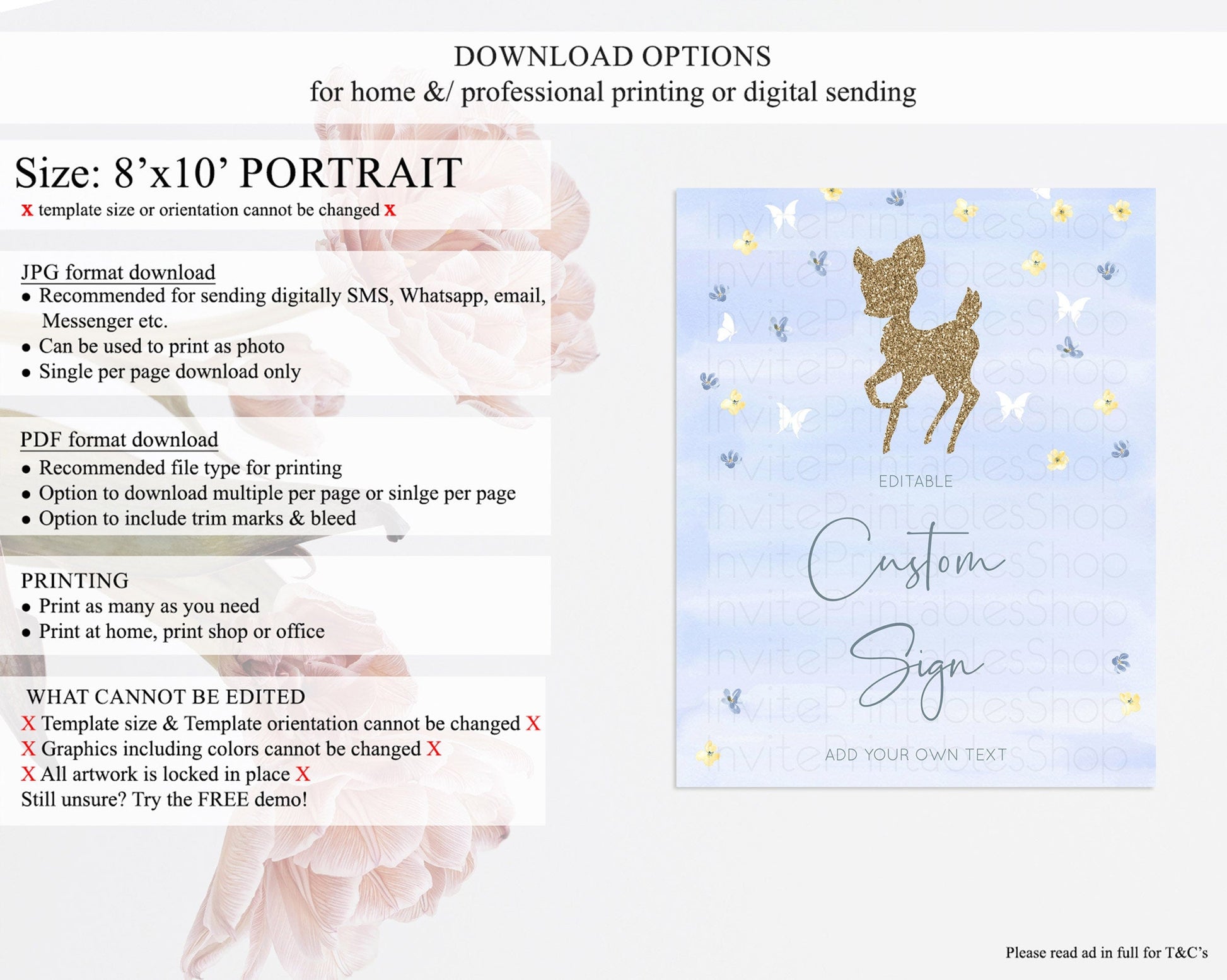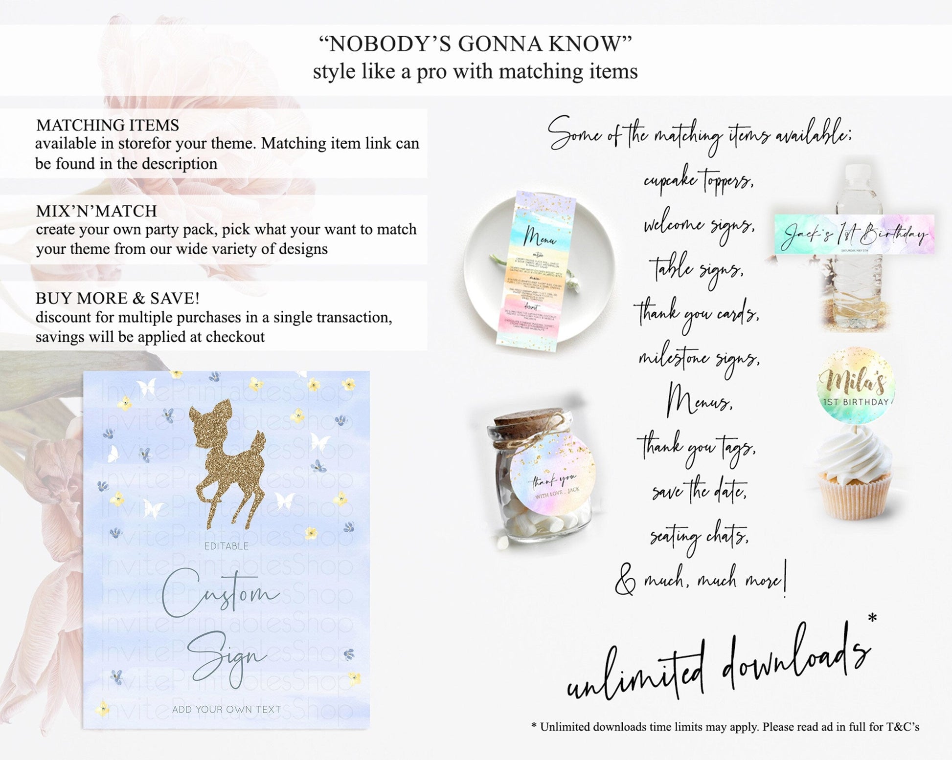 Fawn Deer Sign Pastel Floral Deer Table Sign Decor Enchanted Forest Butterfly Party 1st Birthday Baptism Baby Shower Bridal Shower D10863